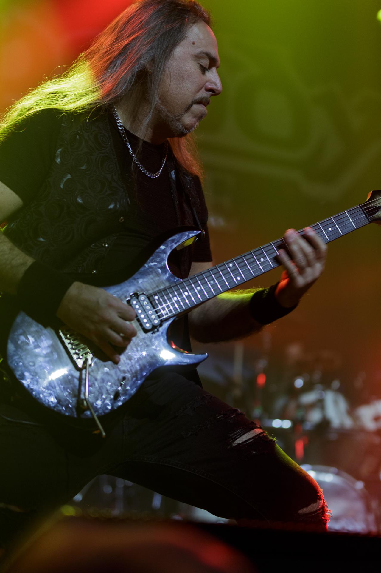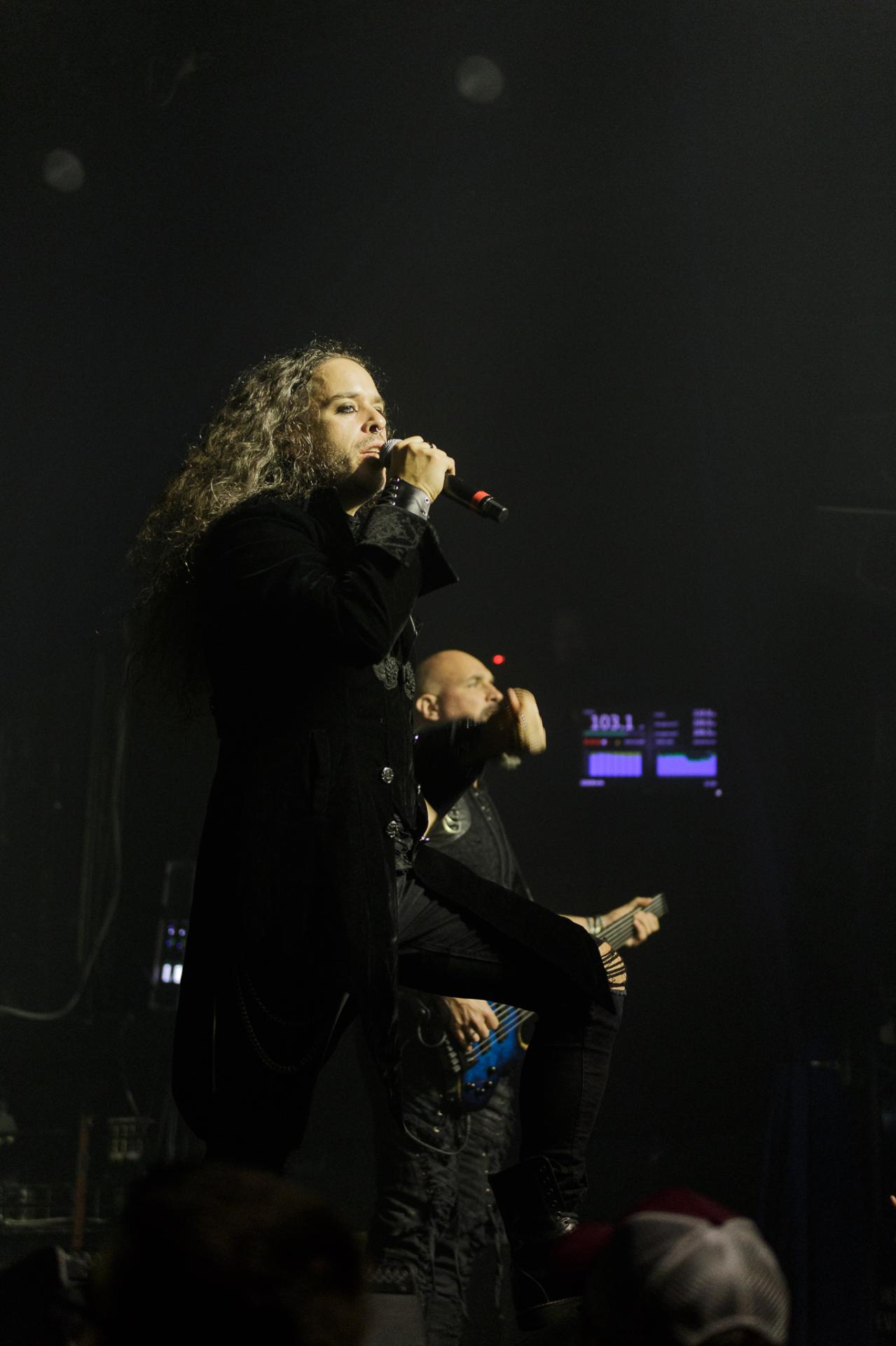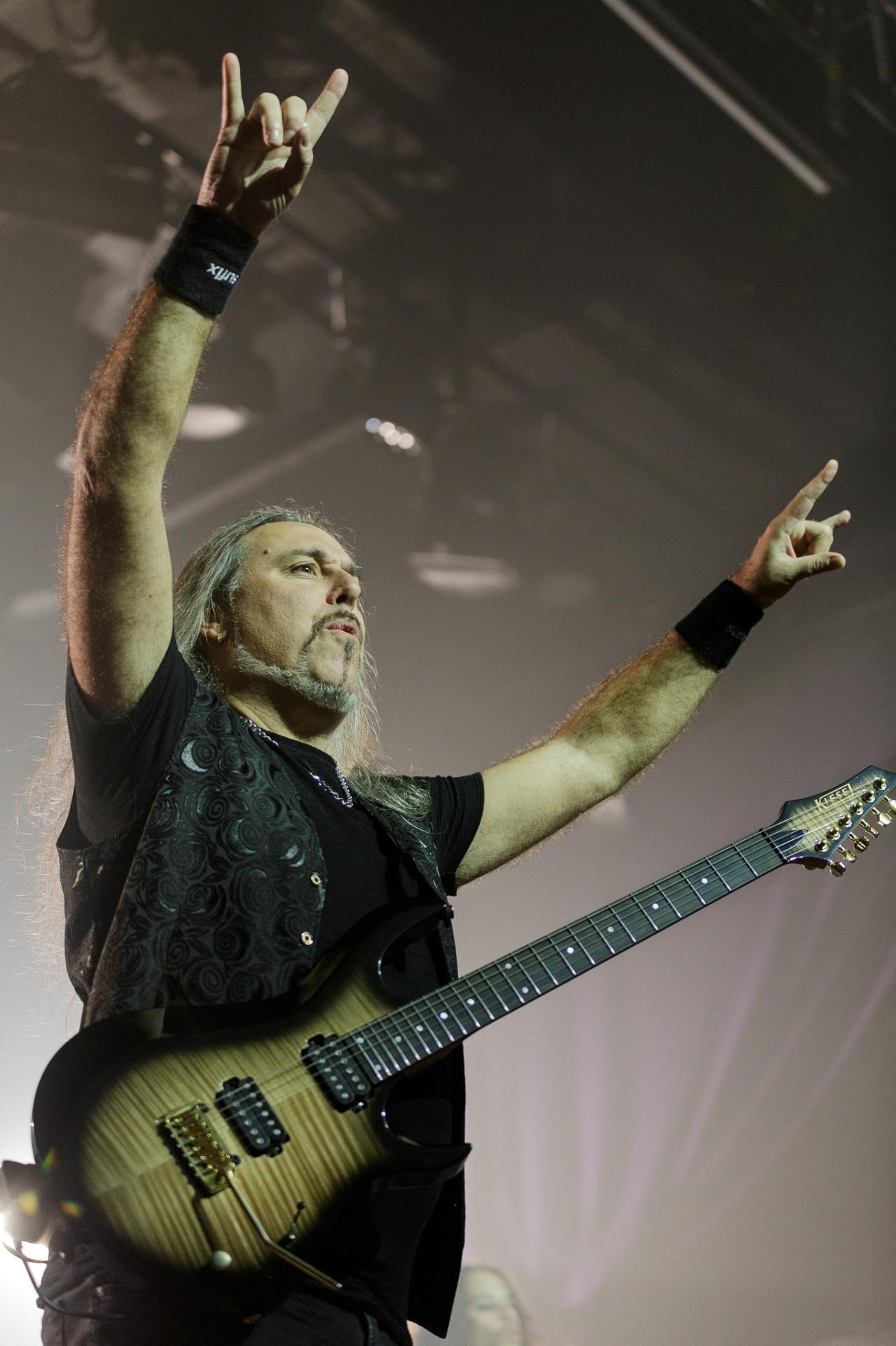 La soirée débute avec SECRET SPHERE, le groupe italien qui a su se faire un nom grâce à ses compositions mélodiques et puissantes. Mené par le charismatique Michele Luppi, le groupe plonge immédiatement le public dans son univers avec Psychokid, extrait de leur dernier album. Les morceaux comme Lifeblood et Legend alternent passages techniques et refrains accrocheurs, soutenus par une section rythmique impeccable. L’énergie du groupe est communicative, et Luppi s’adresse plusieurs fois au public en français, renforçant la proximité avec les spectateurs. Leur set s’achève sur Eternal Paths, laissant le public chauffé à blanc.