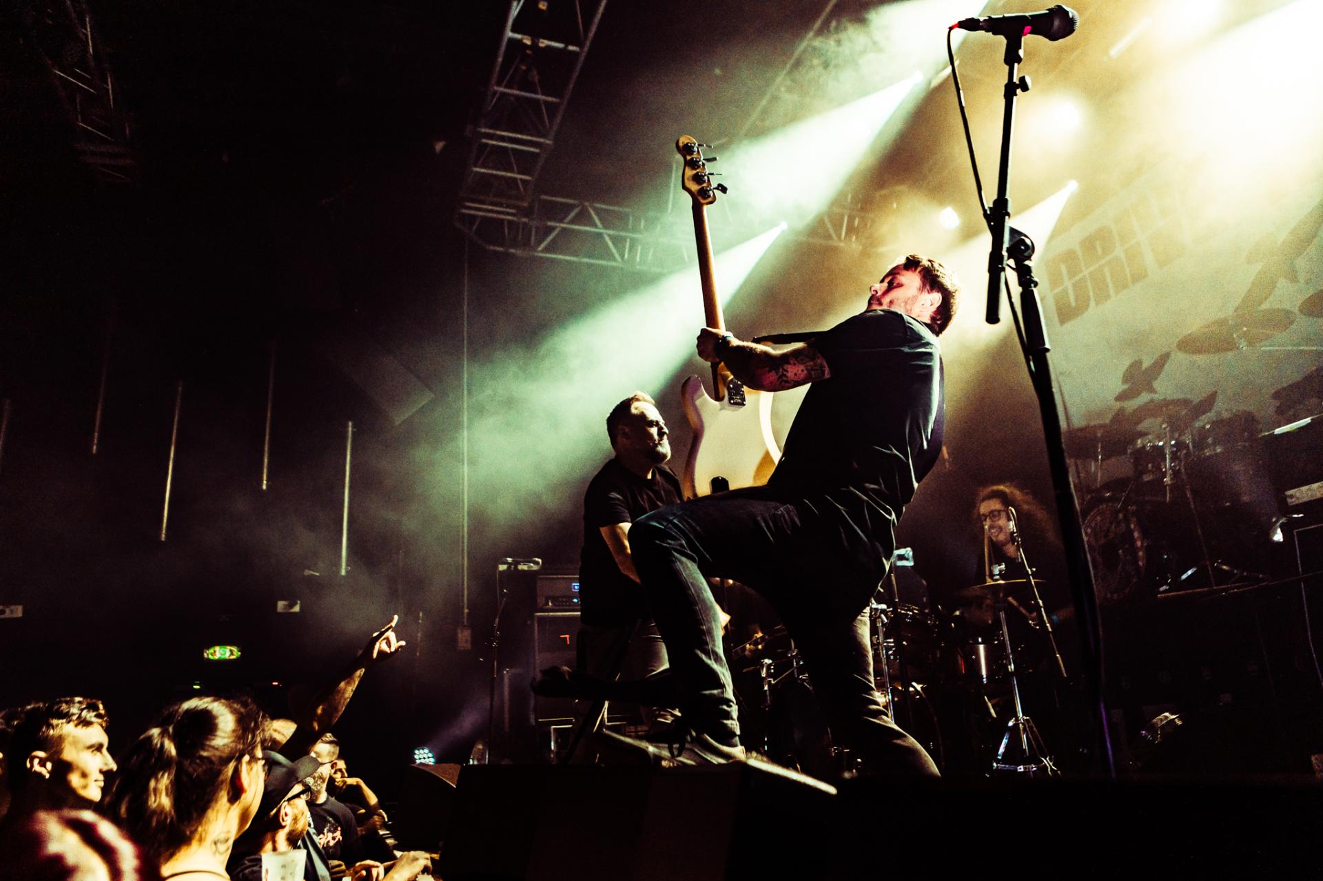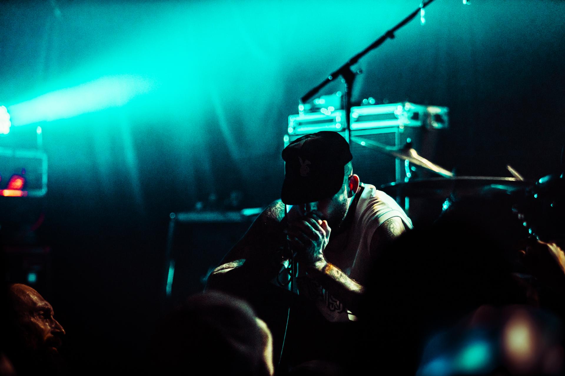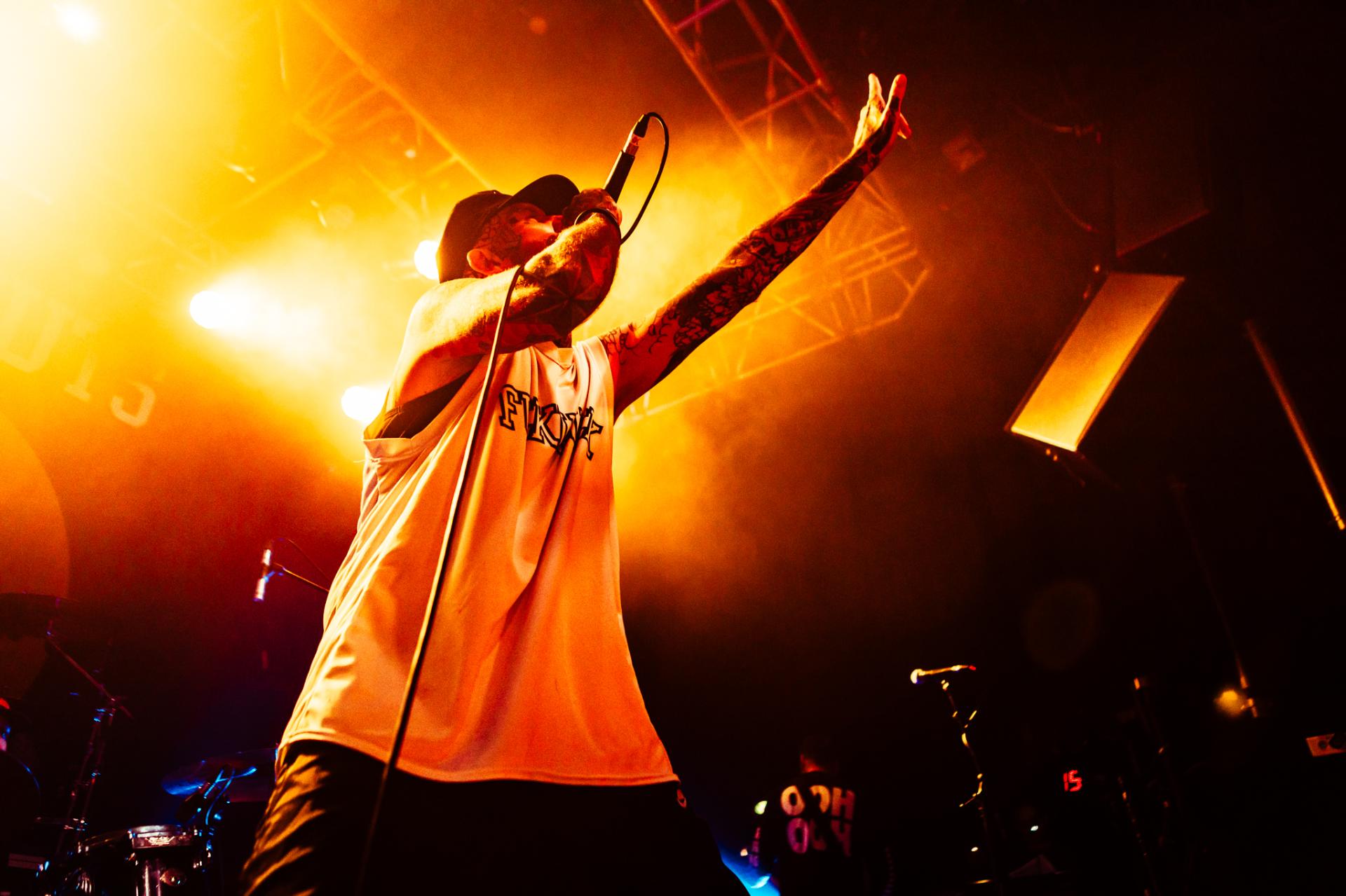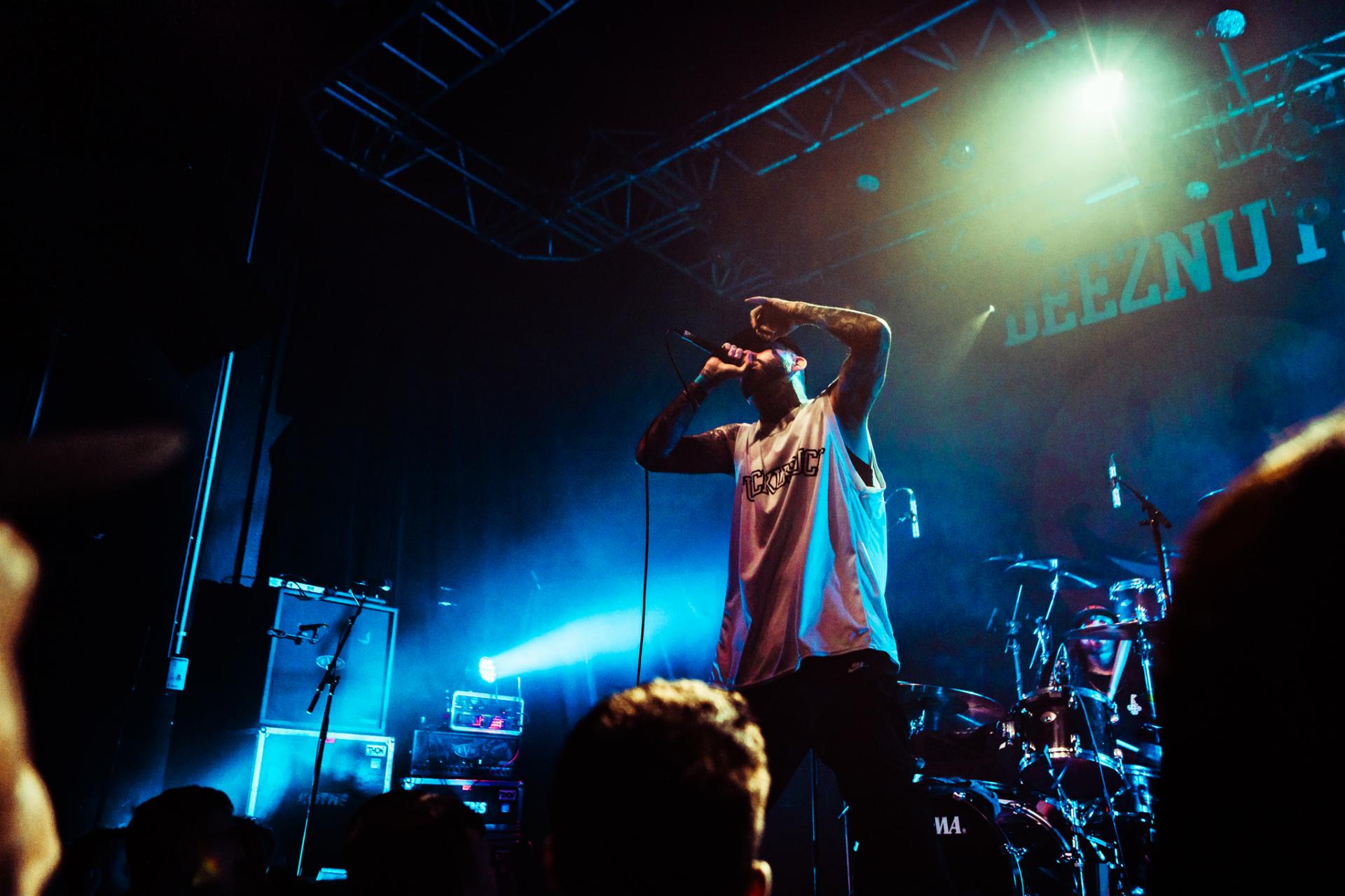 On ne les présente plus, né en 2007, DEEZ NUTS est rapidement devenu un pilier du punk/hardcore. Après de multiples problèmes de son, le groupe entre enfin sur scène. Ce qui choque d’emblée, c’est ce vide sur scène dû au manque d’un bassiste. Sean Kennedy, dernier bassiste du groupe s’étant donné la mort en février 2021, il n’a pas été remplacé depuis. Mais dès les premières notes, JJ Peters, frontman du groupe, compense largement ce manque par sa présence sur scène et son charisme. Ce qui est un peu moins le cas côté guitare avec un Matt Rogers bien en retrait, certainement blasé par les problèmes de son rencontrés avant et pendant le show. Malgré tout, DEEZ NUTS nous offre une prestation plus que convaincante. Le public toujours plus nombreux dans la salle, la zone des pogos s’étant très largement agrandie le prouve bien.