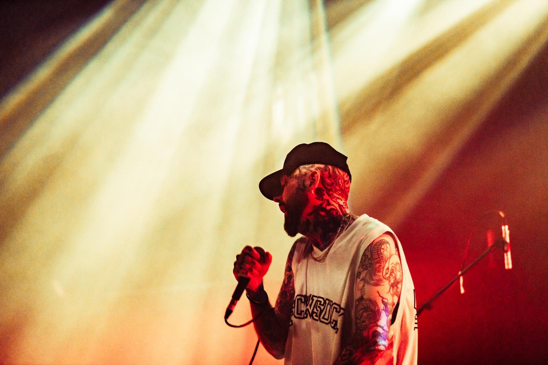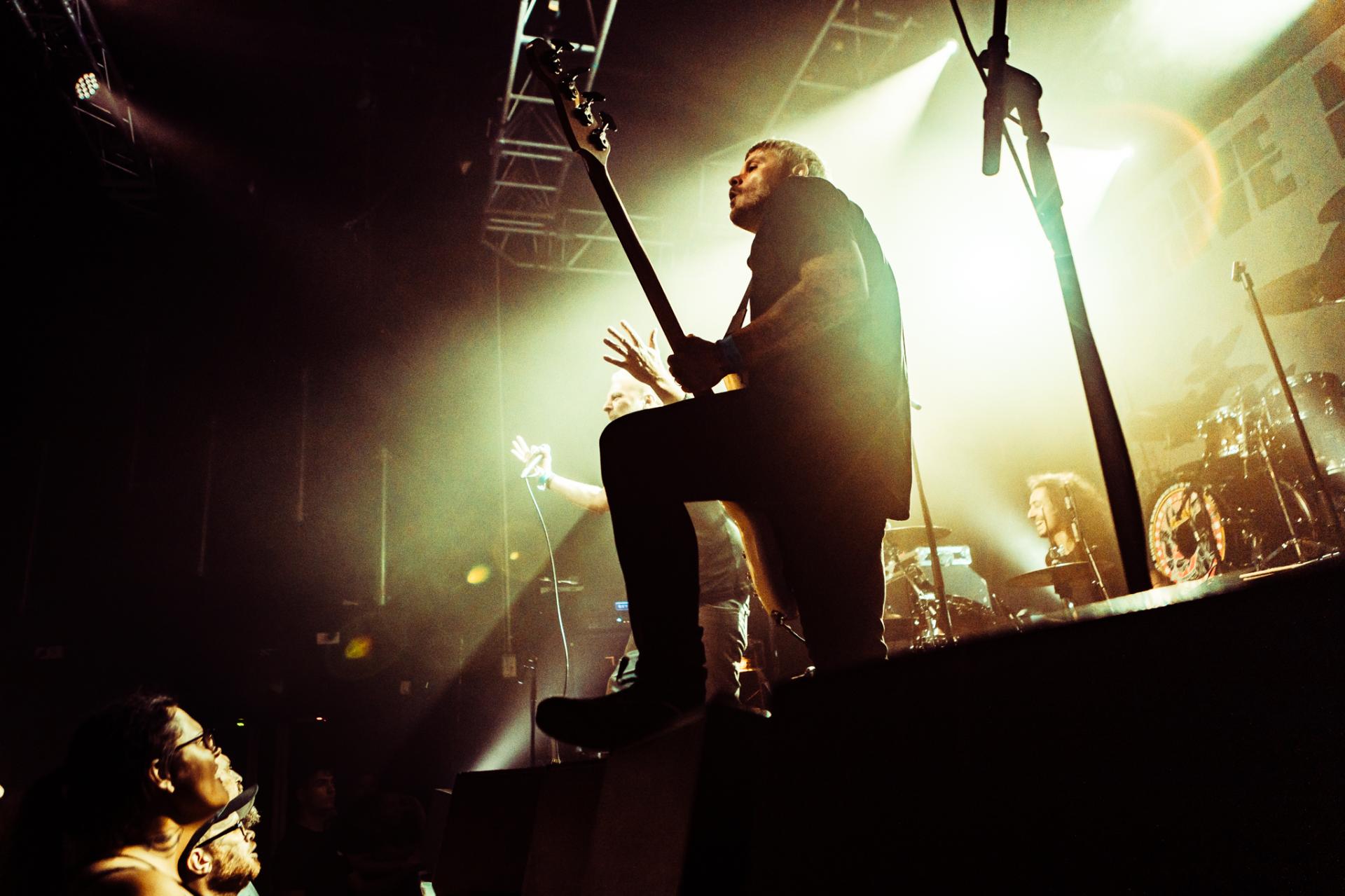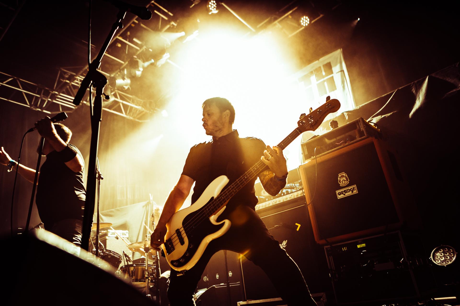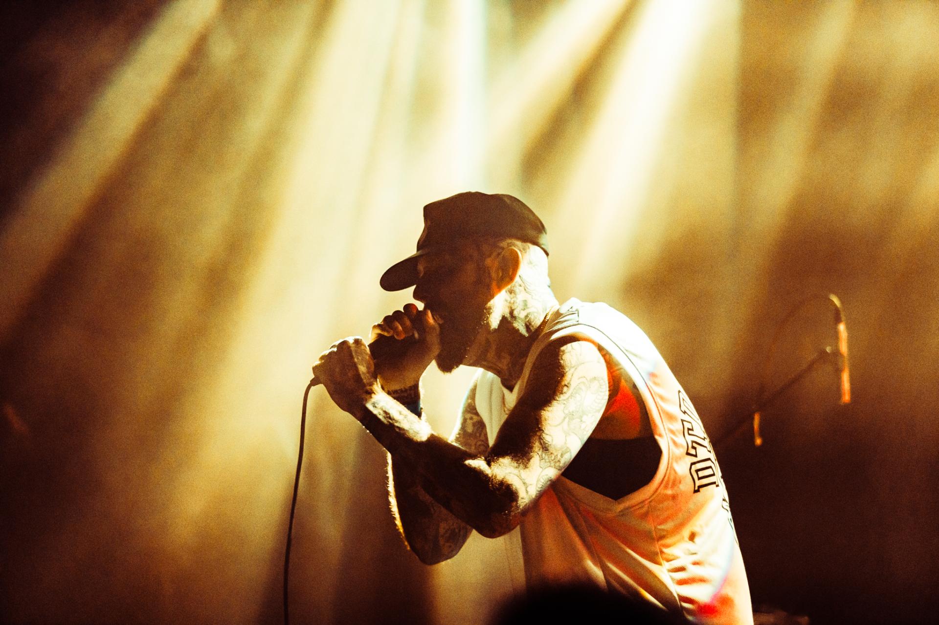 On ne les présente plus, né en 2007, DEEZ NUTS est rapidement devenu un pilier du punk/hardcore. Après de multiples problèmes de son, le groupe entre enfin sur scène. Ce qui choque d’emblée, c’est ce vide sur scène dû au manque d’un bassiste. Sean Kennedy, dernier bassiste du groupe s’étant donné la mort en février 2021, il n’a pas été remplacé depuis. Mais dès les premières notes, JJ Peters, frontman du groupe, compense largement ce manque par sa présence sur scène et son charisme. Ce qui est un peu moins le cas côté guitare avec un Matt Rogers bien en retrait, certainement blasé par les problèmes de son rencontrés avant et pendant le show. Malgré tout, DEEZ NUTS nous offre une prestation plus que convaincante. Le public toujours plus nombreux dans la salle, la zone des pogos s’étant très largement agrandie le prouve bien.