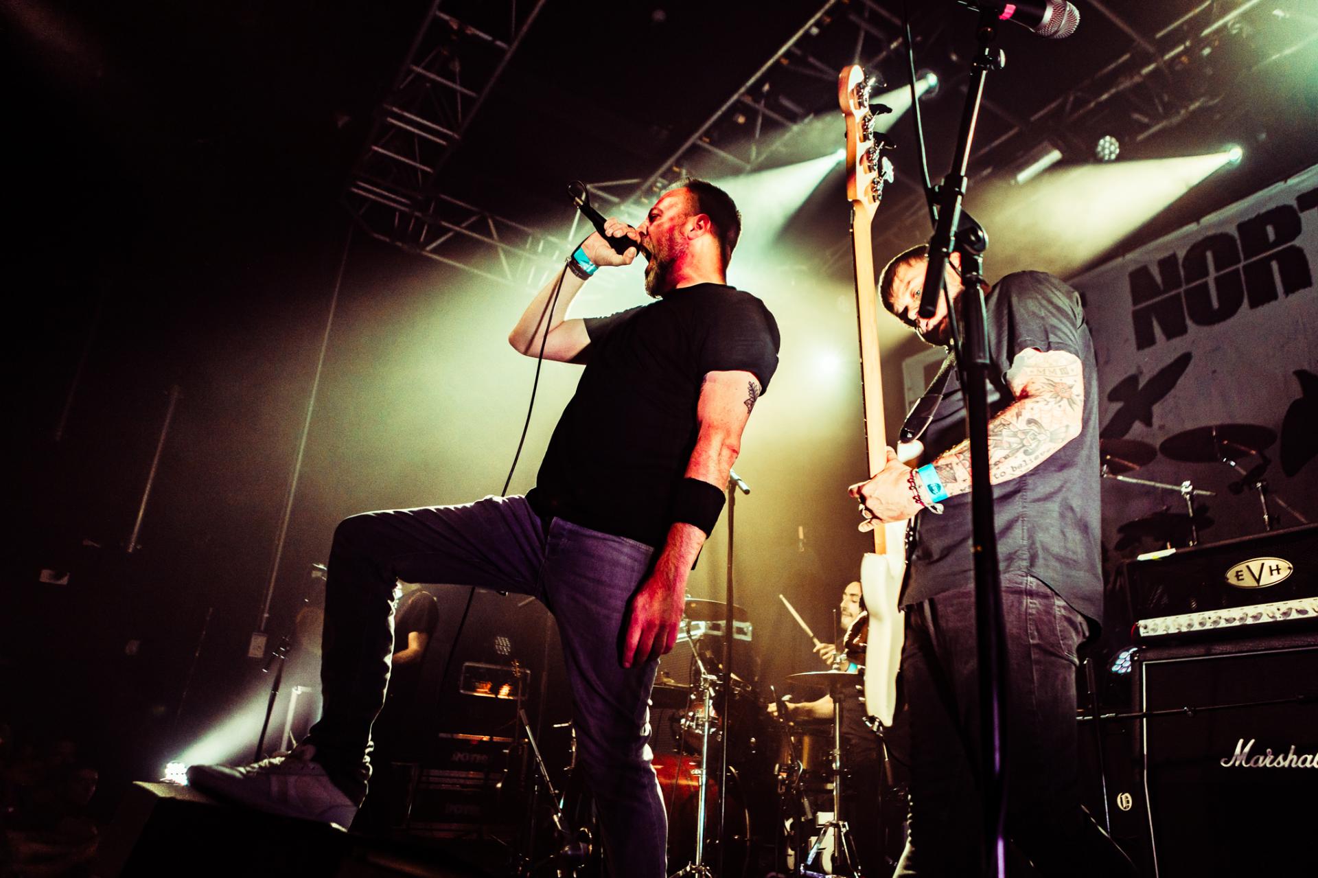 C’est dans une salle déjà bien remplie que DRIVE NORTH rentre sur scène. En effet, la soirée annonce complet, soit environ 700 personnes attendues ce soir. Ceci ne manque pas de faire réagir le groupe, heureux de voir du monde venir soutenir la scène locale. Le quatuor lyonnais ne met pas longtemps avant de convaincre le public. La soirée est peut-être placée sous le signe du hardcore, mais comme le dit DRIVE NORTH, hardcore, punk, metal, on s’en fout ! Les riffs s'enchaînent avec de multiples influences, loin d’être un simple groupe de hardcore. Les headbangs timides du début laissent rapidement place à de petites bousculades pour finir la seconde moitié du set en pogos. Nous avons été totalement convaincus par la performance du groupe et on aurait bien voulu en entendre davantage, mais il est temps de laisser la place au groupe suivant. On ne le dit jamais assez, mais continuez de soutenir la scène locale !