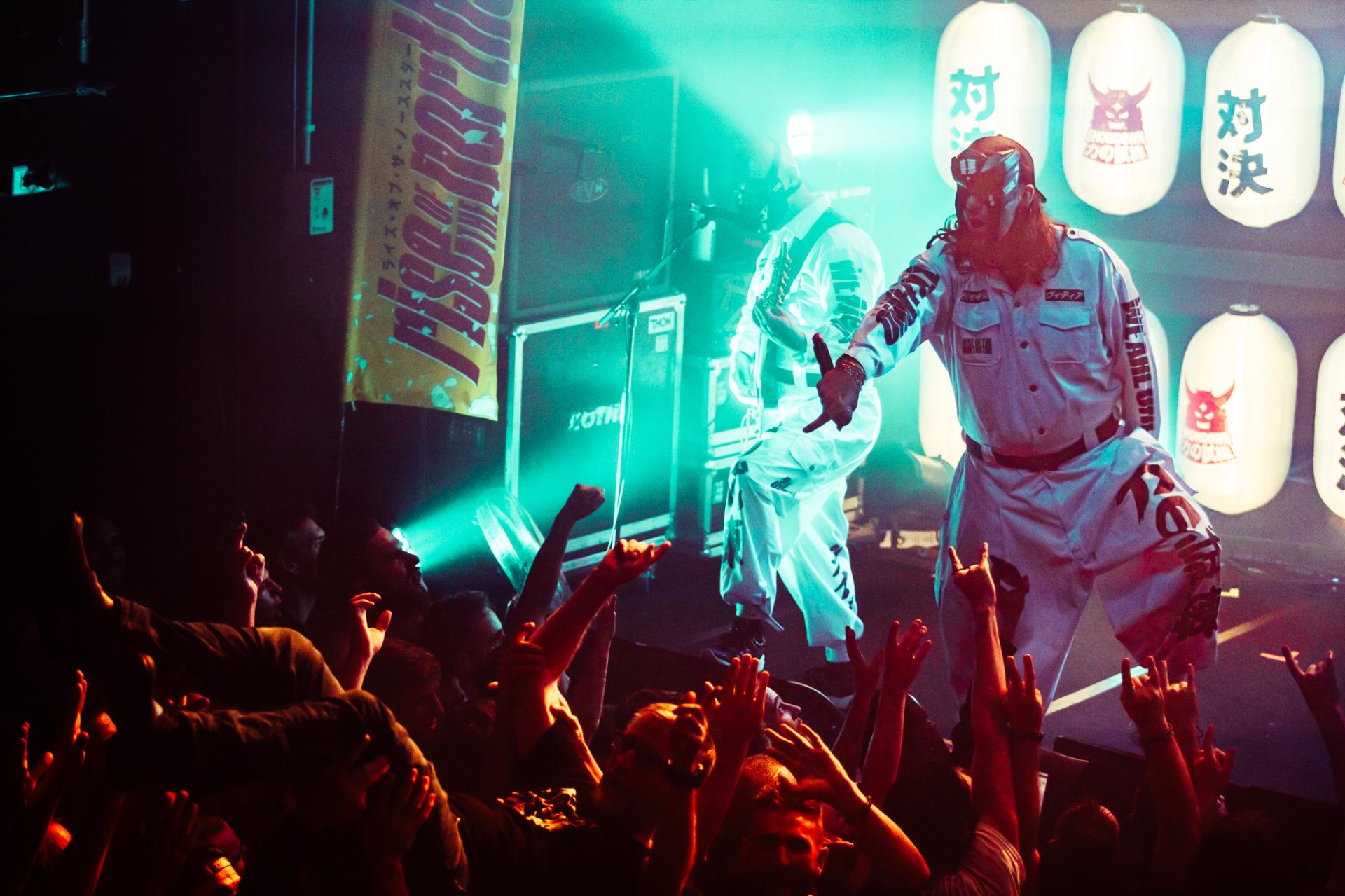 Dès le premier riff, la salle se transforme en un champ de bataille, les crowdsurfing pleuvent à foison. Je profite de cette parenthèse pour faire un big up au régisseur chargé de rattraper les slameurs qui arrivent directement sur scène, le Kao étant dépourvu de crash barrières. Côté setlist, le groupe est venu défendre leur dernier album qui a été joué en intégralité au cours de la soirée ainsi que beaucoup de leurs classiques. De Here Comes The Boom, Nekketsu à Welcame (Furyo State of Mind). Petite déception, pas de What The Fuck, Samouraï Spirit ou de Demonstrating My Saiyan Style. Mais cela n’enlève rien à la grande qualité du show proposé par le groupe.
