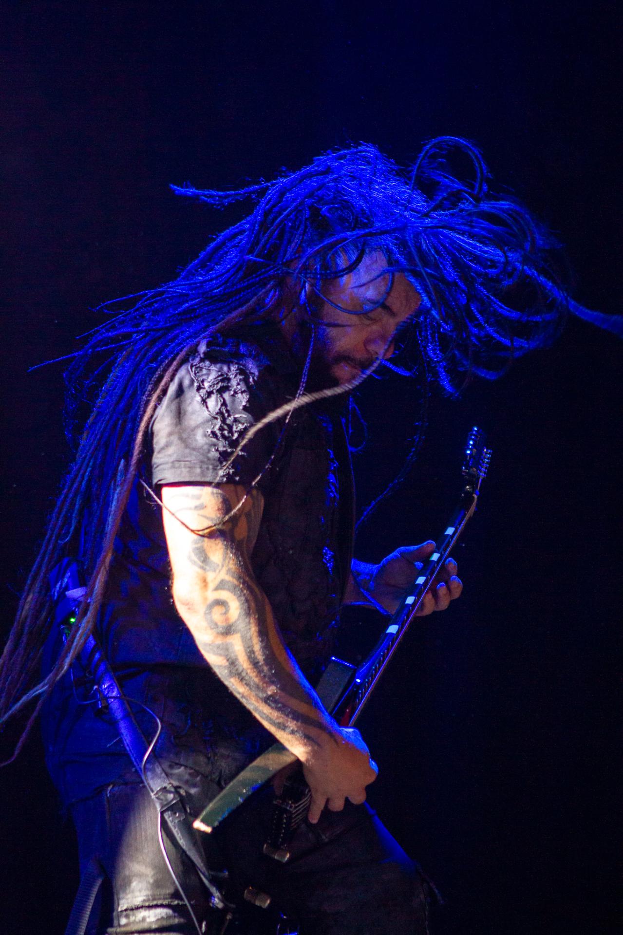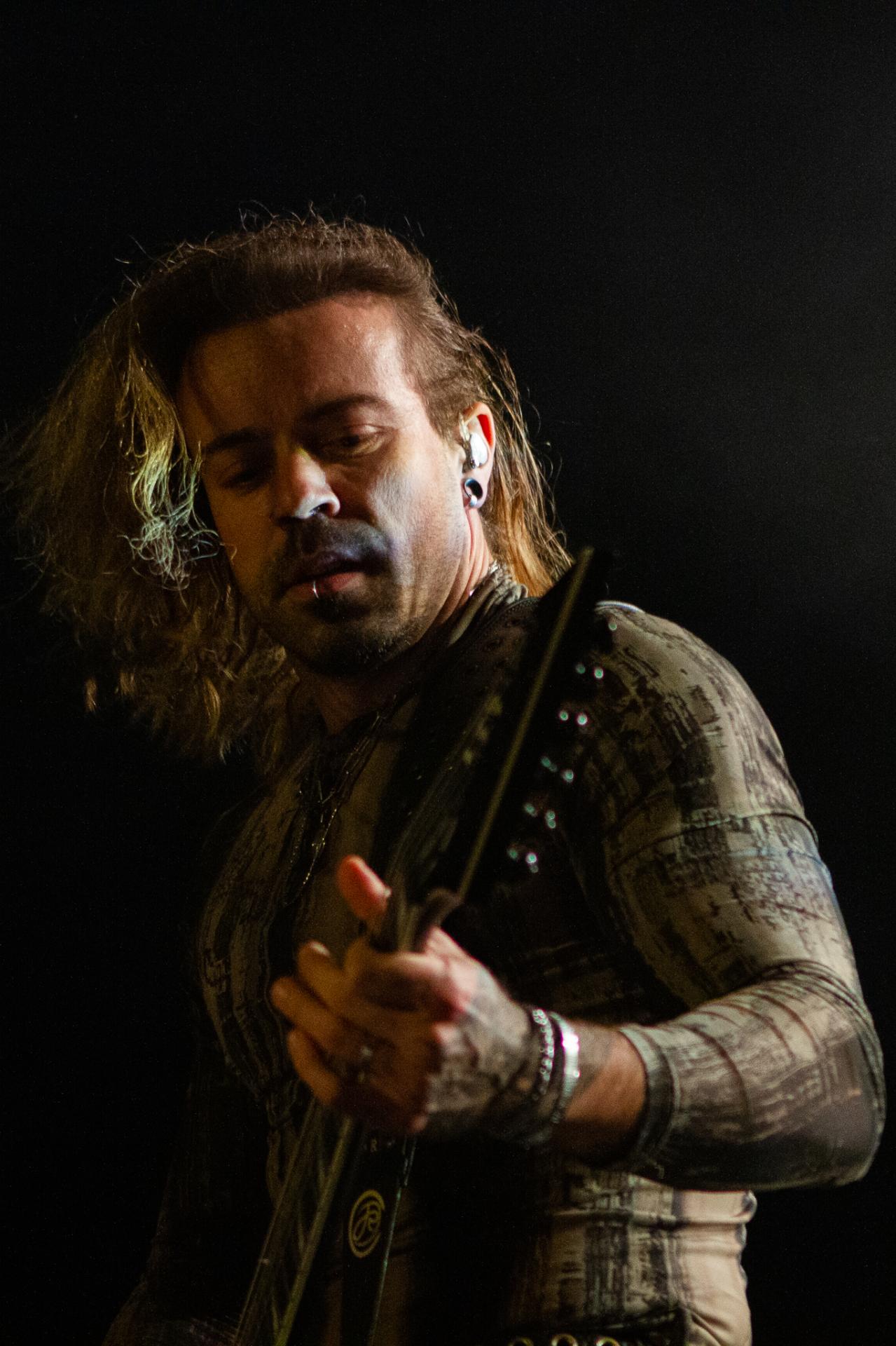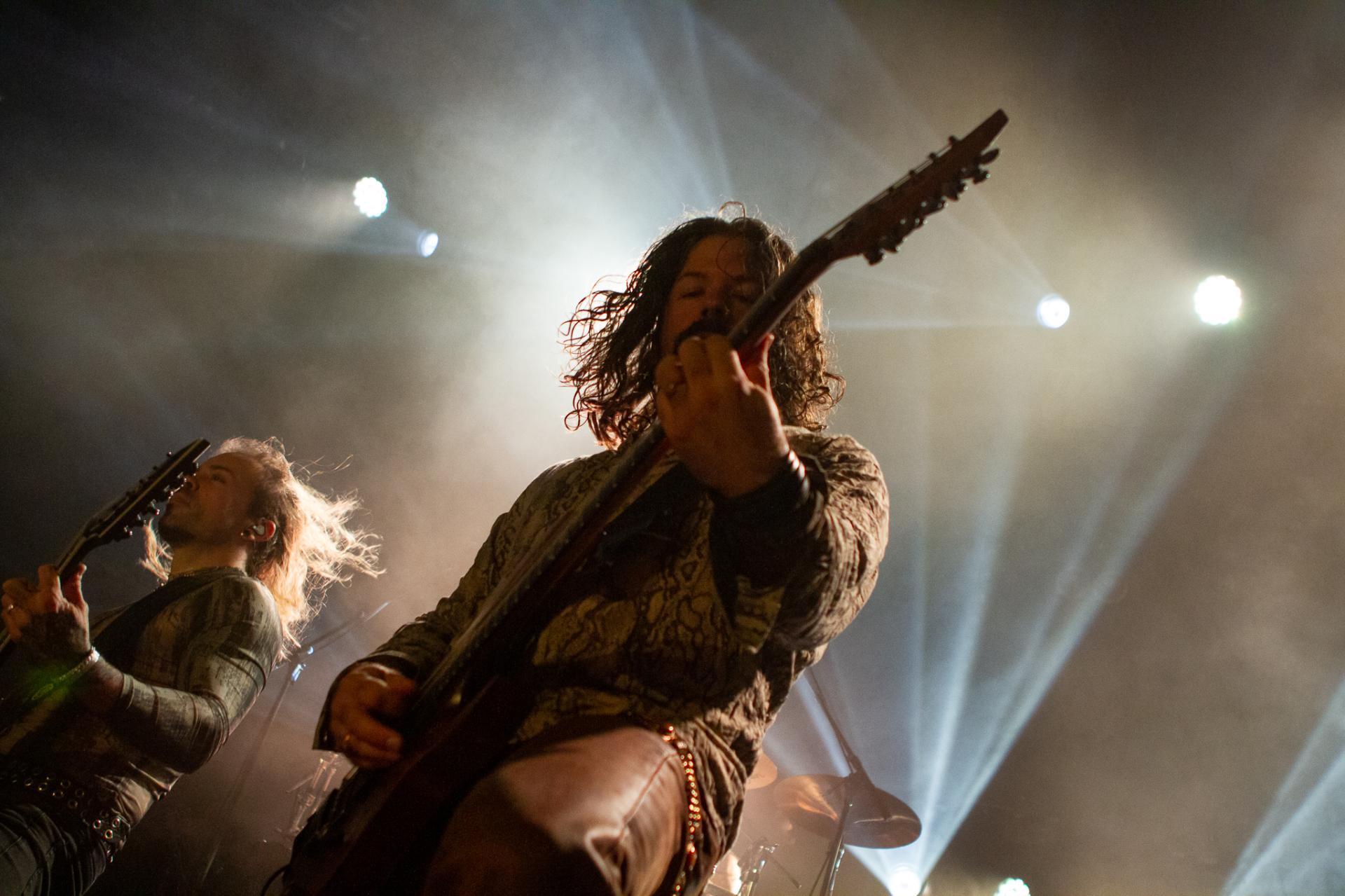 Quand EQUILIBRIUM monte sur scène, une tout autre énergie envahit la salle. Le groupe bavarois, qui s’éloigne peu à peu du folk metal pour embrasser un style plus varié, conserve néanmoins son ADN épique et fédérateur. Dès les premières notes de l’intro, les guitaristes Dom R. Cray et René Berthiaume (également leader du groupe) marquent le ton avec quelques percussions martiales avant d’enchaîner sur Legends, un titre inédit. Bien que l’absence d’un bassiste se remarque visuellement, l’ensemble reste solide et percutant.