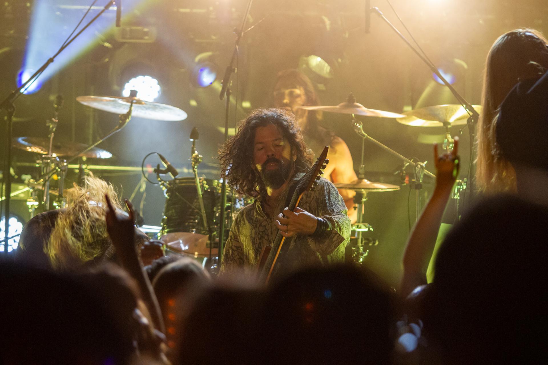 Enfin, le moment tant attendu : SEPTICFLESH entre en scène, transformant le Trabendo en un temple sombre et apocalyptique. Dès The Vampire from Nazareth, le son massif, porté par des orchestrations grandioses, enveloppe l’audience. Spiros Antoniou, alias Seth Siro Anton, domine la scène de sa présence imposante. Entre riffs de basse grondants et growls abyssaux, il guide le public dans un voyage sonore intense. Modern Primitive, leur dernier opus, est à l’honneur avec des morceaux tels que Neuromancer, Hierophant et Coming Storm. Mais les classiques sont également au rendez-vous : Pyramid God, Prometheus et Communion ravissent les fans de longue date.