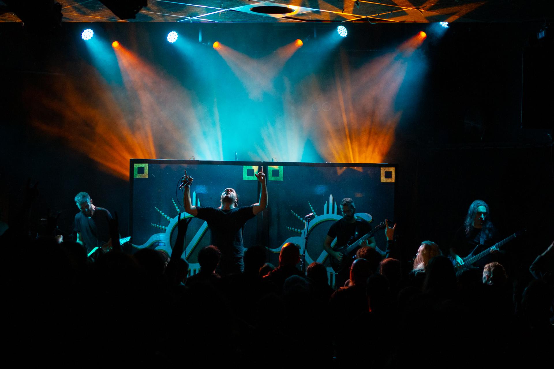La scénographie, sobre mais efficace, met en valeur la musique. Les éclairages rouges et bleus renforcent l’aspect théâtral de leur performance, tandis que le public, hypnotisé, accompagne chaque note avec ferveur. Après une courte pause, le groupe revient pour un rappel monumental, couronné par Anubis et l’incontournable Dark Art.