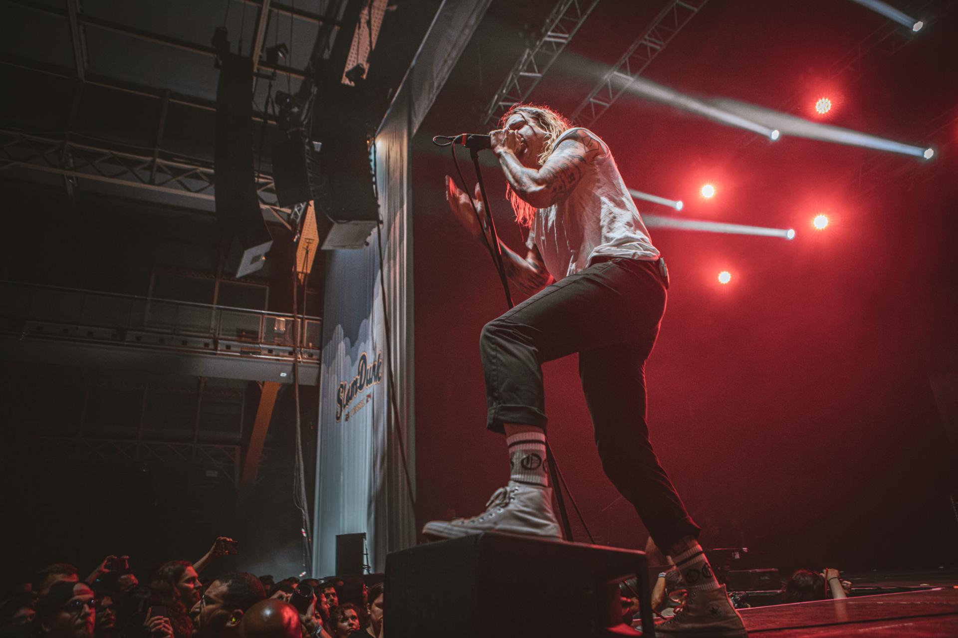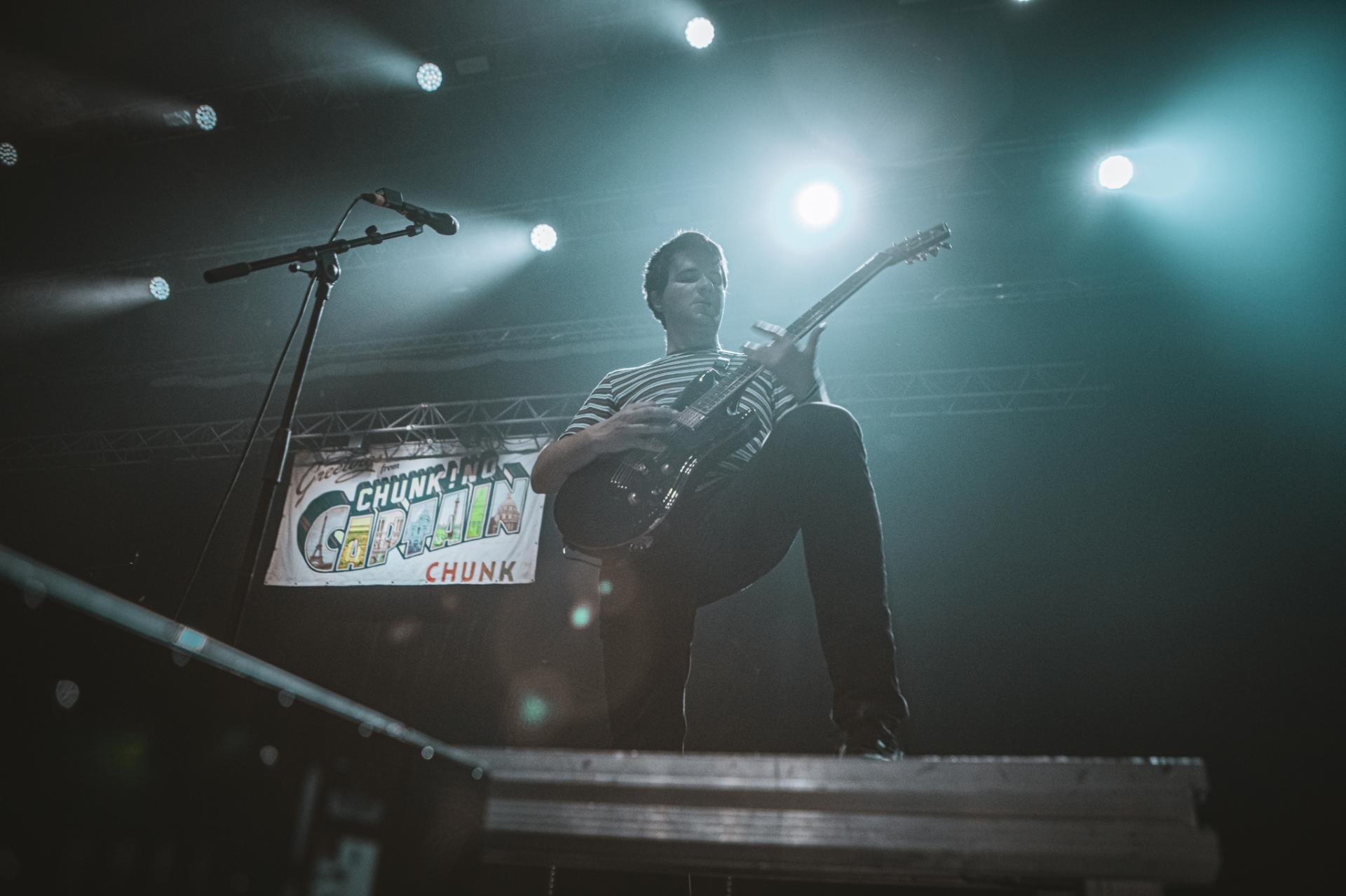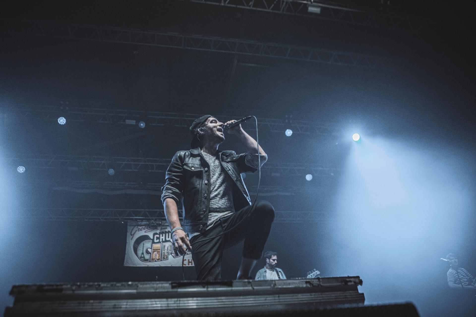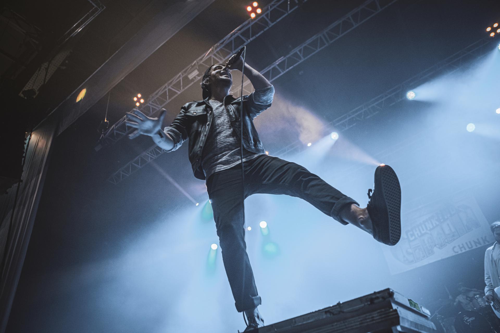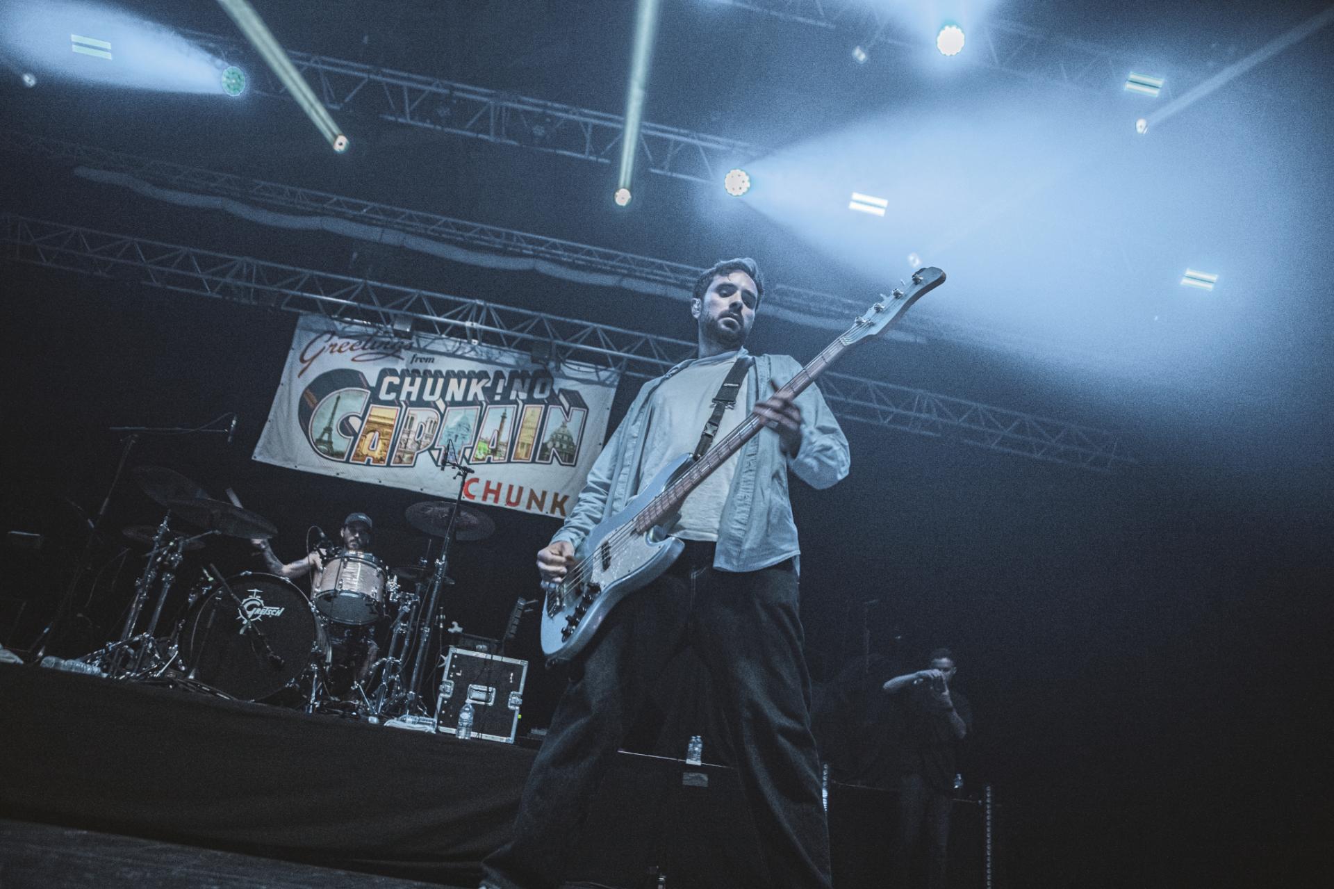 C’est un des groupes que nous attendions le plus sur cette journée du Slam Dunk. Un classique pour le festival, de nombreuses fois présent lors des anciennes éditions à l’étranger, CHUNK! NO, CAPTAIN CHUNK. Malheureusement dès le début le groupe rencontre des problèmes techniques qui les force à attendre sur scène. Bertrand, frontman du groupe prend alors ce temps là pour discuter avec le public en attendant que le problème soit résolu. Une fois résolu, le concert peut enfin commencer. C’est un set rempli de classiques que le groupe nous propose, Playing Dead, The Other Line, All Star (ou la musique de Shrek comme certains aiment l'appeler) pour ne citer qu'eux. Malheureusement, le son est loin d’être à la hauteur du show proposé par le groupe. À peine audible par moment…