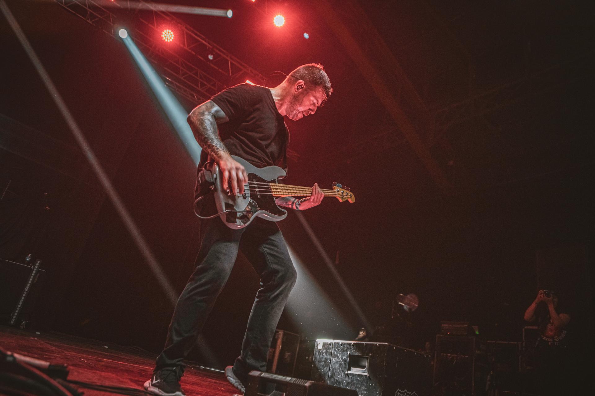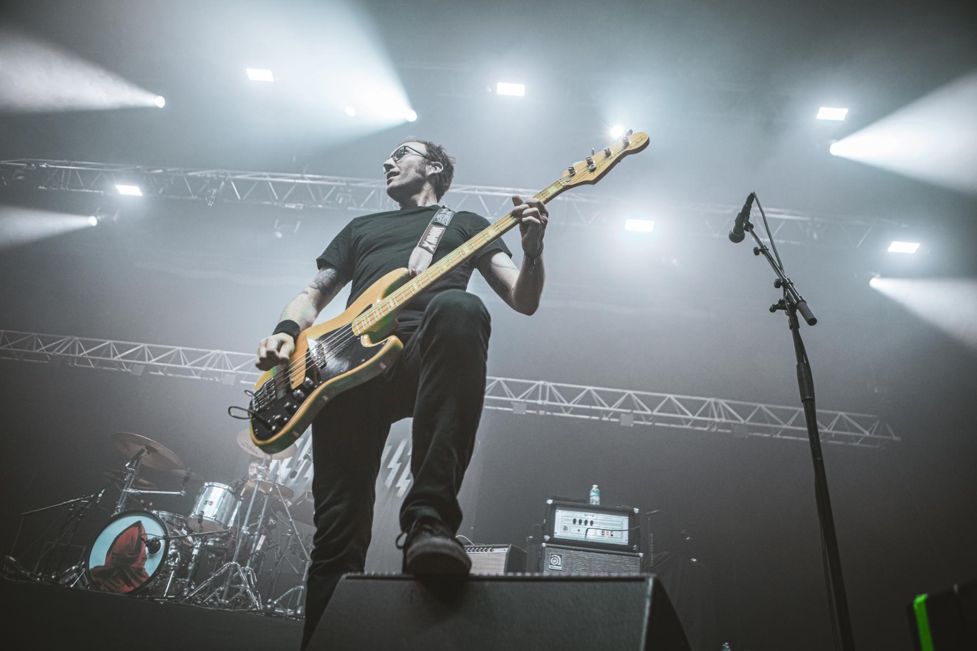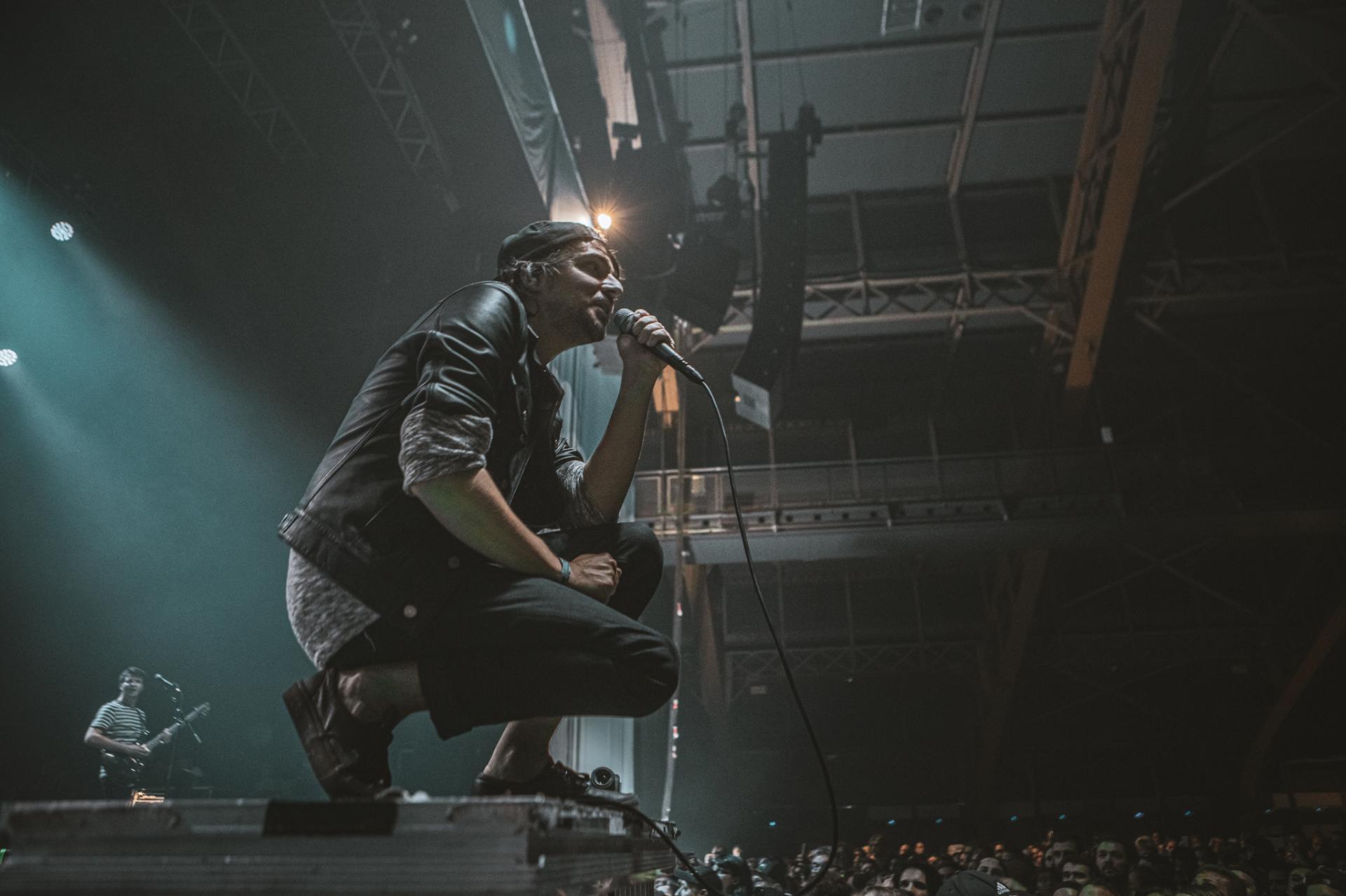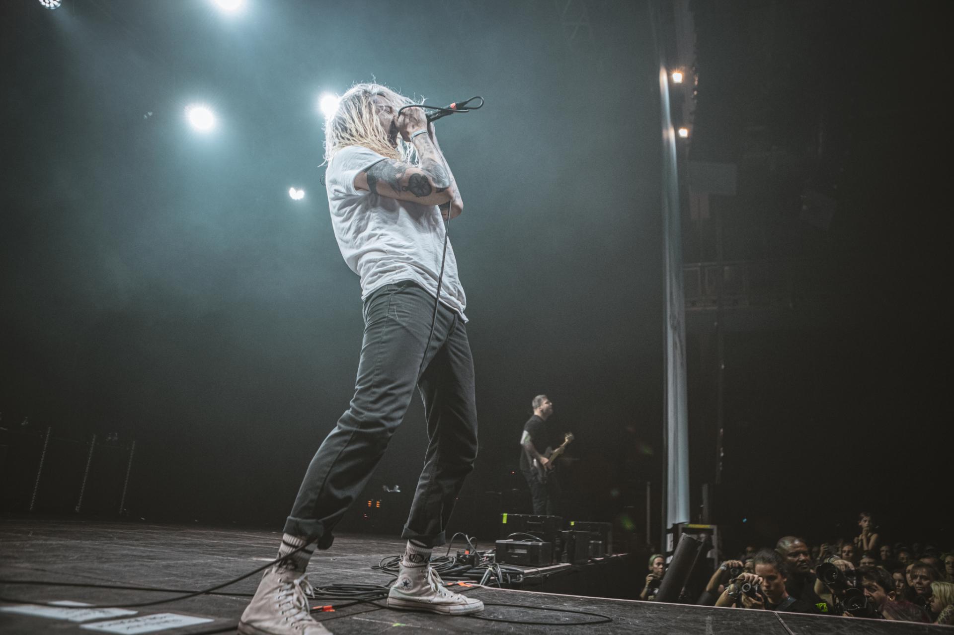 Après le punk rock alternatif et le post rock emo, c’est maintenant au tour du metalcore d’être mis en avant. Les californiens de ATREYU arrivent sur scène et une chose et sur, ils ne sont pas venus enfiler des perles. Le groupe déborde d’énergie et le partage très bien avec son public. Un public qui comme l’année dernière s’amuse avec les gobelets non consignés de la salle. Nous retrouvons alors la classique pluie de gobelets, des chenilles de gobelets ou alors ce qui deviendra le running gag de la soirée, la pile de gobelets qui arrive petit à petit vers la scène. Cette fameuse pile qui finira par arriver aux mains du frontman. Spoiler, ce sera la seule fois que cette pile arrivera sur scène ! Mais la pluie et la chenille du gobelet ne prendra pas fin avant la fin du festival. Mais ne résumons pas le set de ATREYU uniquement à de simples gobelets ! En termes d’ambiance, nous passons également un cap, les headbangs timides laissent maintenant place à de nombreux pogos tout au long du concert. Le public est de plus en plus nombreux et motivé comme jamais à partager son énergie.