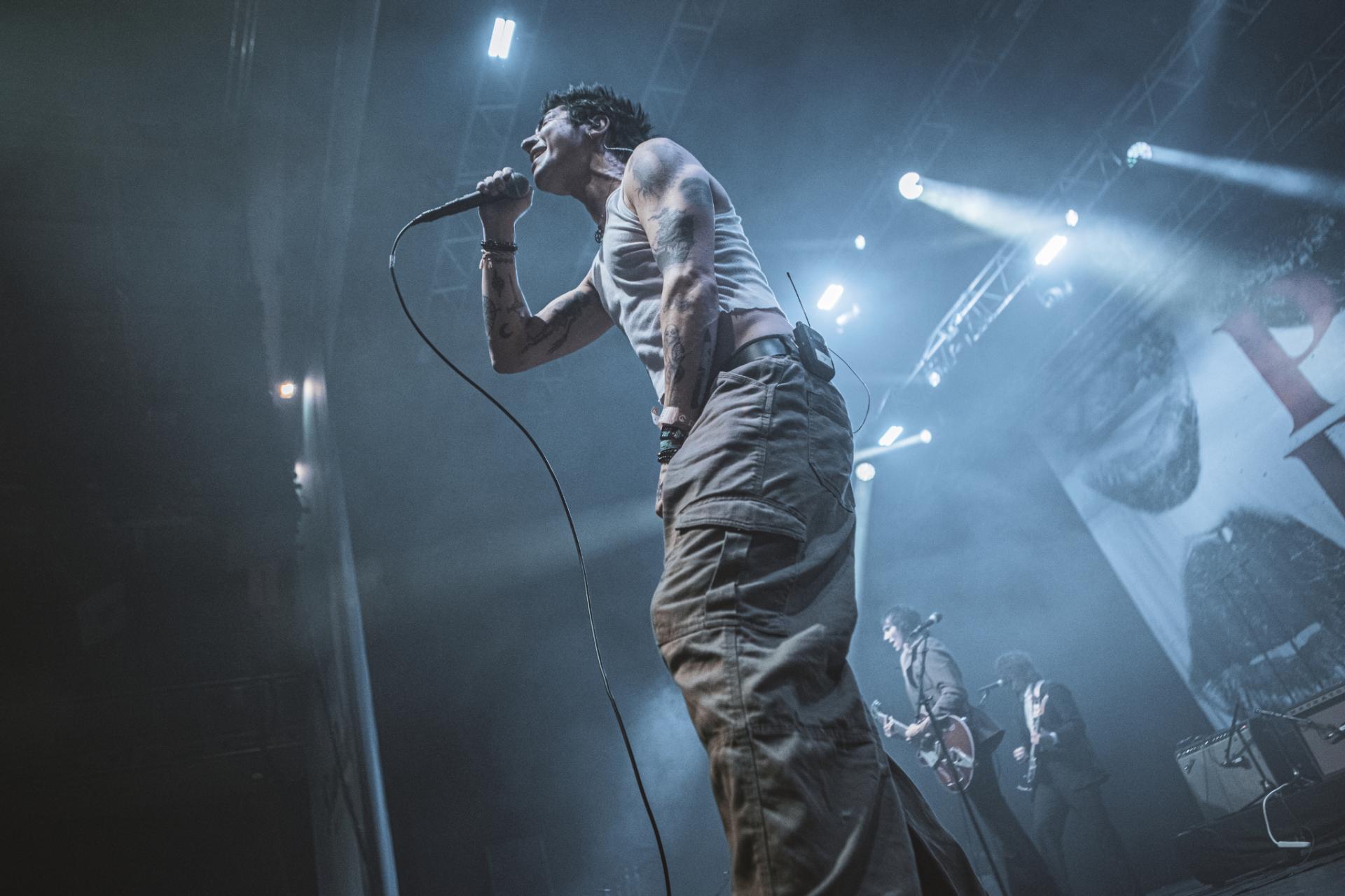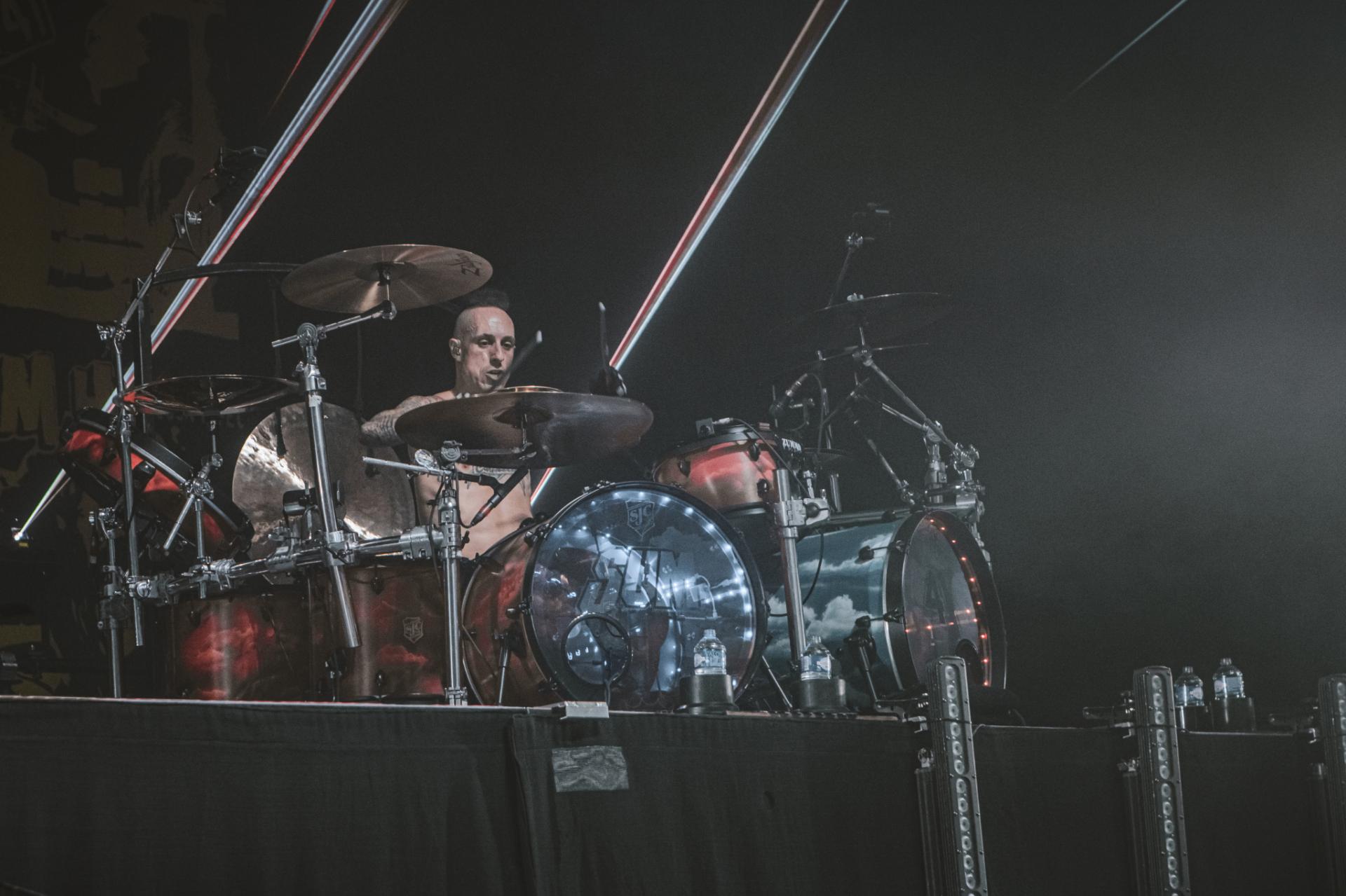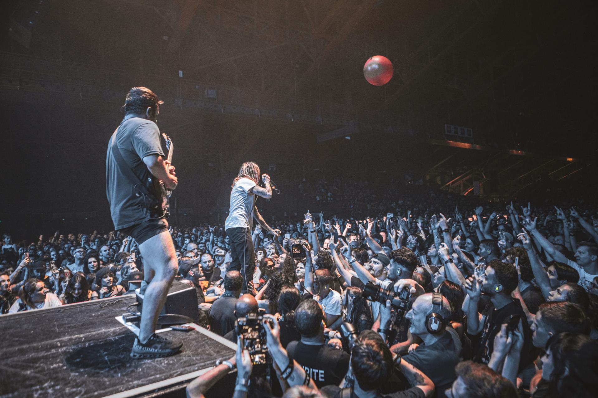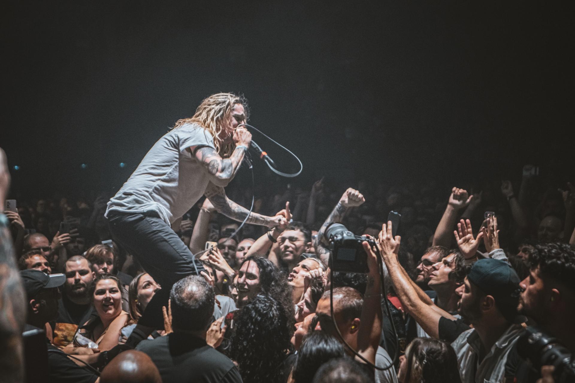 Après le punk rock alternatif et le post rock emo, c’est maintenant au tour du metalcore d’être mis en avant. Les californiens de ATREYU arrivent sur scène et une chose et sur, ils ne sont pas venus enfiler des perles. Le groupe déborde d’énergie et le partage très bien avec son public. Un public qui comme l’année dernière s’amuse avec les gobelets non consignés de la salle. Nous retrouvons alors la classique pluie de gobelets, des chenilles de gobelets ou alors ce qui deviendra le running gag de la soirée, la pile de gobelets qui arrive petit à petit vers la scène. Cette fameuse pile qui finira par arriver aux mains du frontman. Spoiler, ce sera la seule fois que cette pile arrivera sur scène ! Mais la pluie et la chenille du gobelet ne prendra pas fin avant la fin du festival. Mais ne résumons pas le set de ATREYU uniquement à de simples gobelets ! En termes d’ambiance, nous passons également un cap, les headbangs timides laissent maintenant place à de nombreux pogos tout au long du concert. Le public est de plus en plus nombreux et motivé comme jamais à partager son énergie.