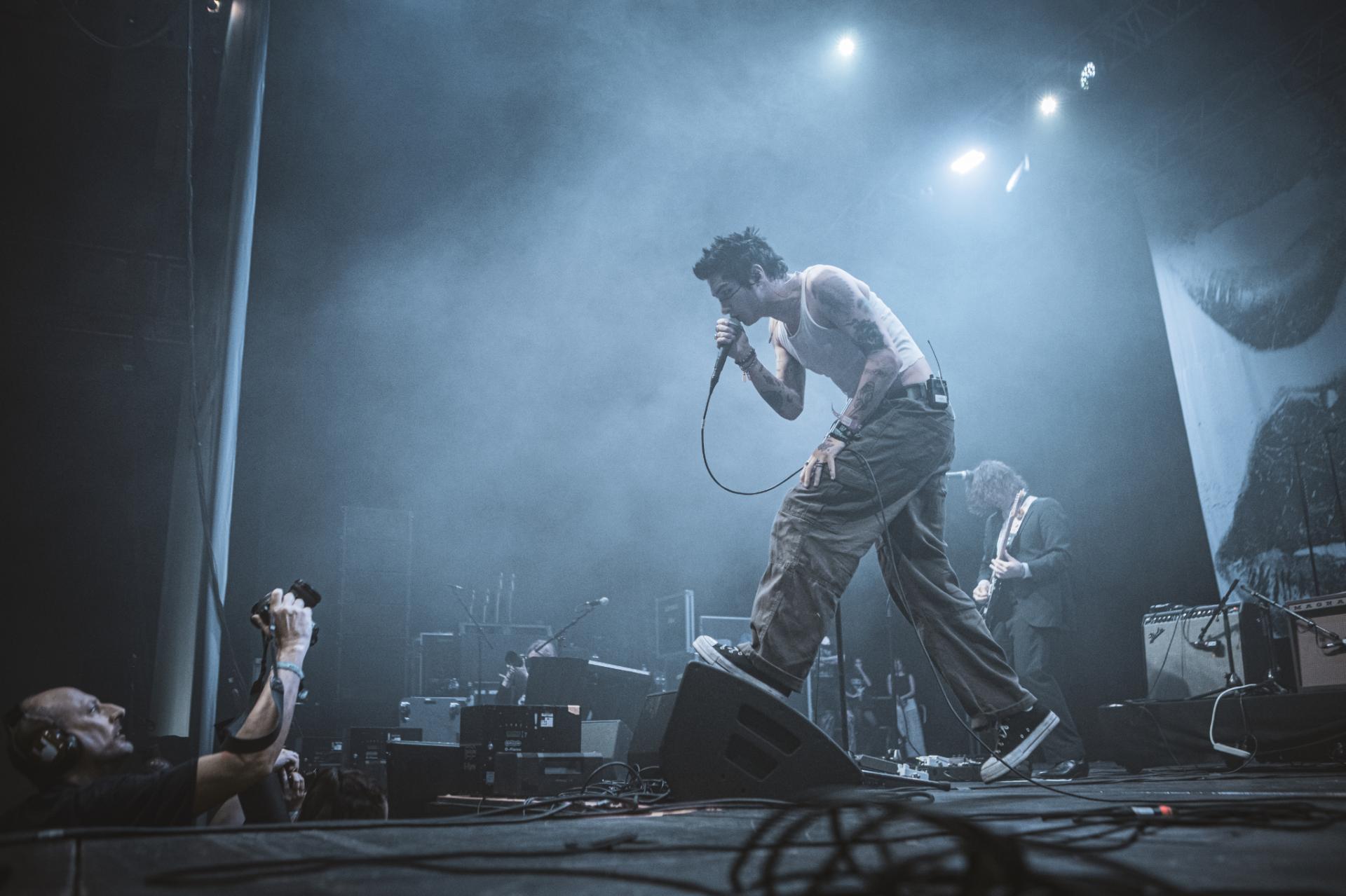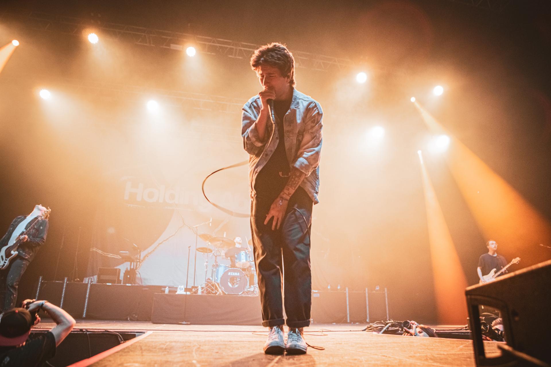 C’est maintenant aux britanniques de HOLDING ABSENCE d’entrer sur scène. Comme pour le groupe précédent, le groupe à de nombreuses influences musicales diverses et variées mais bien différentes de NOT SCIENTISTS. Nous pouvons y retrouver des influences post-rock, alternatif, emo. Si le public était déjà chaud sur le set précédent, avec HOLDING ABSENCE nous passons un cap. Les fans du groupe semblent être venus nombreux pour assister au show. Nous pouvons entendre le public chanter en cœur les titres phare du groupe comme Afterlife ou A Crooked Melody.