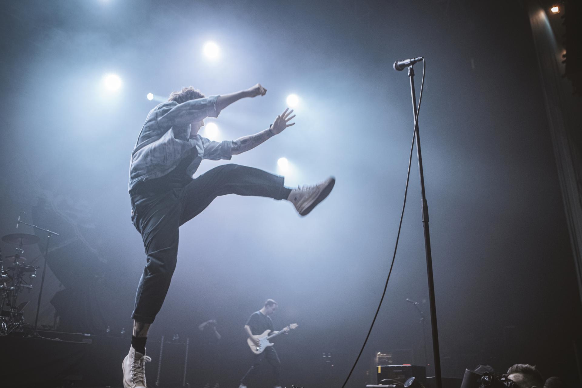 Après un passage remarqué à la Machine du Moulin Rouge à Paris il y a quelques jours, c’est maintenant à Lyon que les Floridiens se produisent. Le groupe est très attendu par le public lyonnais venu en nombre pour le soutenir. C’est également l’occasion de fêter les 20 ans de l’album They’re Only Chasing Safety sorti en 2004. Le groupe fait une entrée fracassante, entre Timothy McTague en caleçon et Spencer Chamberlain débordant d’énergie sous une ovation du public lyonnais. Ce dernier n’a pas attendu longtemps avant de se jeter dans le public arrivé au second morceau. Un set plus que convainquant des américains et nous en sortons en ayant pris une grosse claque !