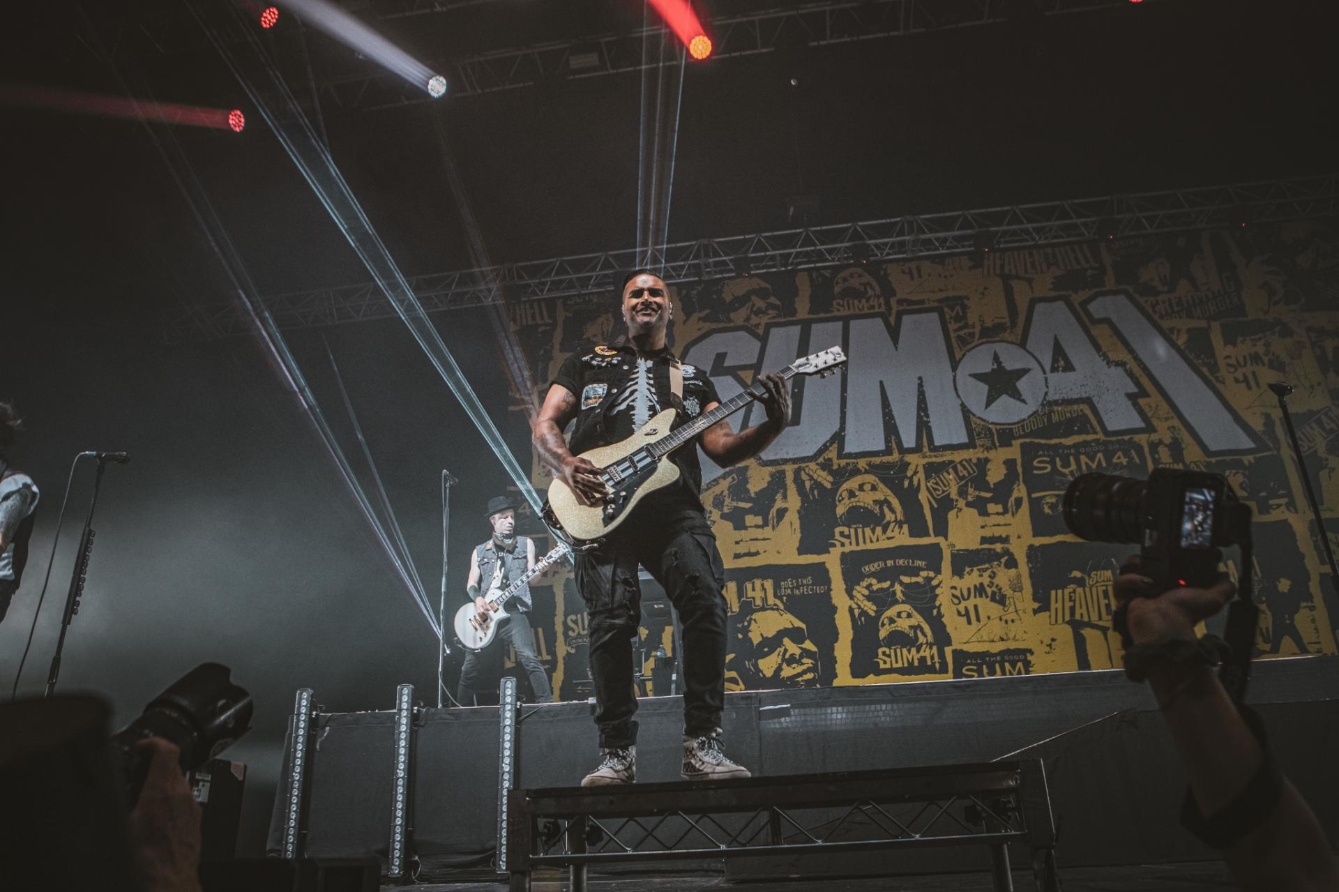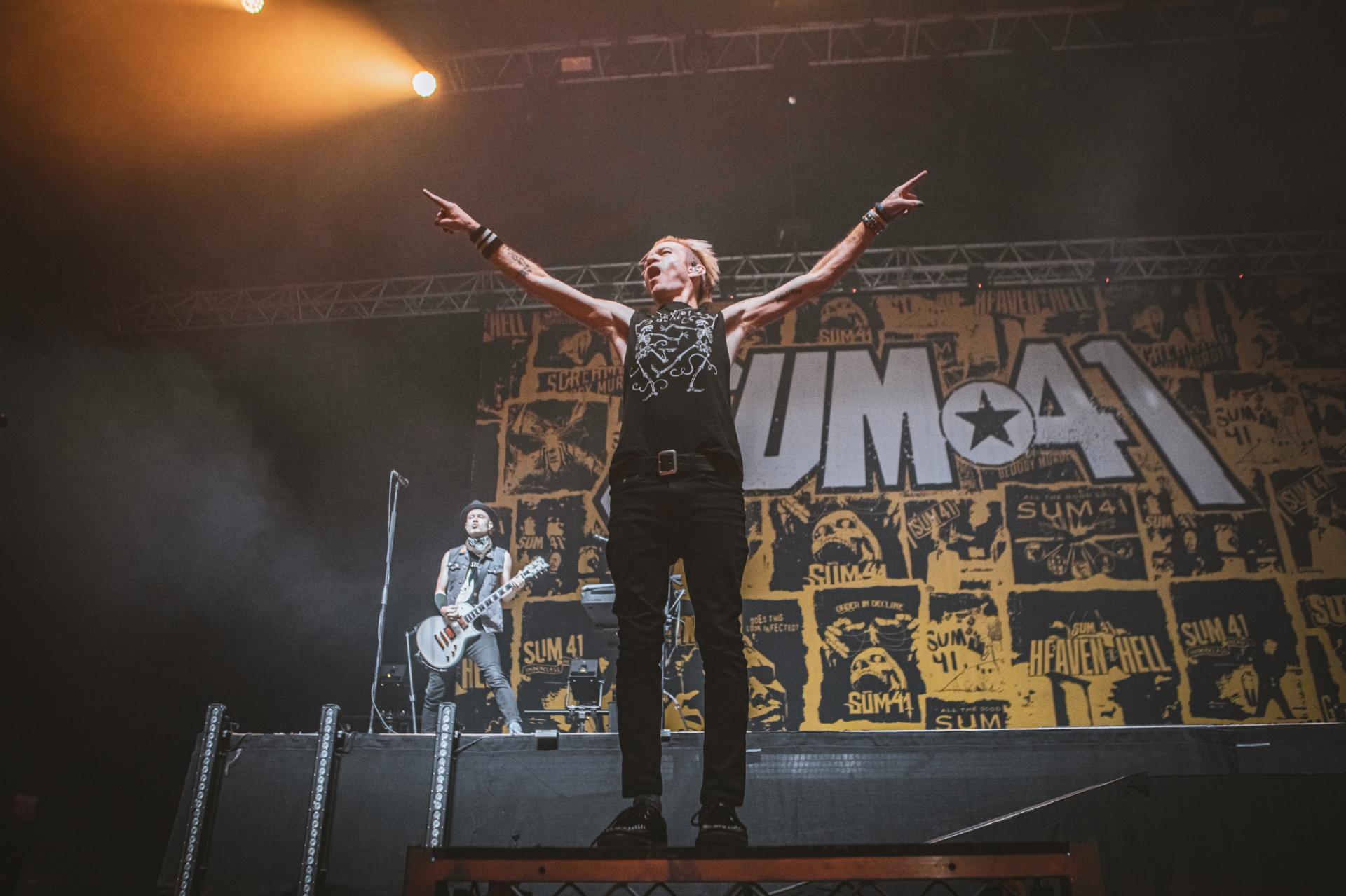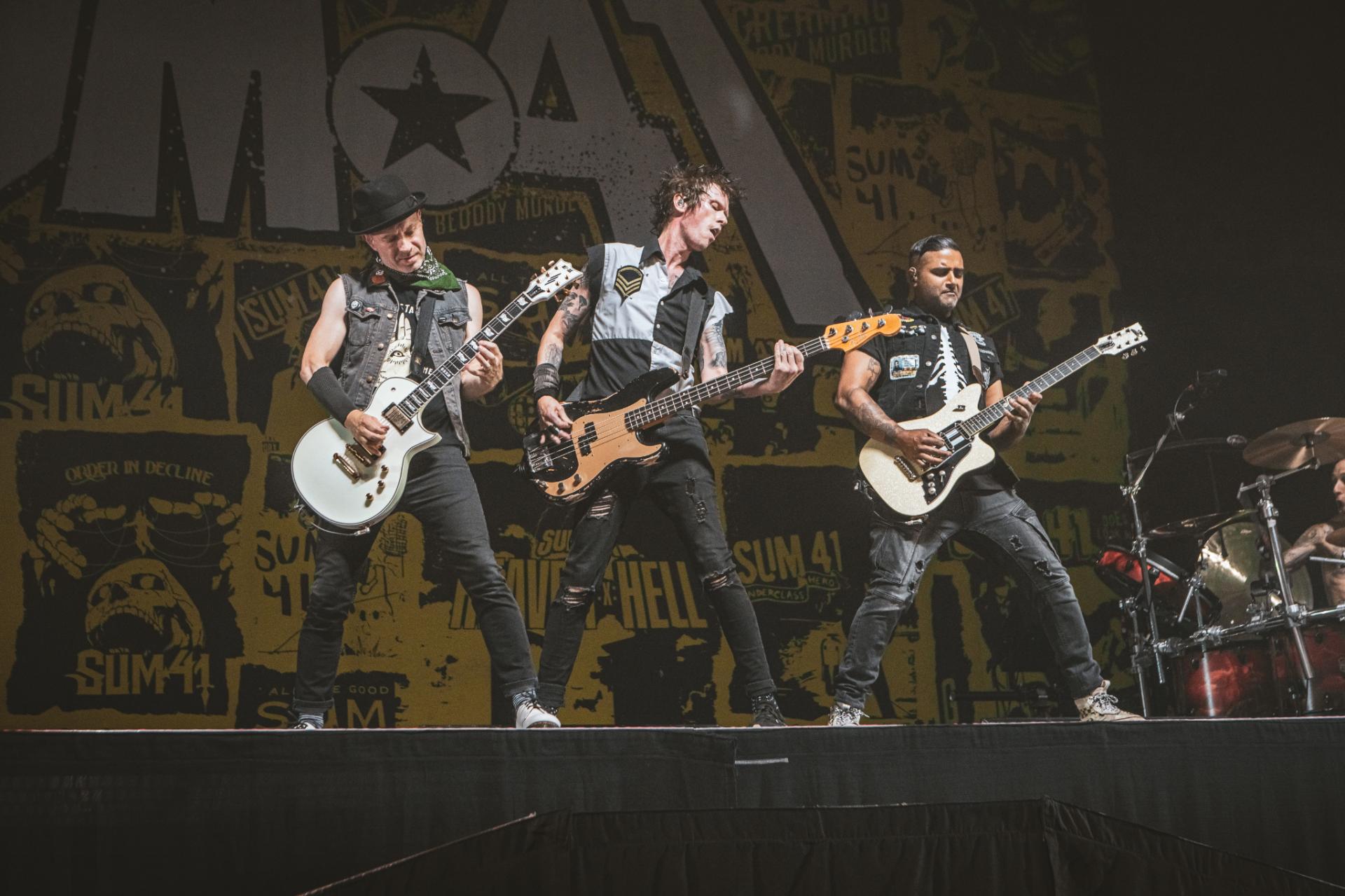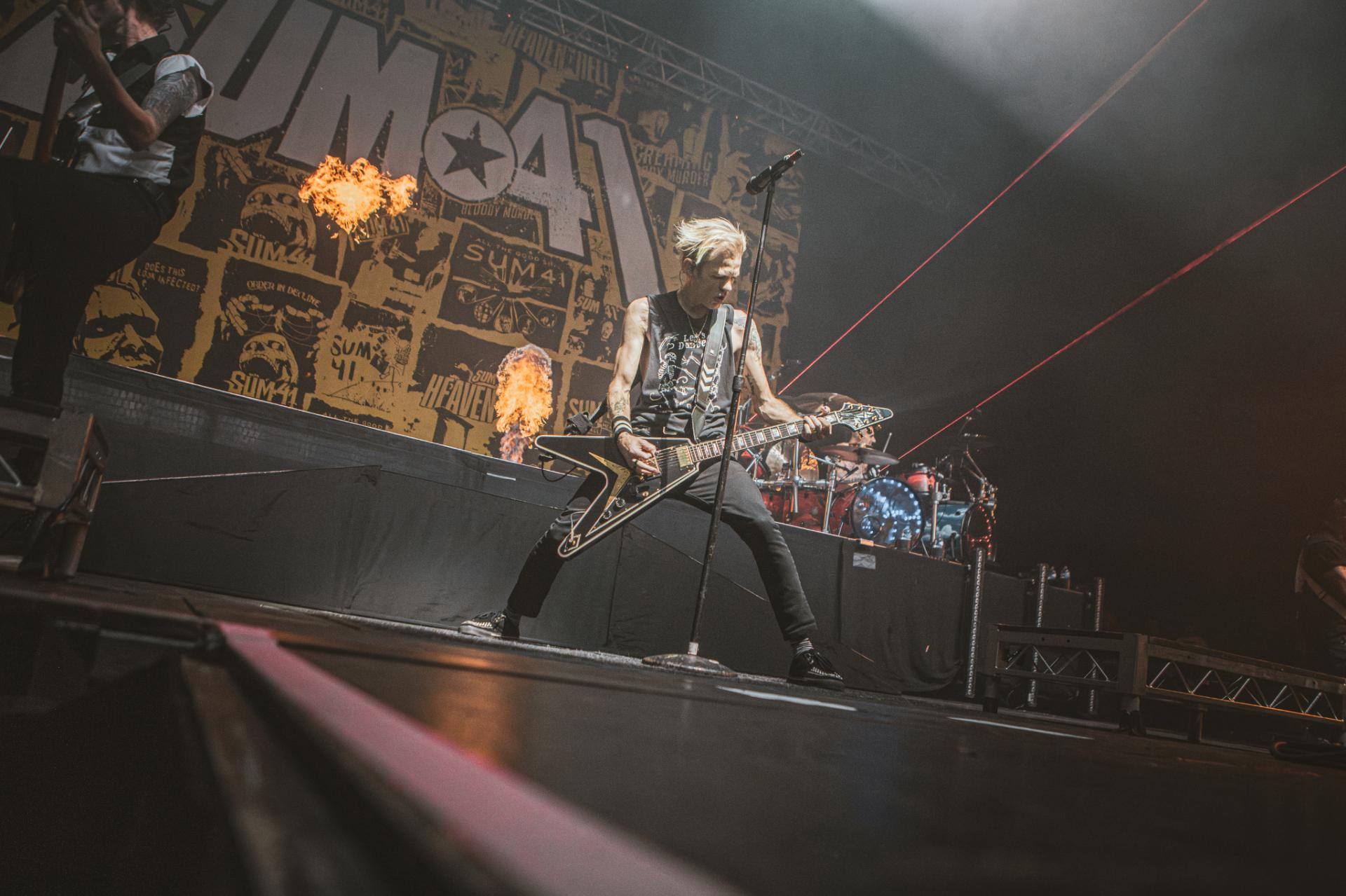 Nous arrivons sur la fin de cette journée de festival. Il est maintenant tant de laisser la place à la tête d’affiche de la journée, les légendes, SUM 41 ! Le groupe est actuellement dans une énorme tournée mondiale d’adieu qui arrive doucement à la fin. Nous aurons encore la chance de les voir dans nos contrées quelques fois, notamment aux Eurockéennes de Belfort le samedi 6 juillet ou encore à la Défense Arena le 23 novembre. Nous sentons alors que le public, qui pour beaucoup est la dernière chance de voir les canadiens sur scène, est présent à 200%. L’ambiance est incomparable aux groupes qui les ont précédés. Dès leur entrée nous avons le droit à une avalanche de tubes, Motivation, The Hell Song, Over My Head (Better Off Dead).