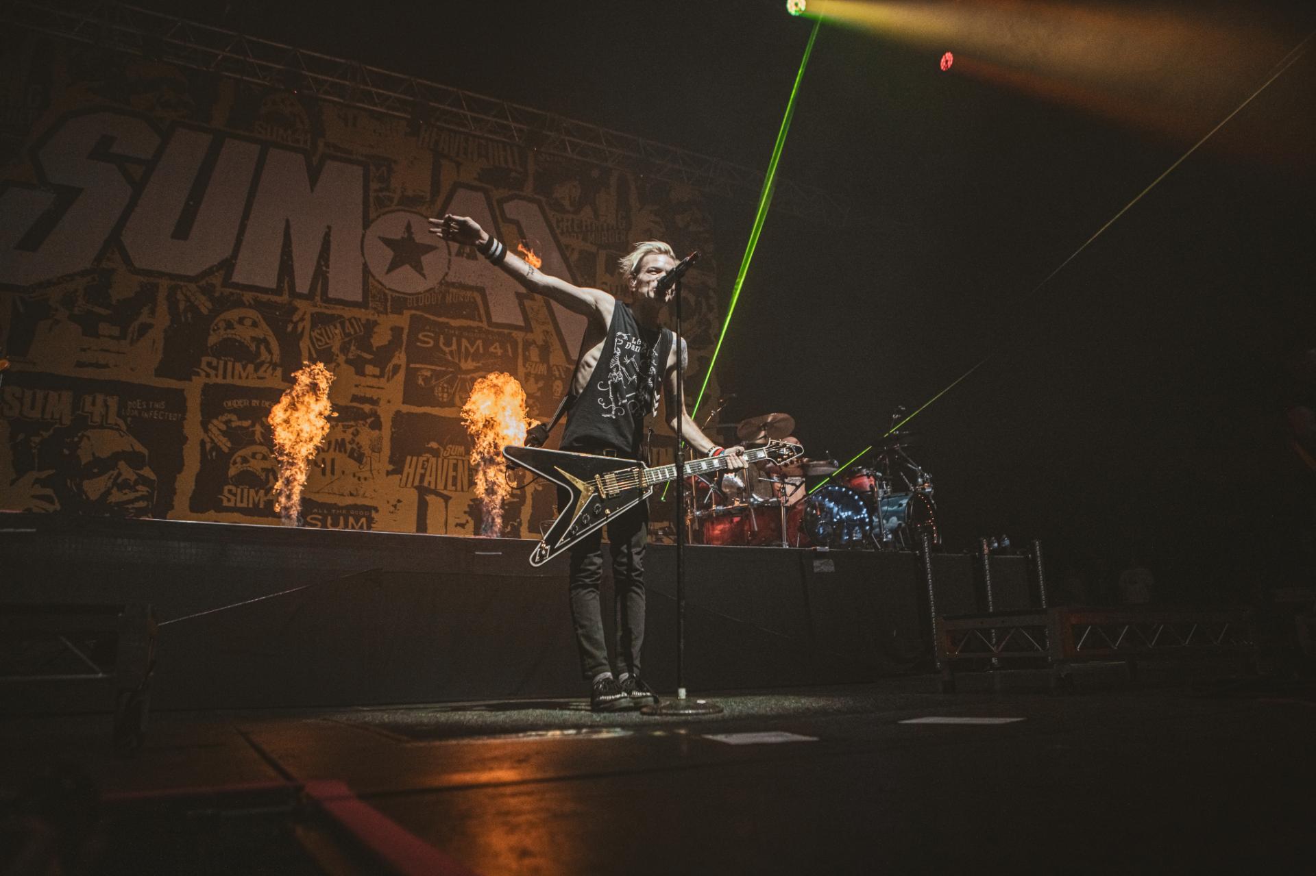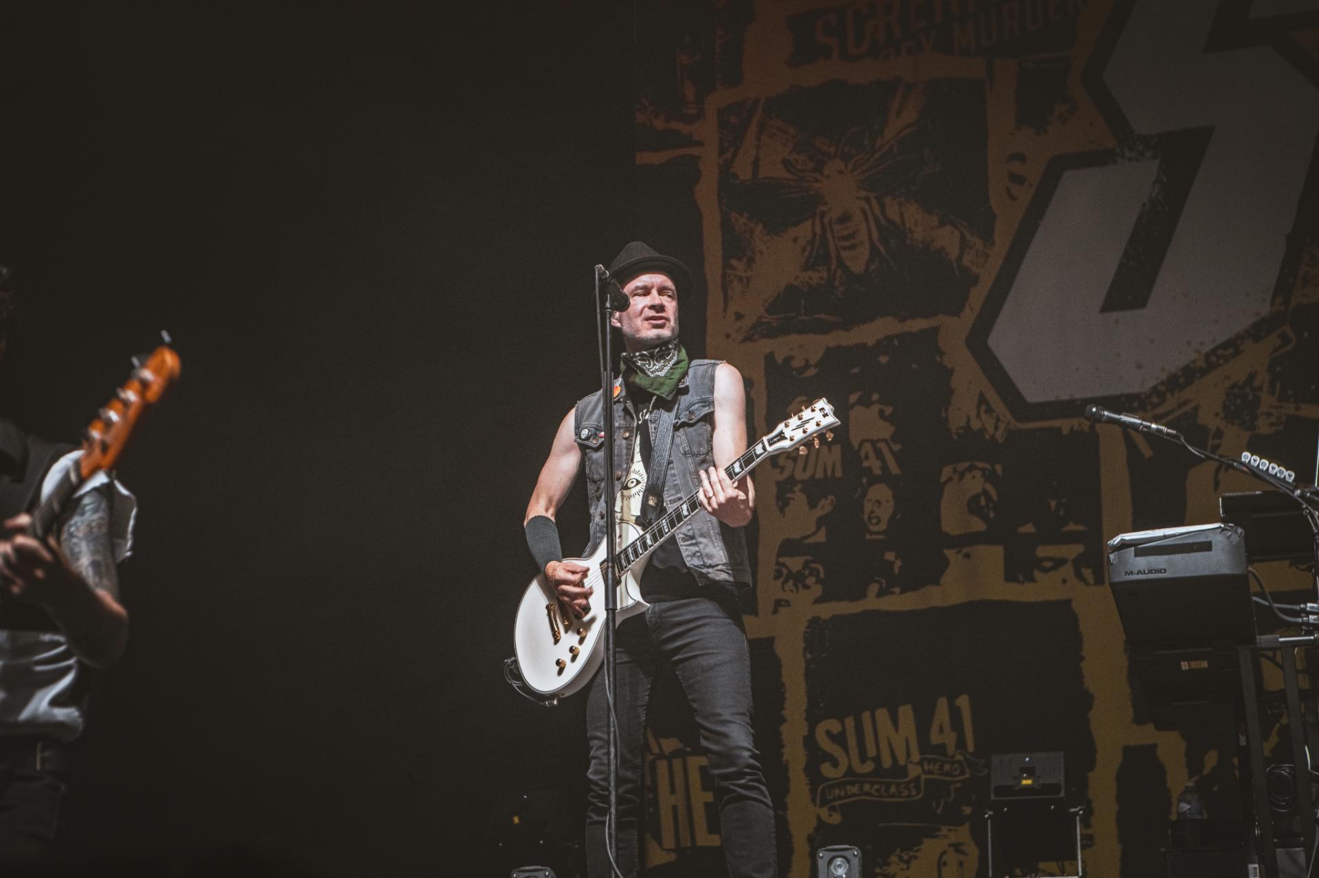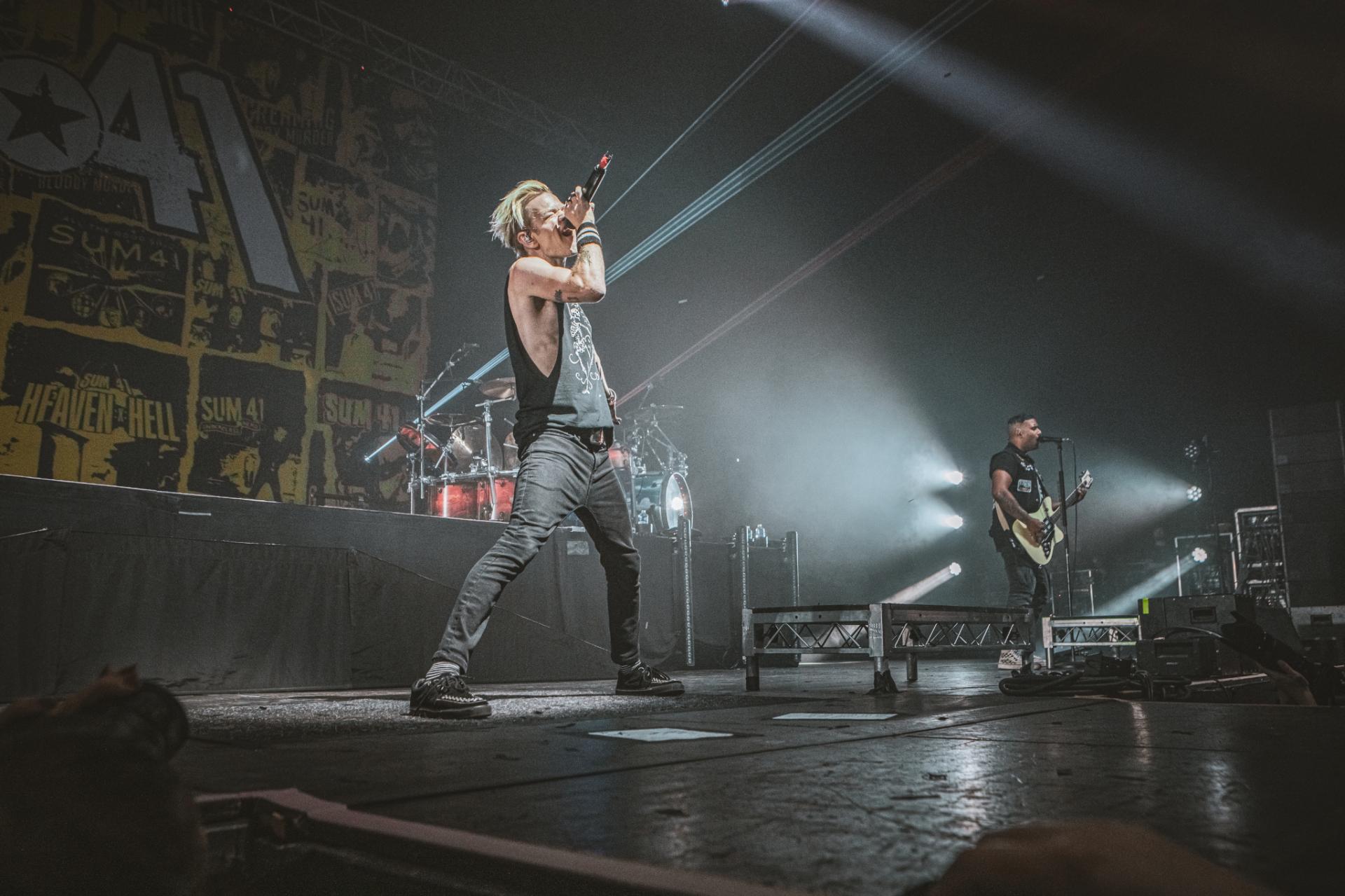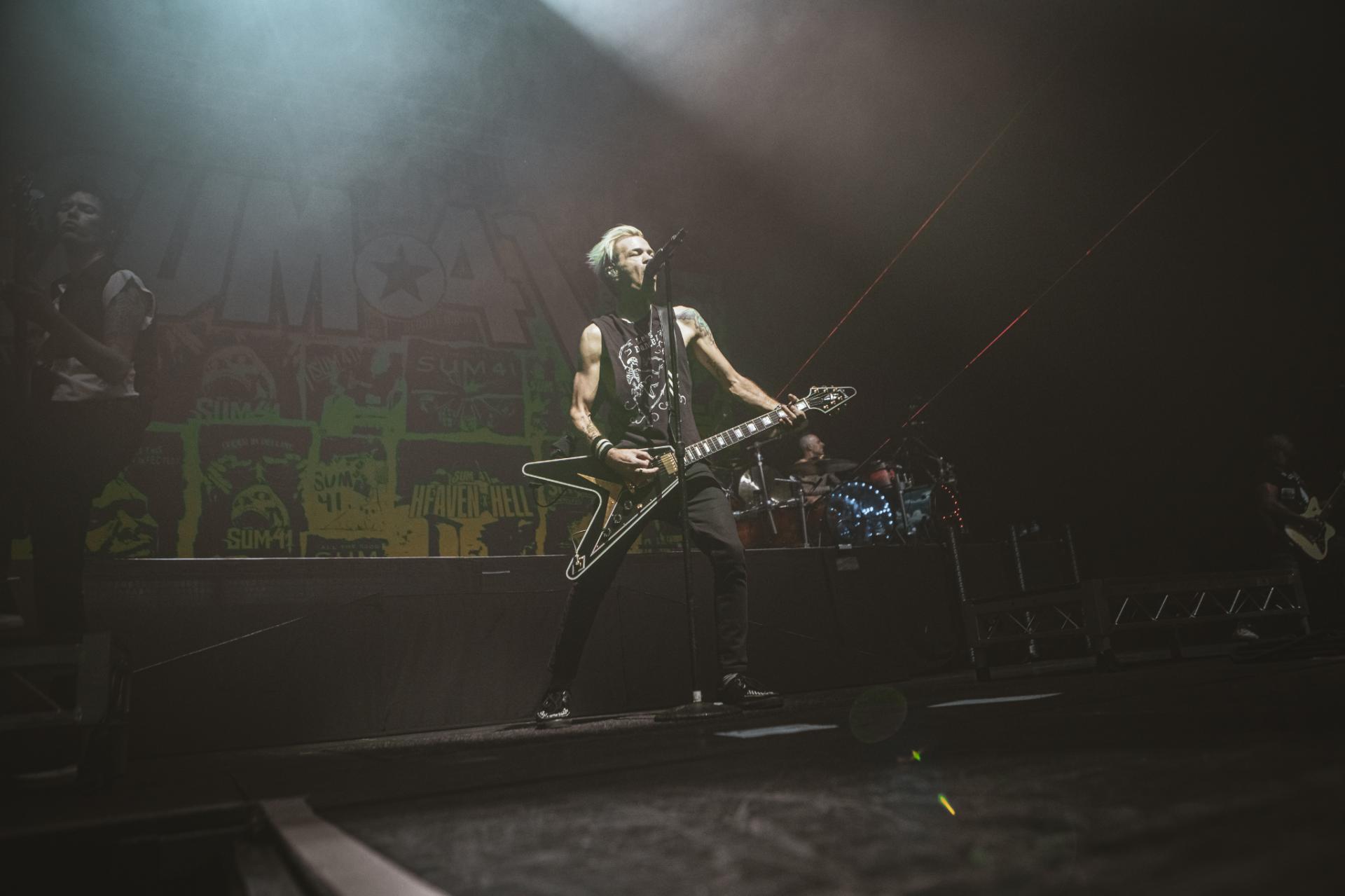 Nous arrivons sur la fin de cette journée de festival. Il est maintenant tant de laisser la place à la tête d’affiche de la journée, les légendes, SUM 41 ! Le groupe est actuellement dans une énorme tournée mondiale d’adieu qui arrive doucement à la fin. Nous aurons encore la chance de les voir dans nos contrées quelques fois, notamment aux Eurockéennes de Belfort le samedi 6 juillet ou encore à la Défense Arena le 23 novembre. Nous sentons alors que le public, qui pour beaucoup est la dernière chance de voir les canadiens sur scène, est présent à 200%. L’ambiance est incomparable aux groupes qui les ont précédés. Dès leur entrée nous avons le droit à une avalanche de tubes, Motivation, The Hell Song, Over My Head (Better Off Dead).