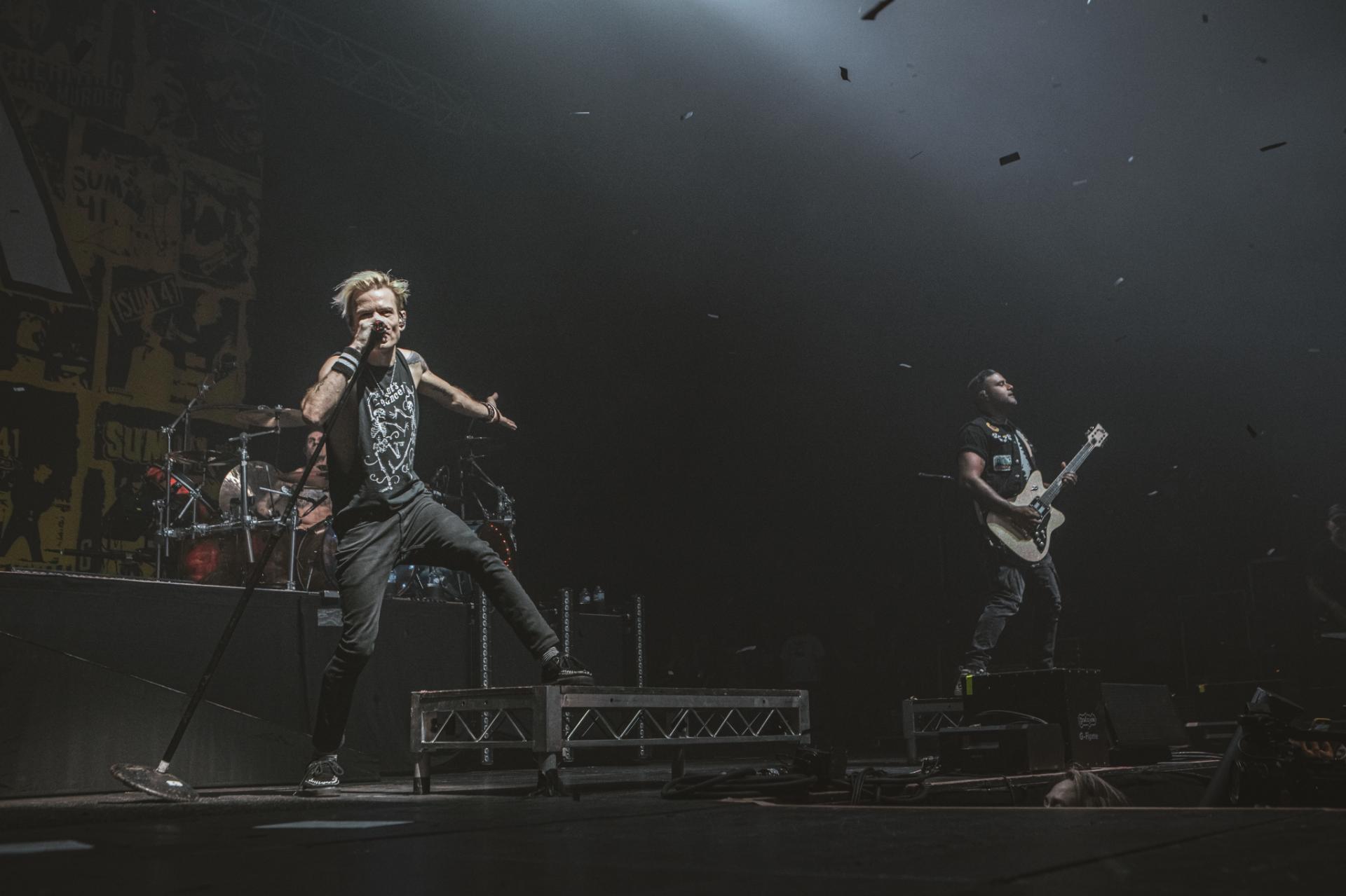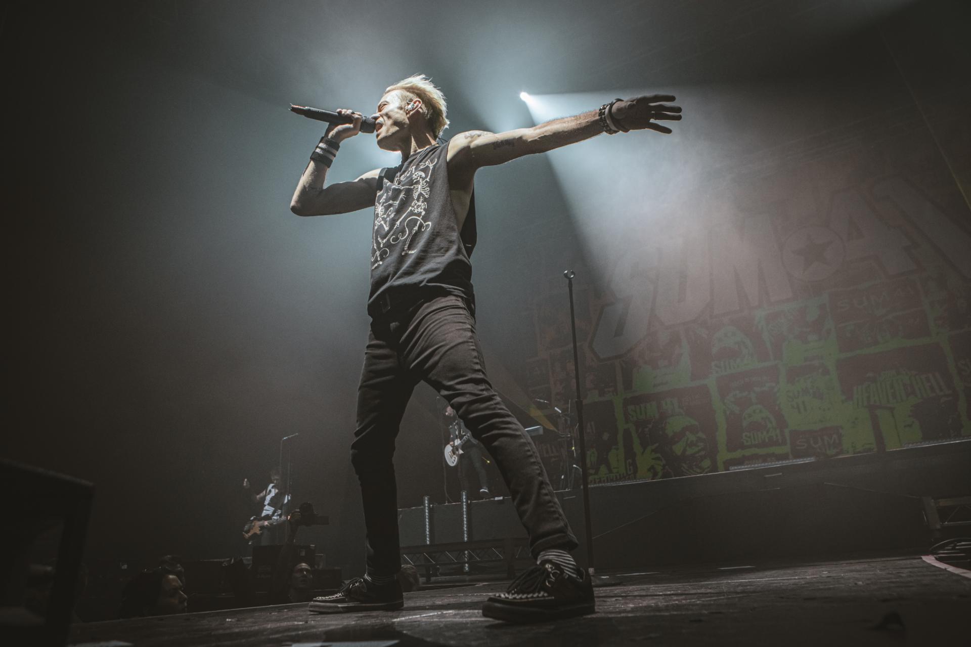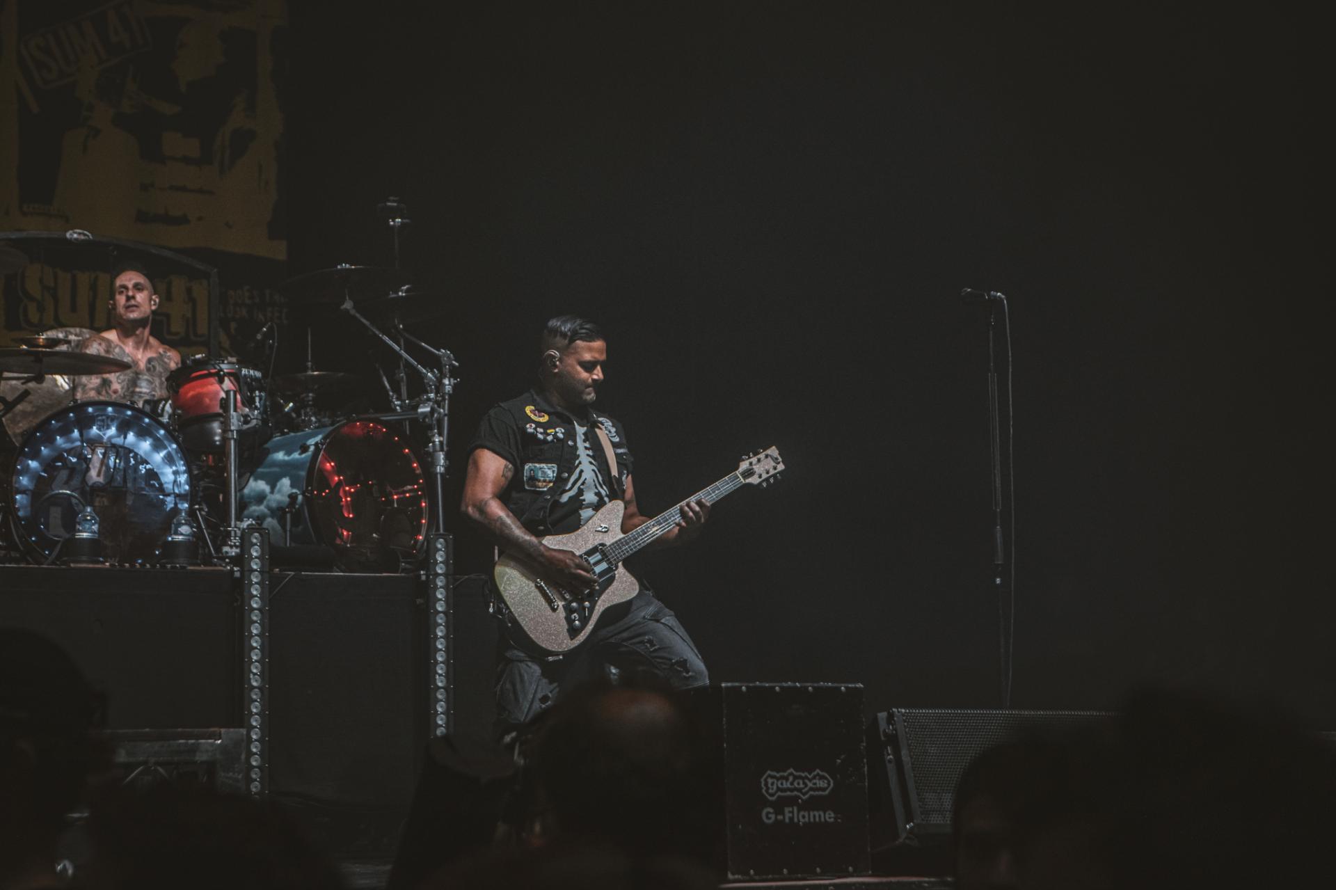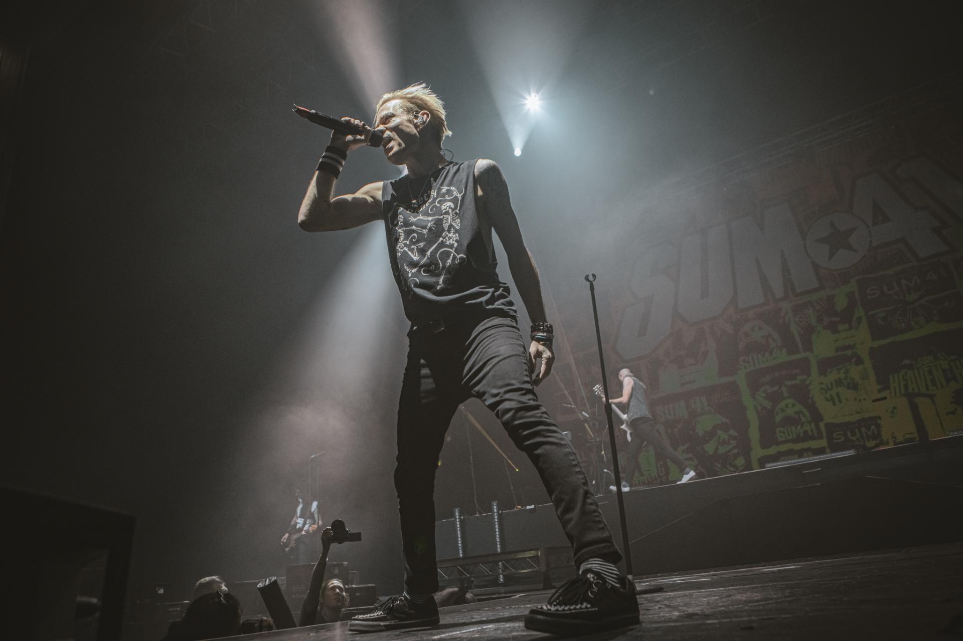 Nous arrivons sur la fin de cette journée de festival. Il est maintenant tant de laisser la place à la tête d’affiche de la journée, les légendes, SUM 41 ! Le groupe est actuellement dans une énorme tournée mondiale d’adieu qui arrive doucement à la fin. Nous aurons encore la chance de les voir dans nos contrées quelques fois, notamment aux Eurockéennes de Belfort le samedi 6 juillet ou encore à la Défense Arena le 23 novembre. Nous sentons alors que le public, qui pour beaucoup est la dernière chance de voir les canadiens sur scène, est présent à 200%. L’ambiance est incomparable aux groupes qui les ont précédés. Dès leur entrée nous avons le droit à une avalanche de tubes, Motivation, The Hell Song, Over My Head (Better Off Dead).