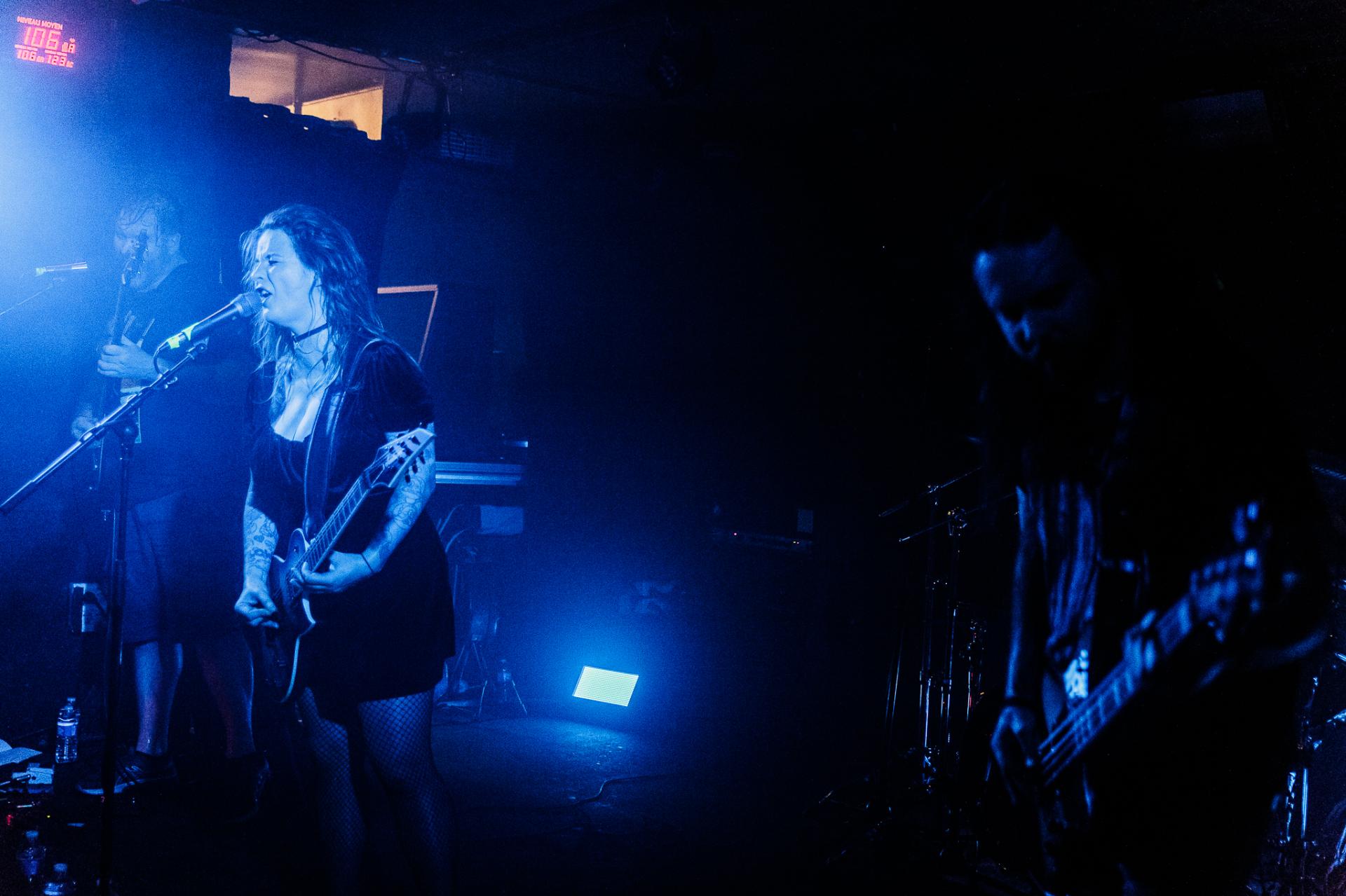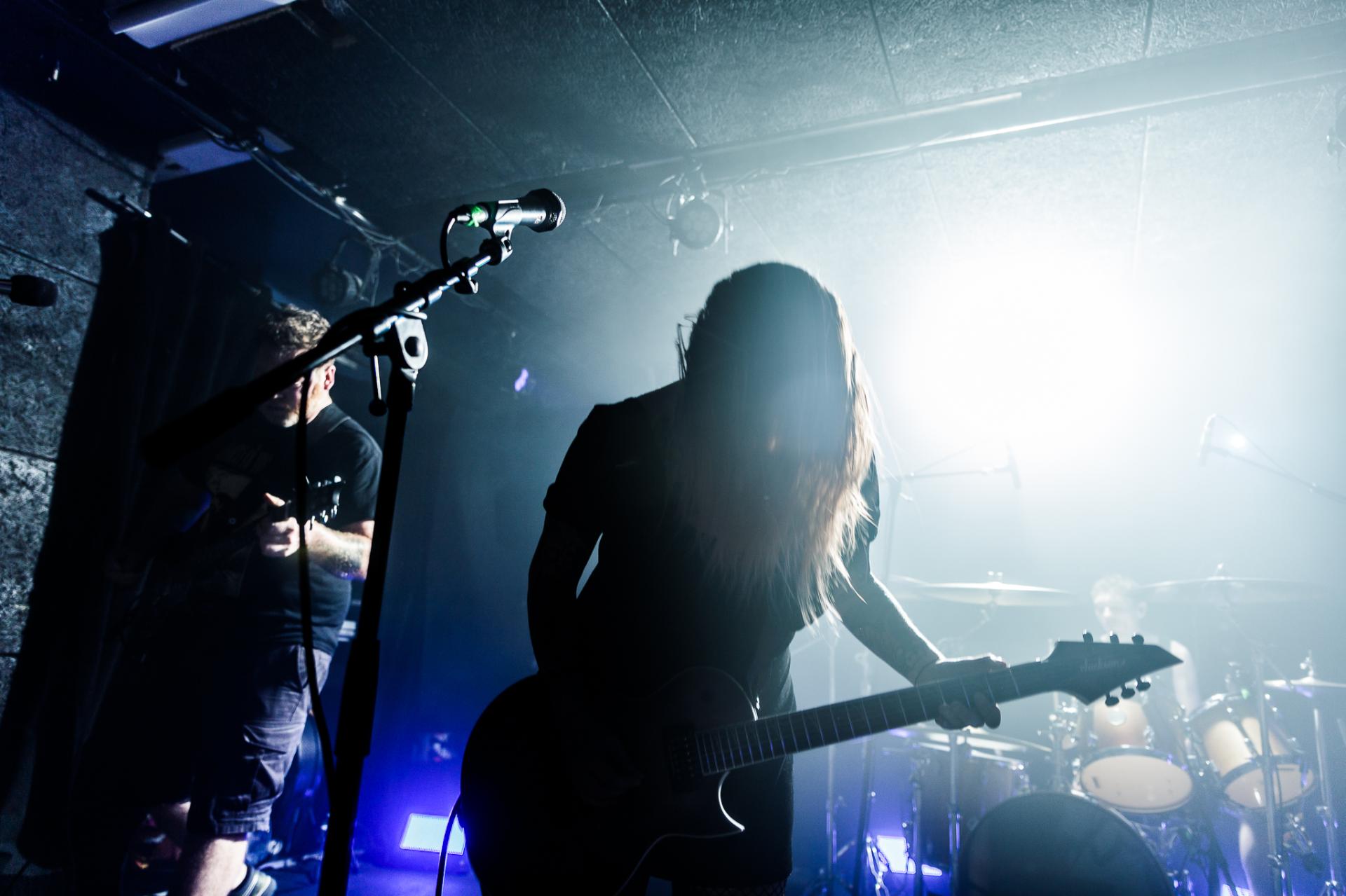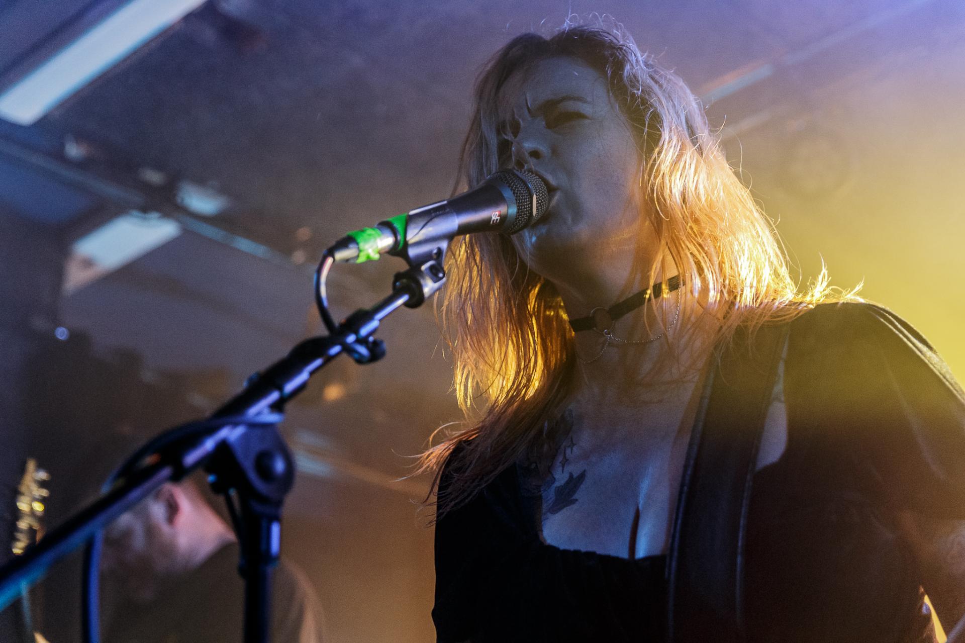 20h45, c’est déjà la tête d’affiche et SVALBARD ne tarde pas à se montrer sur scène sous l’acclamation du public du backstage. La taille de la scène permet toujours cette proximité avec les musiciens. Ceux-ci débutent leur set sur Open Wounds, l’une des pépites de l’album de 2020 When I Die, Will I Get Better ?. Le son en live est beaucoup plus prenant qu’en studio ce qui donne au morceau joué une plus-value. Même facture sur Disparity et ce sera comme ça tout le long du set. Puis vient le moment de présenter leur dernier album The Weight Of The Mask avec Faking It. On apprécie cette façon qu’à le groupe d’envoyer des riffs d’une grande vélocité avec le duo de scream de Serena Cherry et Liam Phelan, tout deux au chant et à la guitare, et de souffler sur des moments de chant clair de Serena, des passages qui nous transportent.
