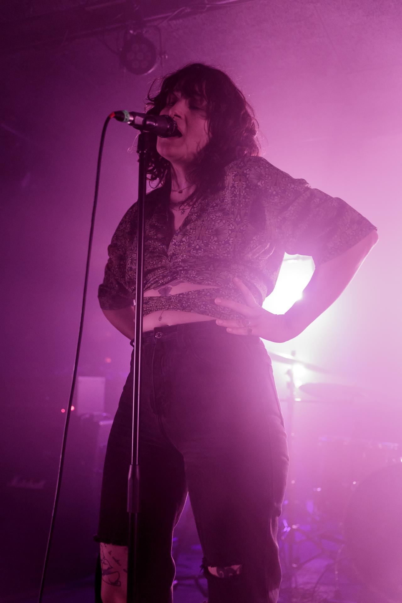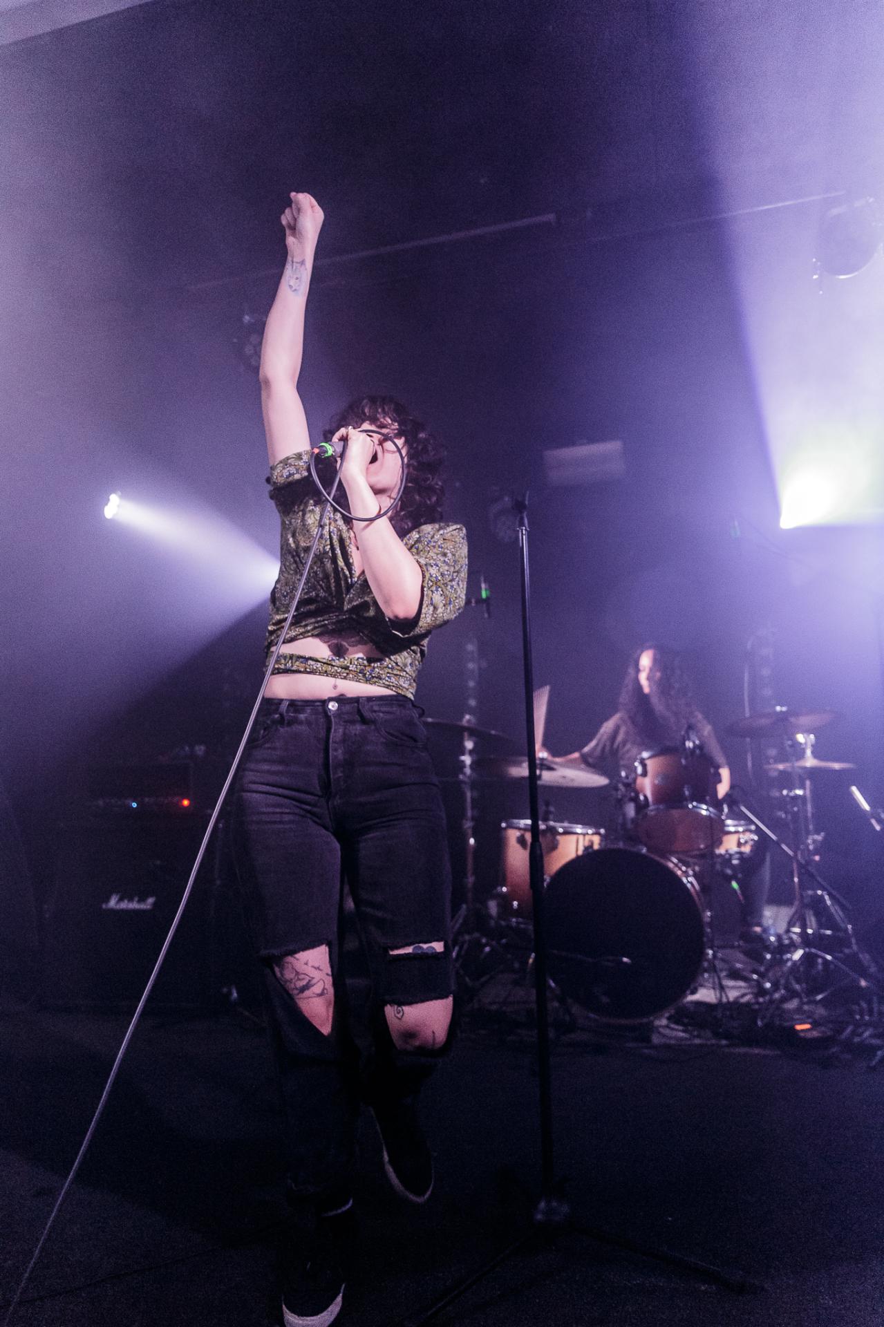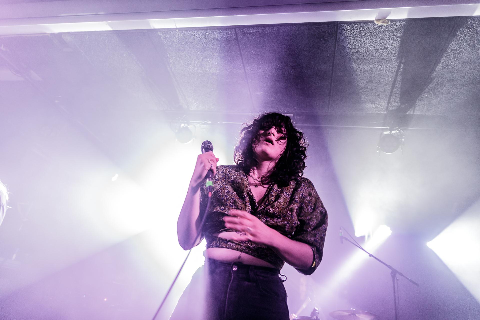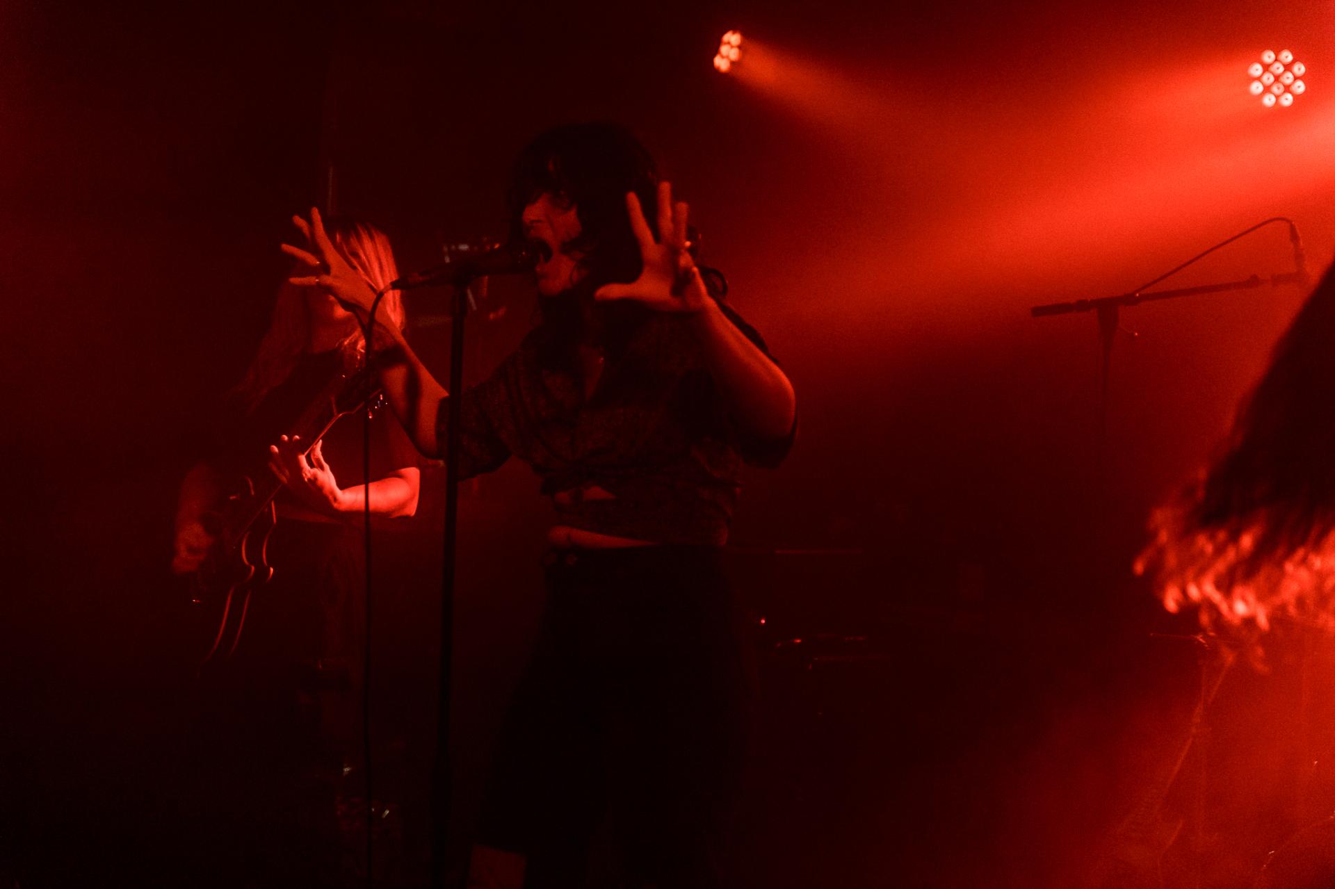 20h45, c’est déjà la tête d’affiche et SVALBARD ne tarde pas à se montrer sur scène sous l’acclamation du public du backstage. La taille de la scène permet toujours cette proximité avec les musiciens. Ceux-ci débutent leur set sur Open Wounds, l’une des pépites de l’album de 2020 When I Die, Will I Get Better ?. Le son en live est beaucoup plus prenant qu’en studio ce qui donne au morceau joué une plus-value. Même facture sur Disparity et ce sera comme ça tout le long du set. Puis vient le moment de présenter leur dernier album The Weight Of The Mask avec Faking It. On apprécie cette façon qu’à le groupe d’envoyer des riffs d’une grande vélocité avec le duo de scream de Serena Cherry et Liam Phelan, tout deux au chant et à la guitare, et de souffler sur des moments de chant clair de Serena, des passages qui nous transportent.