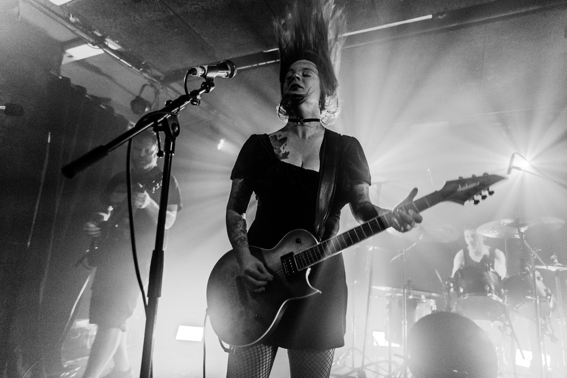 Juste avant de continuer sur le quatrième morceau, Throw Your Heart Away, Serena se remémorera leurs prestations salués au Hellfest cette année et estimera que c’est le meilleur festival du monde mais c’est surtout cette ferveur qu’à susciter le groupe qui est à prendre en considération car cette ovation était méritée. Puis le show se poursuit avec d’autres perles telles que Lights Out, The Currency of Beauty et Click Bait. Difficile de dire quelle chanson est moins bonne que l’autre, tout est prenant, donnant envie d’headbanger frénétiquement. Le temps de réajuster ses accordements, Serena prendra le temps pour nous remercier d’être venu et semble vraiment ravis d’un tel engouement pour SVALBARD, de saluer l’orga et les équipes qui permettent la bonne tenue de ce concert. Après un dernier extrait du dernier album avec To Wilt Beneath the Weight, SVALBARD ressort un de leur plus vieux titre de leurs début, Grayscale. Enfin, après quelques derniers remerciements, le groupe termine en beauté sur Eternal Spirits.