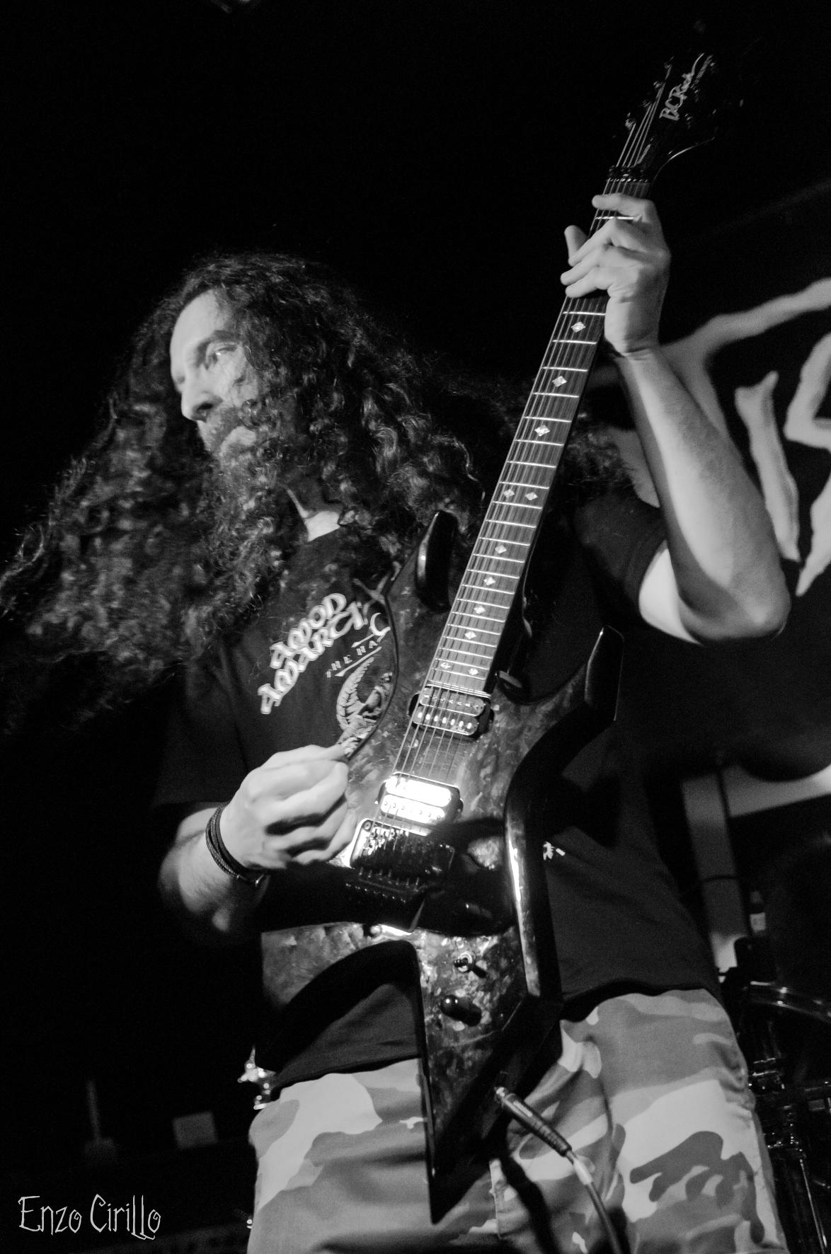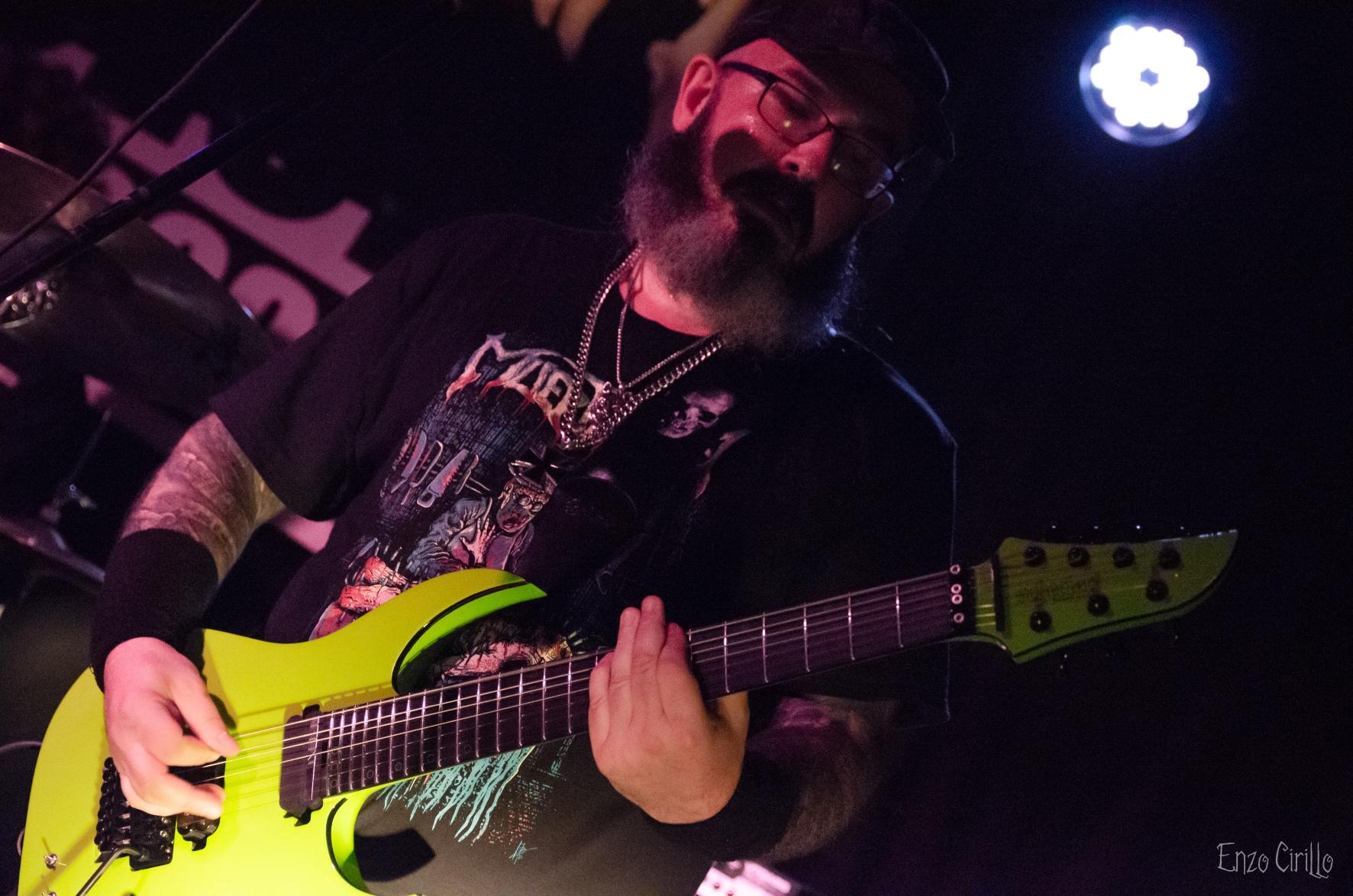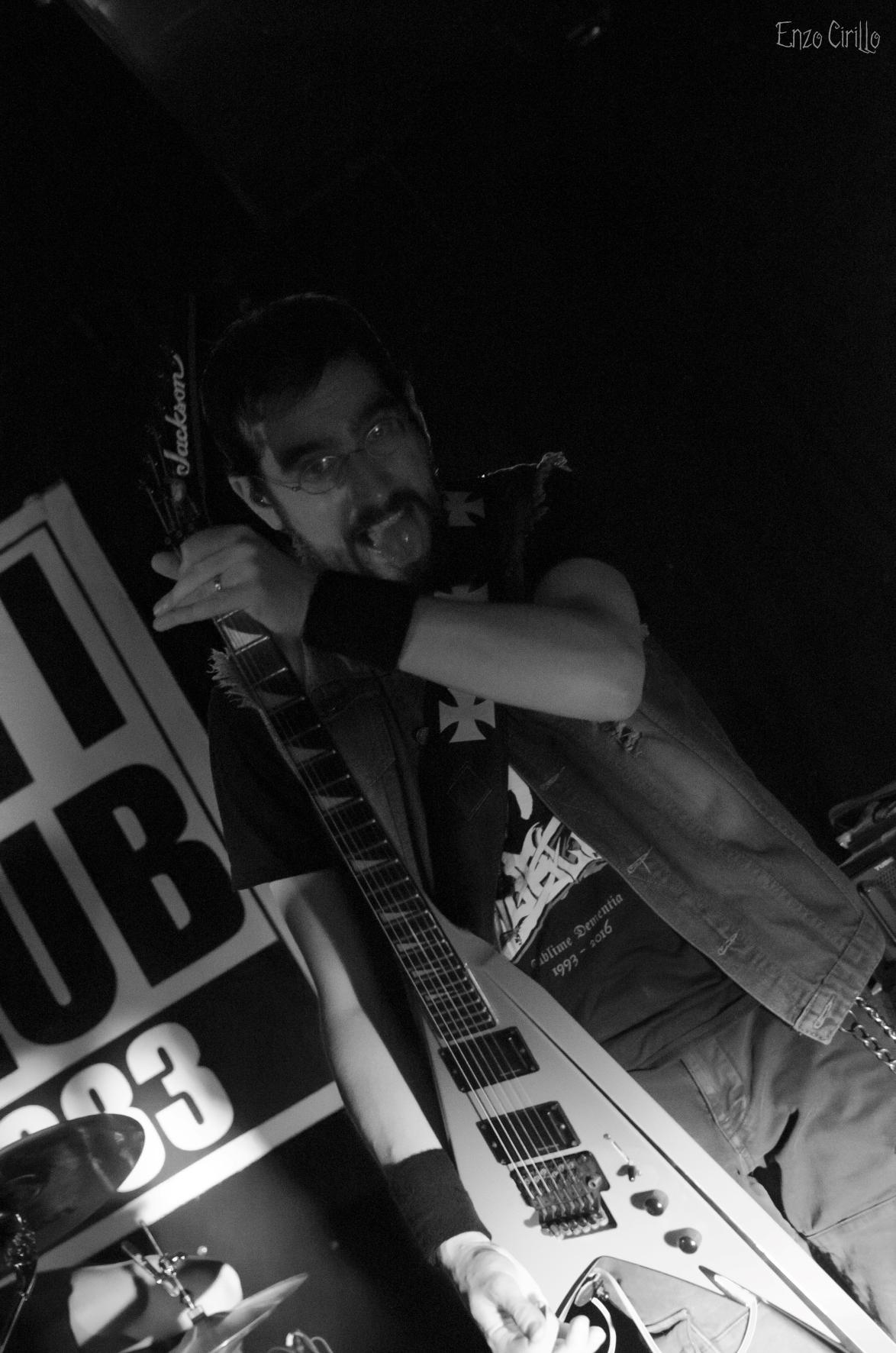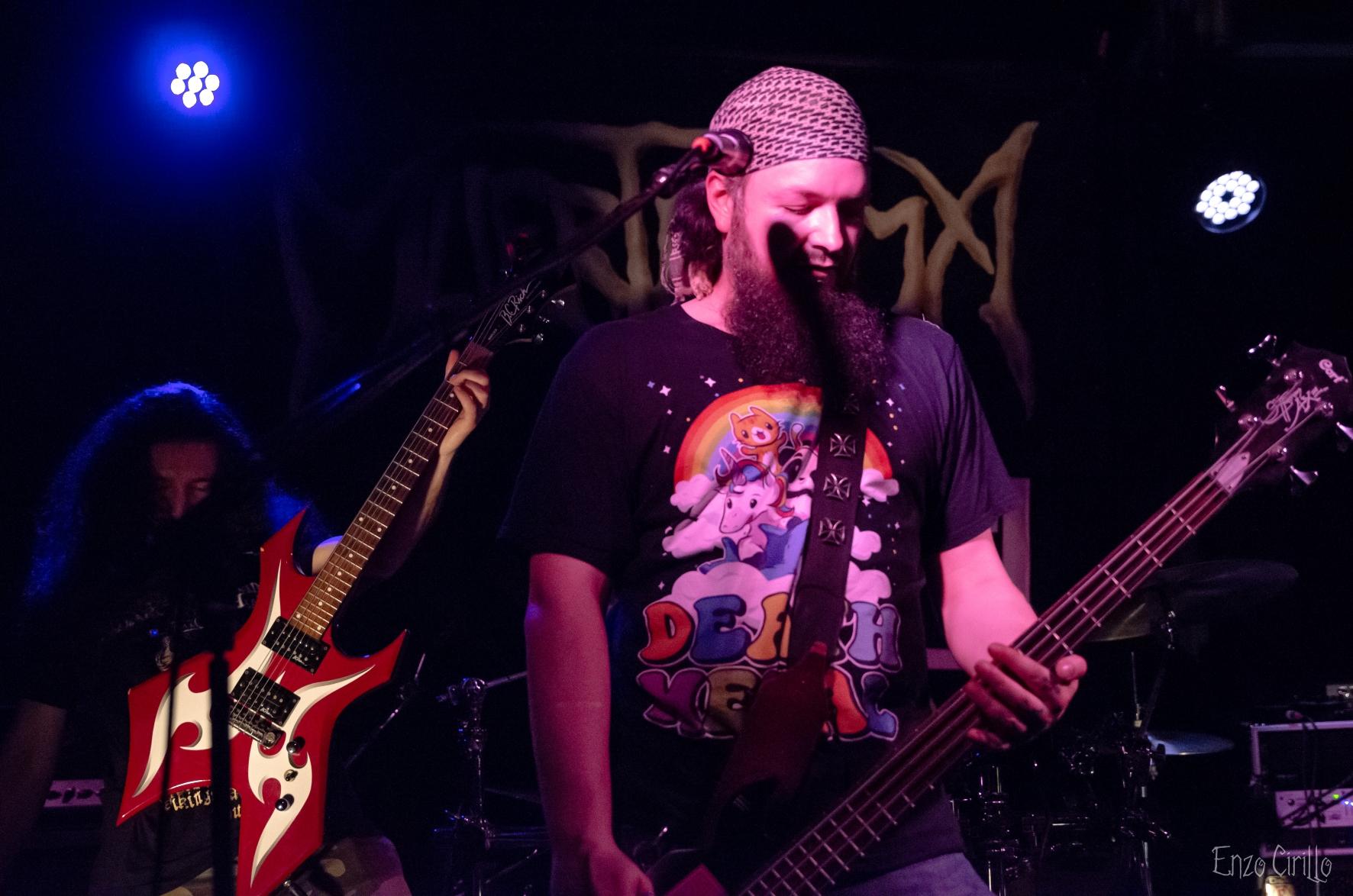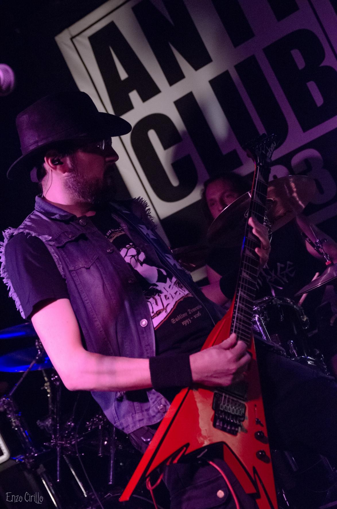 C'est MUERTISSIMA, groupe de death metal aux sonorités old school, qui a donné le coup d'envoi. Dans l'intimité de la salle, les riffs percutants de Steph et Val, les growls déchirants de Simon qui ont résonné avec une force dévastatrice tout en matraquant sa basse en forme de hache, le tout dirigé d’une main de maître par les blast surpuissants de L’aveugle leurs batteur fou qui se paie le luxe de jouer les yeux bander pendant tout le set ! Les fans présents se sont laissé emporter par l'énergie brute de titres tels que Cerveza et Inquisition, créant une ambiance infernale malgré le nombre restreint de participants et les quelques problèmes technique qui n’ont absolument pas empêché de créer une ambiance survoltée malgré un publique légèrement timide au début de la soirée mais qui s’est très vite lâché.