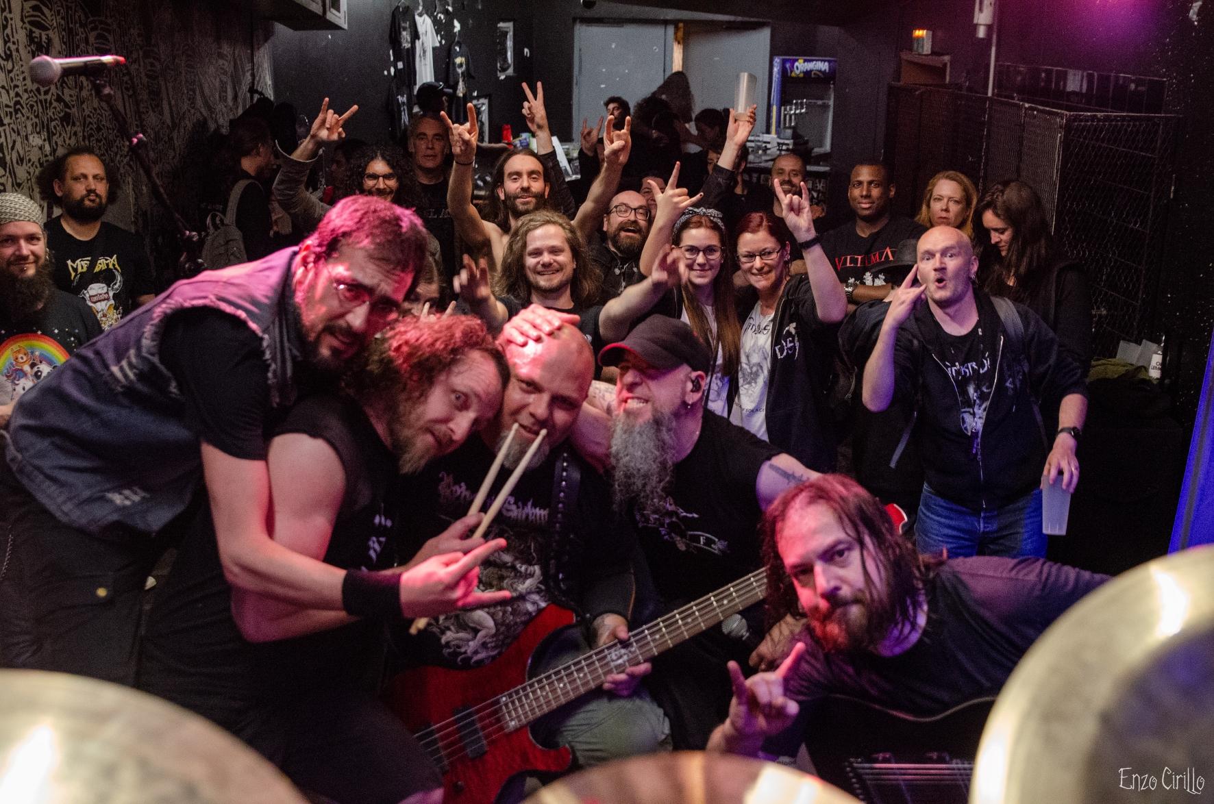 Enfin, TANKRUST, la formation locale de thrash/death, a clôturé la soirée en beauté. Malgré la situation, le groupe n'a pas ménagé ses efforts pour offrir une performance survoltée et sans compromis. Les riffs acérés et les solos endiablés assurés par Matt et JP ont résonné avec une fureur contagieuse accompagnés de la voix si singulière et caverneuse de Kootoh, faisant oublier les contraintes de la petite salle. Les fans, totalement investis, ont chanté à tue-tête (surtout moi) les refrains de For The Greater Good et Cleaver, faisant du Cirque Électrique un véritable champ de bataille sonore, à tel point que pendant le morceau Cleaver, Kootoh me tendit son micro pour me faire l’honneur de pouvoir hurler le "we stand for !!!" du refrain de ce morceau qui a fait la renommée du groupe.