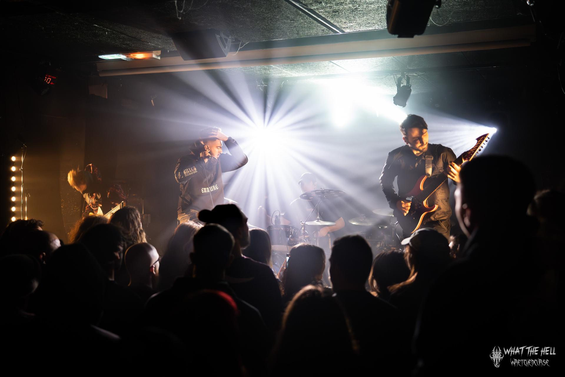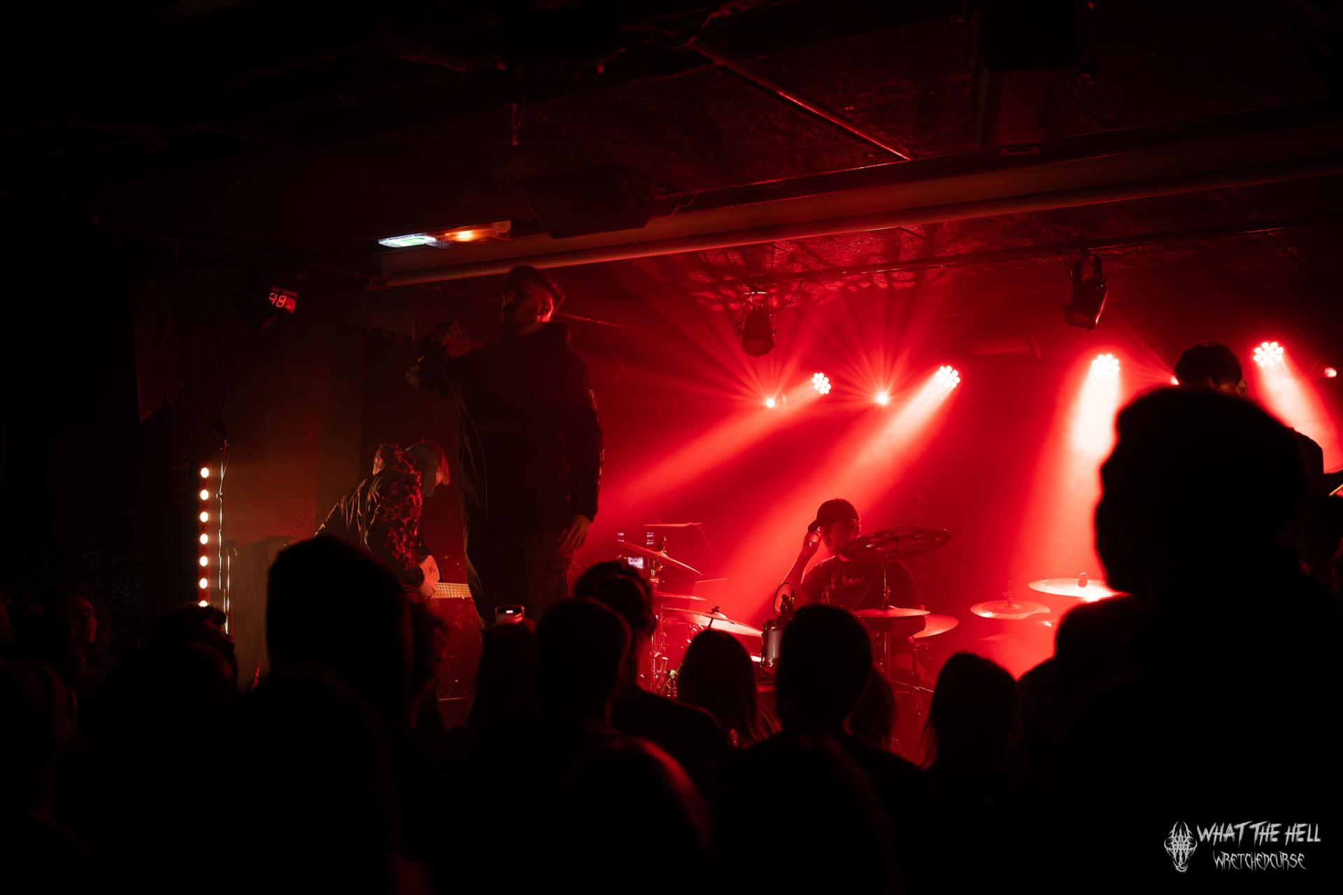Alors que la foule se bouscule encore à l'entrée de la salle, la soirée commence avec l'entrée en scène du groupe local NDKH. Fondés en 2018 et ayant déjà parcourus quelques scènes, ils viennent défendre leur deathcore progressif agrémenté d'une bonne dose de djent, notamment grâce à leur dernier single Let It Die. Les échanges avec le public restent très brefs et très bruts, à l'image de leur son, mais la prestation est énergique, efficace. Le groupe enchaîne les morceaux et incite le public à tout casser. Le concert commence à peine que le mosh pit est déjà lancé !