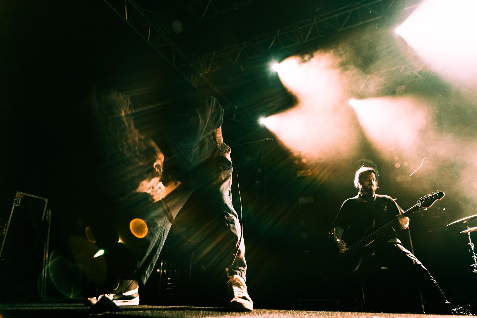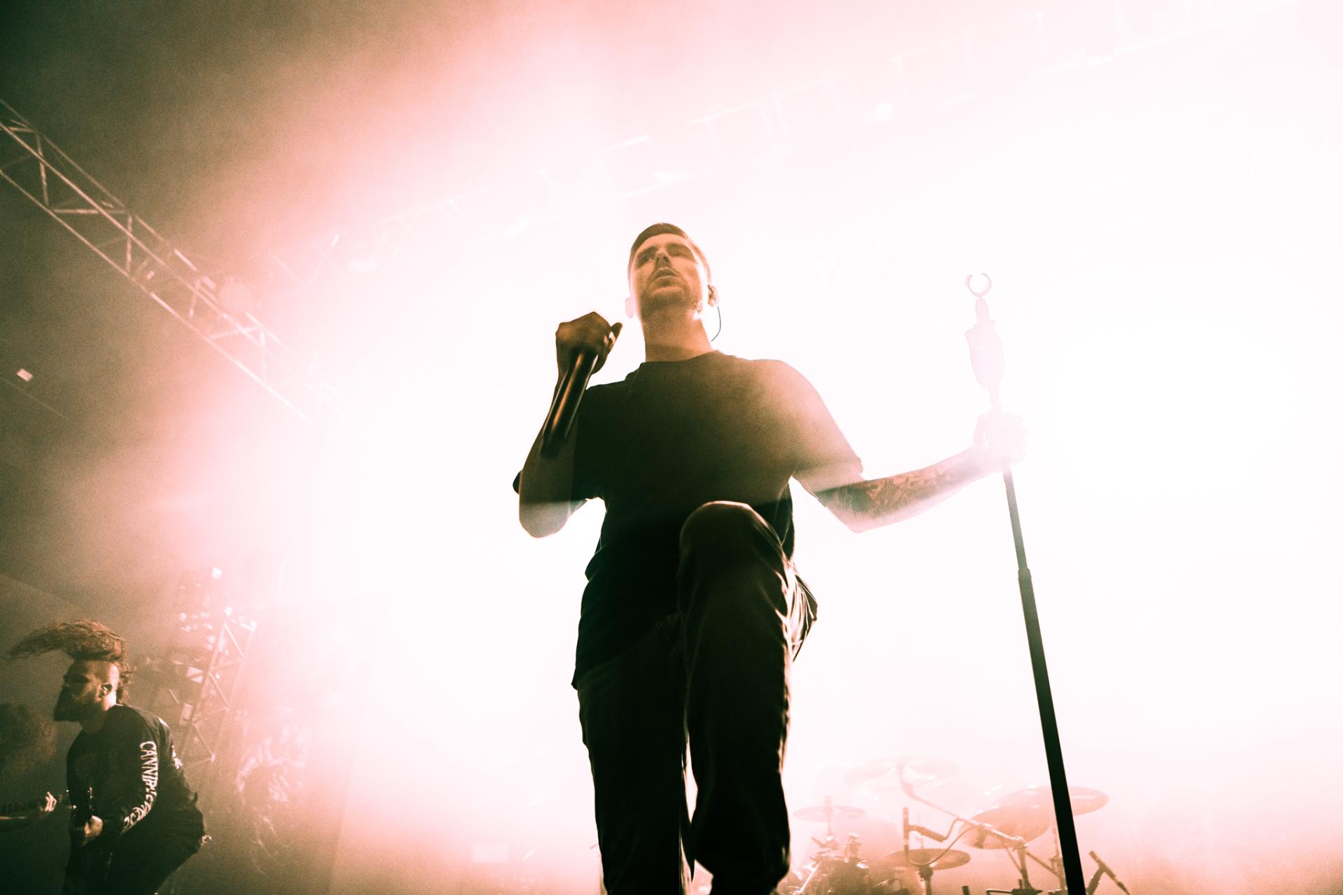 C’est aux californiens de SPITE d’ouvrir le bal. On sait à quel point il peut être difficile pour un groupe d’ouvrir en première partie, mais SPITE n’a rien à envier par rapport aux autres artistes de la soirée. Le groupe nous propose un set efficace, et met tout le monde d’accord dès leur premier morceau Made to Please. Les frères Tehrani respirent la folie sur scène. Le chanteur, Darius, bouge de façon aléatoire, saute partout, ce qui renforce cette impression de folie. Une chorégraphie également adoptée par son frère, Alex à la guitare. À la fin du set, le groupe joue Thank You, Again dernier single en date. La version studio est enregistrée avec en feat nul autre que Phil Bozeman, leader de WHITECHAPEL avec qui le groupe partage l’affiche aujourd’hui. Le set se clôture sur Kill Or Be Killed. C’est avec un public chauffé à blanc que le groupe nous quitte, ayant rempli son rôle à merveille.