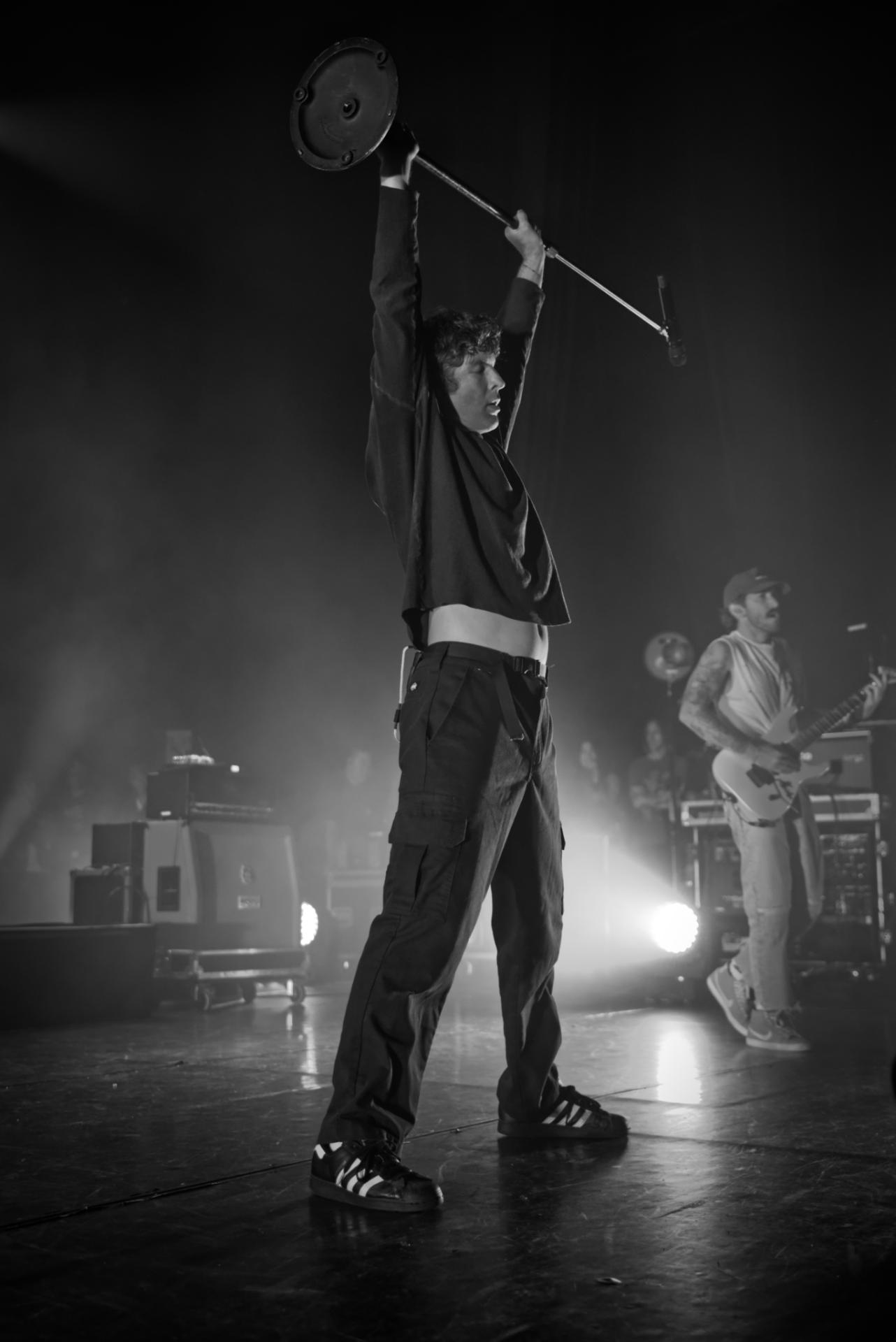 Peu après 21h, TURNSTILE a pris d'assaut la scène de l'Olympia avec une entrée triomphale, démarrant avec T.L.C. (Turnstile Love Connection) qui a immédiatement mis le feu à la fosse. La fusion unique de groove et de hardcore du groupe a captivé le public, qui a dansé et chanté tout au long du set. Les morceaux de leurs albums récents, notamment Glow On et Time & Space, ont fait vibrer la salle avec une intensité incroyable. Le chanteur Brendan Yates a particulièrement brillé, captivant le public avec sa présence scénique impressionnante. Le concert s'est conclu en apothéose avec MYSTERY et HOLIDAY, laissant le public euphorique et comblé.
