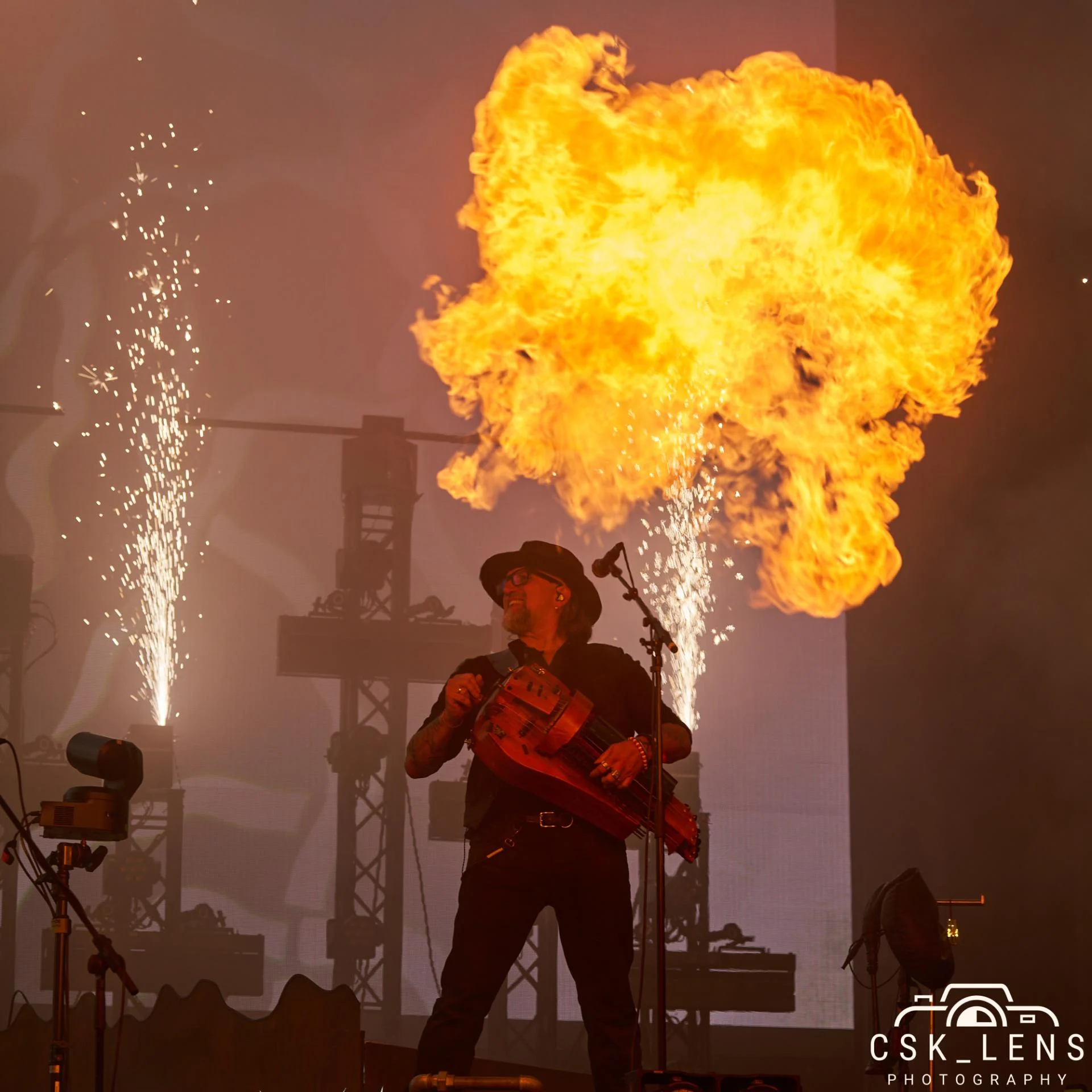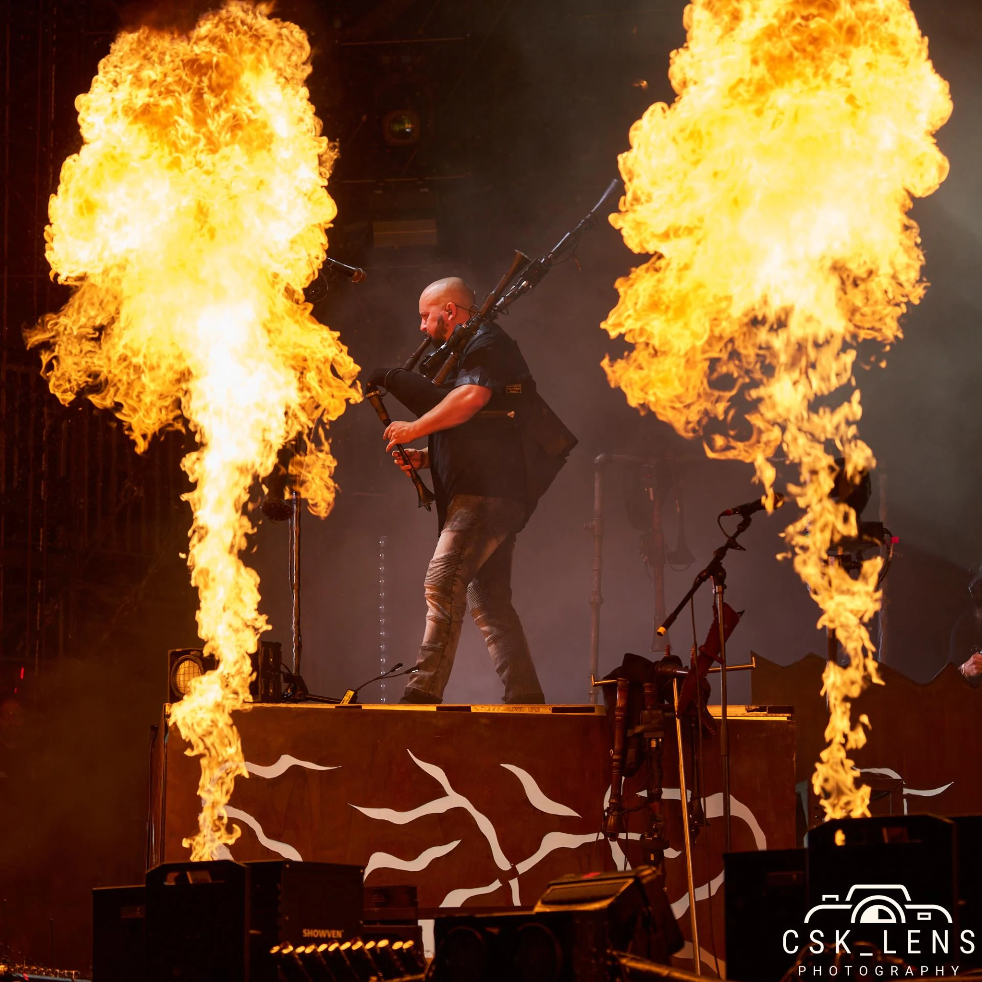 Pour clore la journée sur les scènes principales, SALTATIO MORTIS avait littéralement enflammé la boue grâce à des effets pyrotechniques spectaculaires. Leur énergie, leurs instruments traditionnels et leur esprit festif avaient suffi à faire oublier la pluie le temps d’1h30. La surprise de taille fut l’arrivée de Tina Gio pour interpréter Feuer & Erz. Avec une setlist généreuse d’une vingtaine de morceaux, le groupe avait offert un final à la hauteur de sa réputation. Ce premier jour de Wacken 2025 incarnait à lui seul l’âme du festival : affronter ensemble la tempête, garder le sourire et vibrer au son des guitares, quoi qu’il arrive.