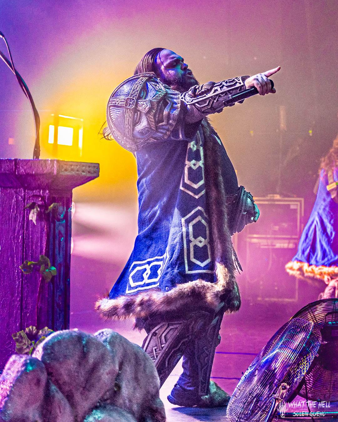 Vint enfin le moment tant attendu : l’arrivée des nains de WIND ROSE sur les planches du Bataclan, avec une scénographie d’inspiration "tolkienienne", si bien que la Terre du Milieu ne semble pas si loin. La batterie repose à côté d’une sorte de tête cornue dont les yeux s’allument, puis les membres du groupe arrivent, conquérants et prêts à en découdre. Les premiers riffs de Dance of the Axes sonnent comme un coup de tonnerre et la ferveur s’empare aussitôt du pit, brandissant frénétiquement les haches et les pioches. On assiste à une véritable liesse alors que le chanteur Francesco Cavalieri, armure rutilante et barbe plus disciplinée que jamais, harangue la foule tel un capitaine.