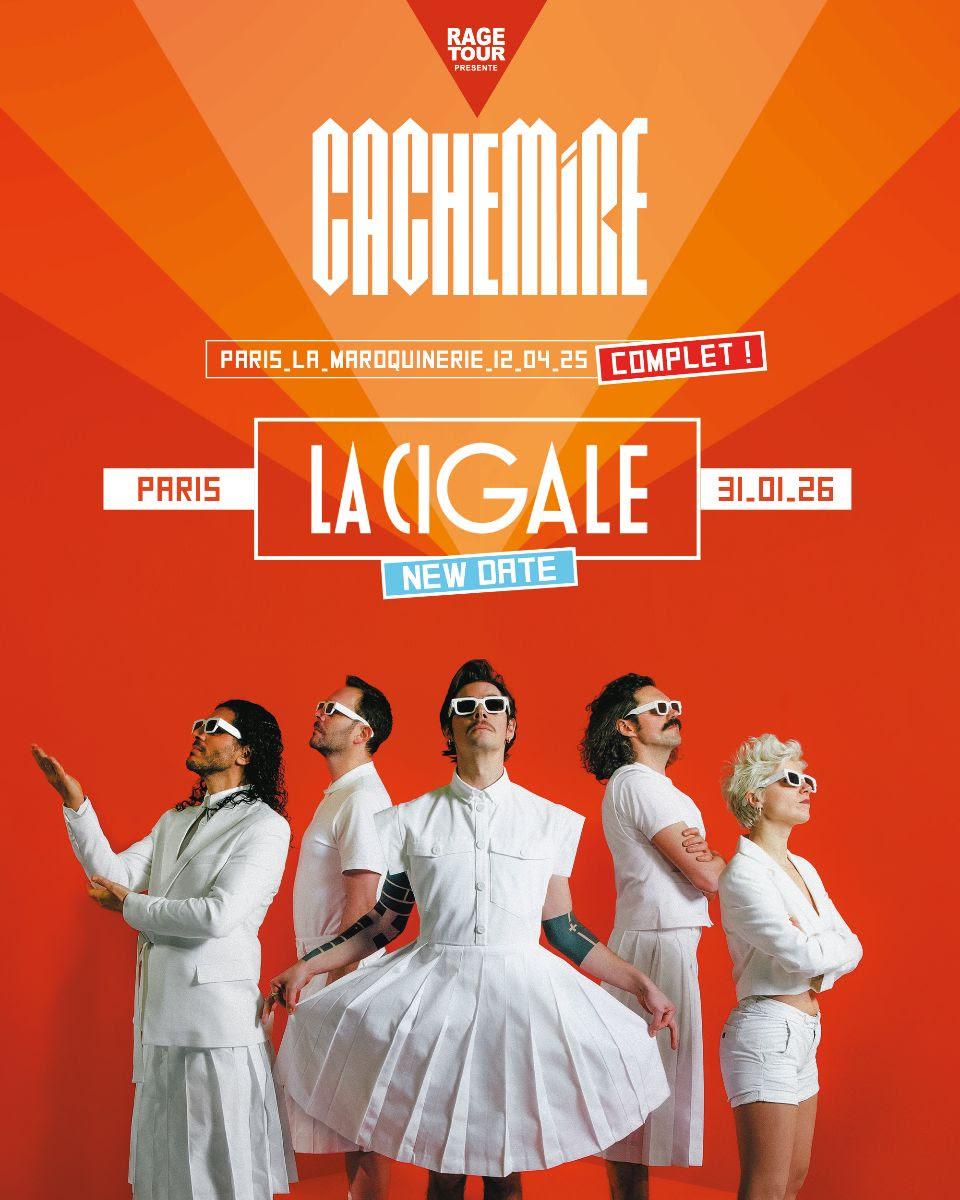 Outre une soirée intimiste (d'ores et déjà sold-out) à la Maroquinerie qui aura lieu en avril prochain, CACHEMIRE annonce un nouveau rendez-vous parisien pour célébrer la sortie de son quatrième album : La Cigale le 31 Janvier 2026. Un concert d’anthologie en vue pour les nantais réputés pour leur son percutant, rassembleur et taillé à la serpe. CACHEMIRE, c'est 10 ans de rock français dans les guitares et les guiboles mais surtout sur scène !