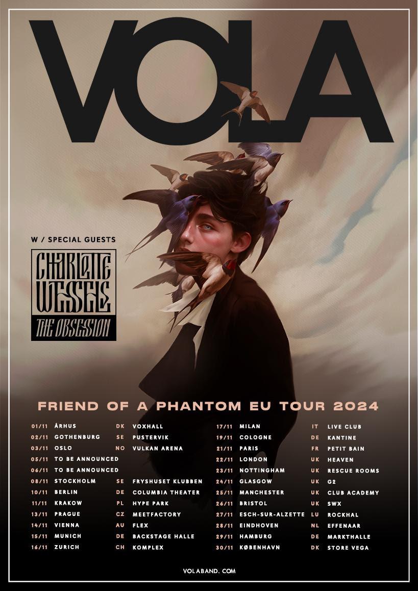 Soutenue par ses anciens collègues de DELAIN, qui contribuent au son plus lourd de l'album, CHARLOTTE WESSELS s'apprête à présenter The Obsession sur scène cette année. Le voyage commencera par un concert de lancement le 4 octobre 2024 au TivoliVredenburg d'Utrecht, suivi d'une apparition en tant qu'invitée spéciale aux côtés de ses collègues de label KAMELOT et AD INFINITUM à Drachten le 11 octobre 2024. Après ces concerts, WESSELS rejoindra VOLA pour la tournée Friend of Phantom EU Tour 2024, qui débutera le 1er novembre.