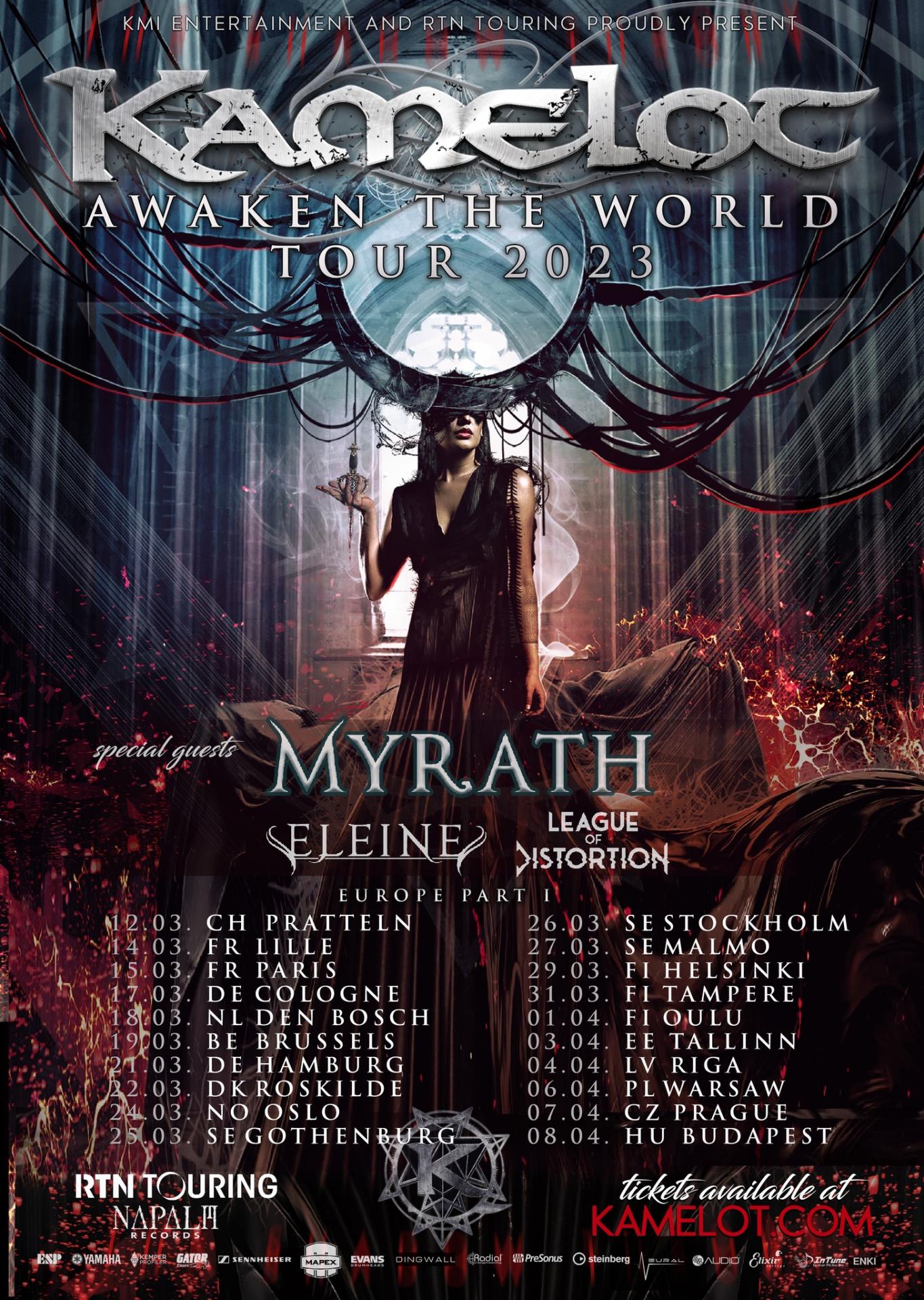 KAMELOT sera en tournée en 2023 pour défendre The Awakening : Awaken The World Tour en Europe, partie 1 avec les supports de MYRATH, ELEINE et LEAGUE OF DISTORTION :