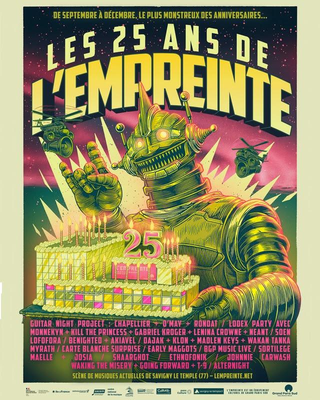 Pour ses 25 ans, l’Empreinte fera la part belle à son style de prédilection en naviguant dans tous les styles de metal et surtout en accueillant des groupes jamais passés par la mythique scène de Savigny le Temple : BENIGHTED, MYRATH, SORTILÈGE, SOEN, SHAÂRGHOT et d’autres surprises viendront compléter cette programmation éclectique de passionnés !