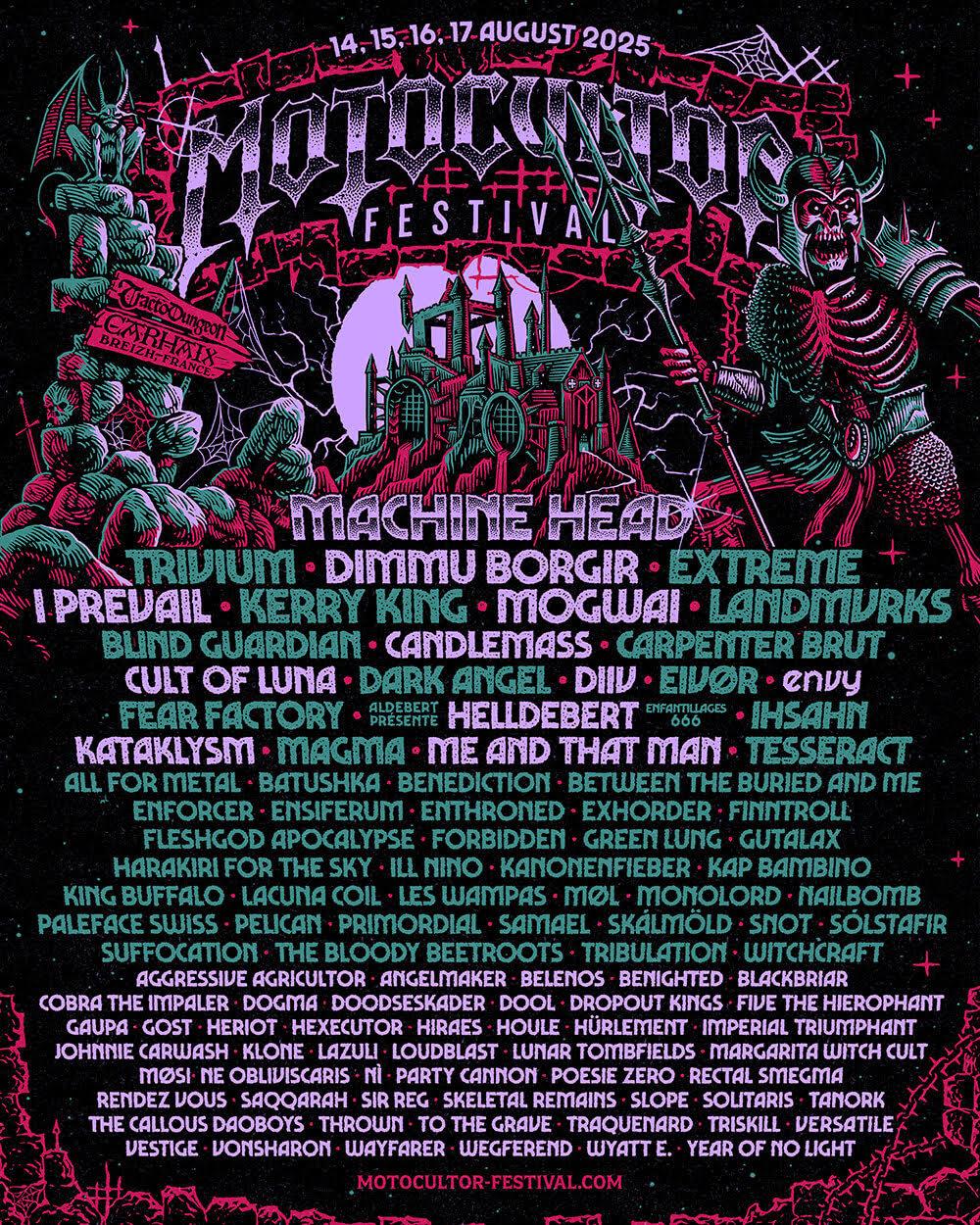 ANGELMAKER - BETWEEN THE BURIED AND ME - BLIND GUARDIAN - CANDLEMASS - COBRA THE IMPALOR - DOODSESKADER - DROPOUT KINGS - ENSIFERUM - EXHORDER - FEAR FACTORY - GAUPA - GOST - GREEN LUNG - HARAKIRI FOR THE SKY - KANONENFIEBER - KING BUFFALO - LANDMVRKS - LUNAR TOMBFIELD - MACHINE HEAD - MARGARITA WITCH CULT - MONOLORD - MØSI - PARTY CANNON - PRIMORDIAL - SOLITARIS - SUFFOCATION - THE BLOODY BEETROOTS - THROWN - VONSHARON - WYATT E.