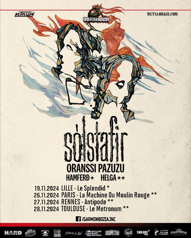 Cette tournée baptisée Nordic Descent Tour 2024 passera par la France sur quatre dates dont Paris le 26 novembre à la Machine du Moulin Rouge. ORANSSI PAZUZU sera également à l’affiche ainsi que HAMFERð du 13 au 24 novembre et HELGA du 26 novembre au 9 décembre.