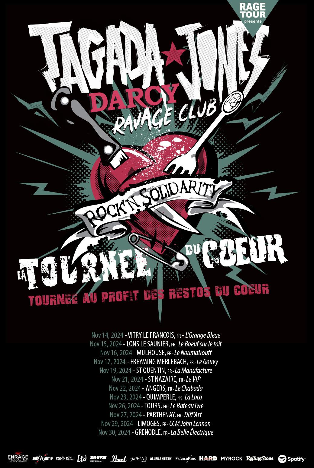 Fidèle à ses convictions, TAGADA JONES lance une tournée du coeur en partenariat et au profit des Restos du Cœur. Une quinzaine de dates avec pour objectif 100.000 repas offerts à l’issue de la tournée.
