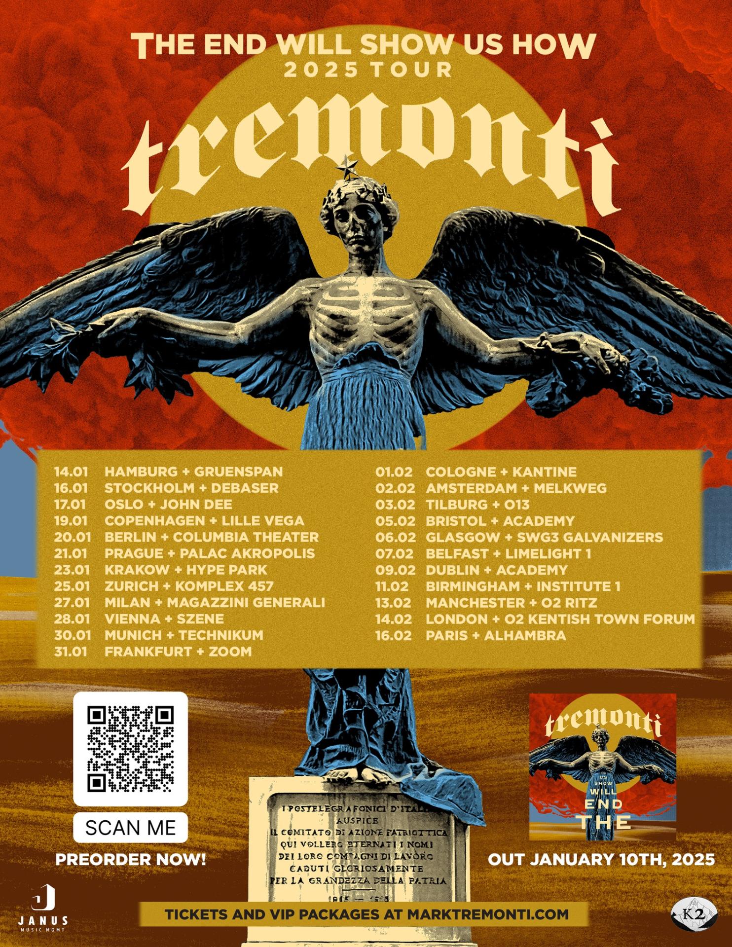 TREMONTI défendra ce nouvel opus lors d’une nouvelle tournée qui porte son nom début 2025. Celle-ci passera par la France pour une unique date à Paris le 16 février à l’Alhambra.