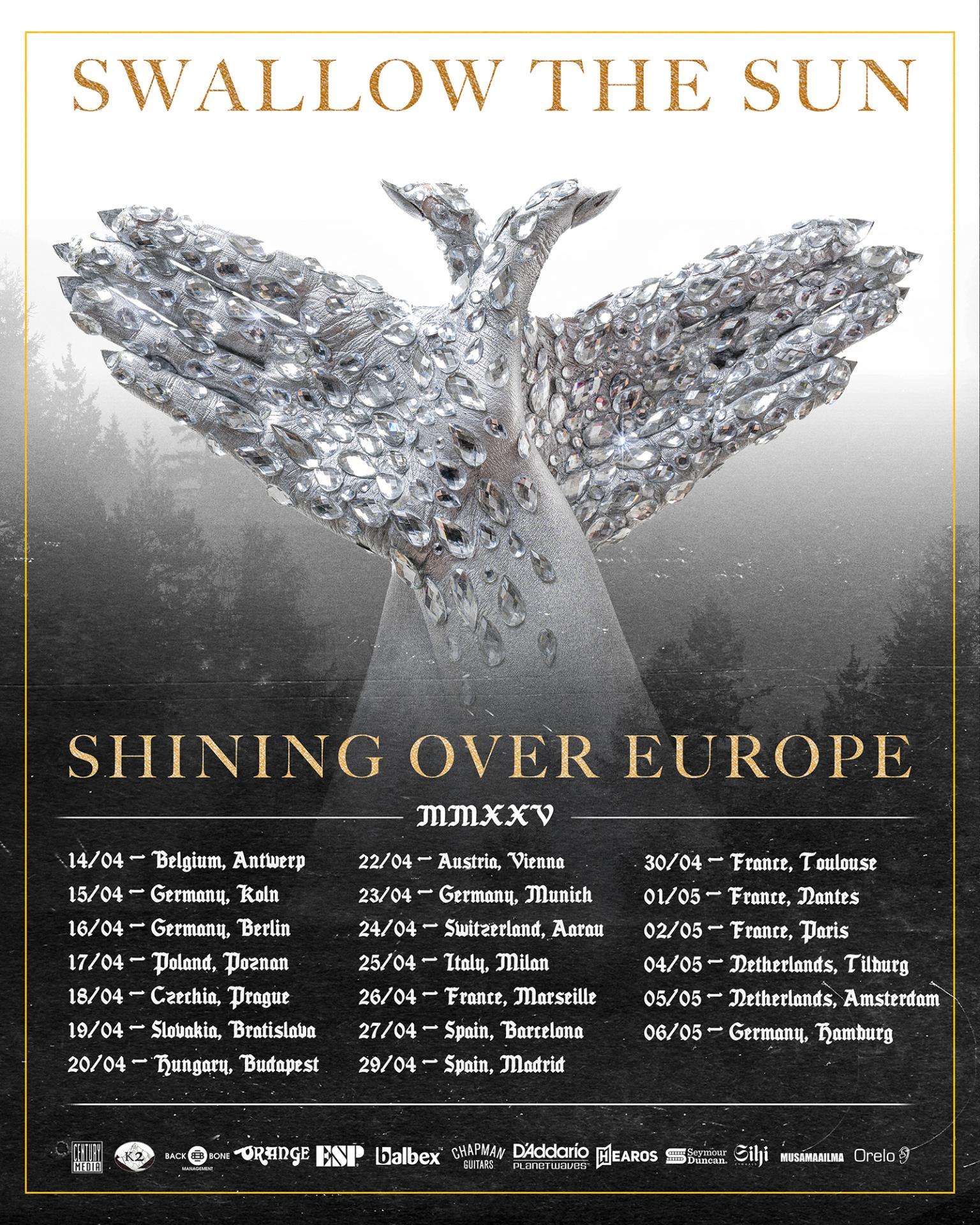 SWALLOW THE SUN présentera son nouvel album Shining lors d’une nouvelle tournée européenne baptisée Shining Over Europe 2025 prévue pour le printemps 2025.