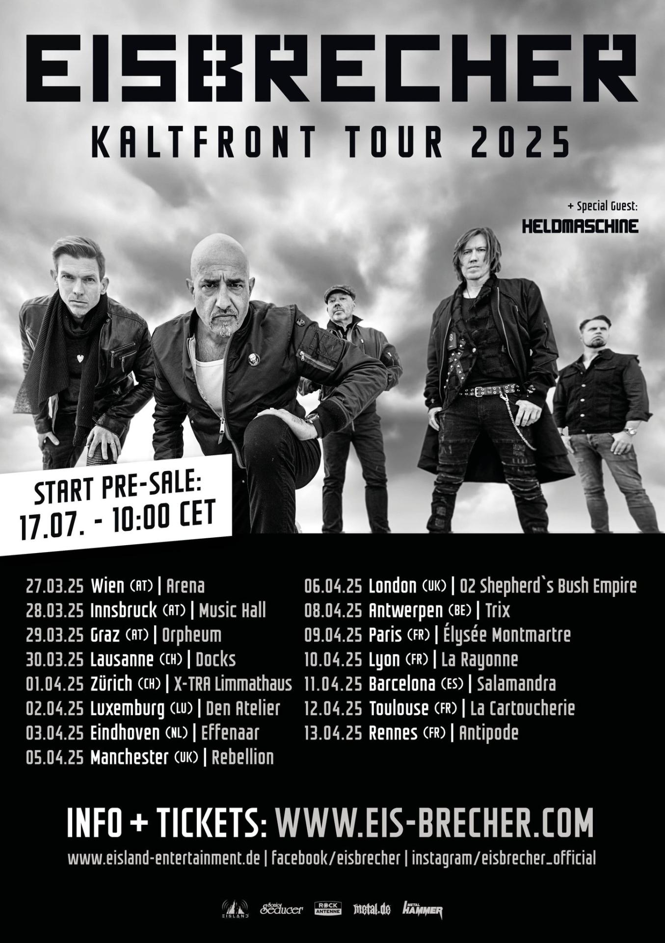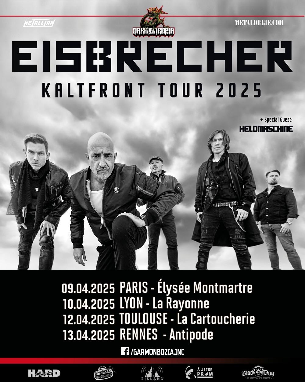 Cette tournée comprendra quatre dates françaises dont Paris le 9 avril à l’Élysée Montmartre. Le groupe sera accompagné de HELDMASCHINE qui assurera les premières parties. À noter qu’EISBRECHER sera à l’affiche du Mennecy Metal Fest à Mennecy (91) le 7 septembre prochain.