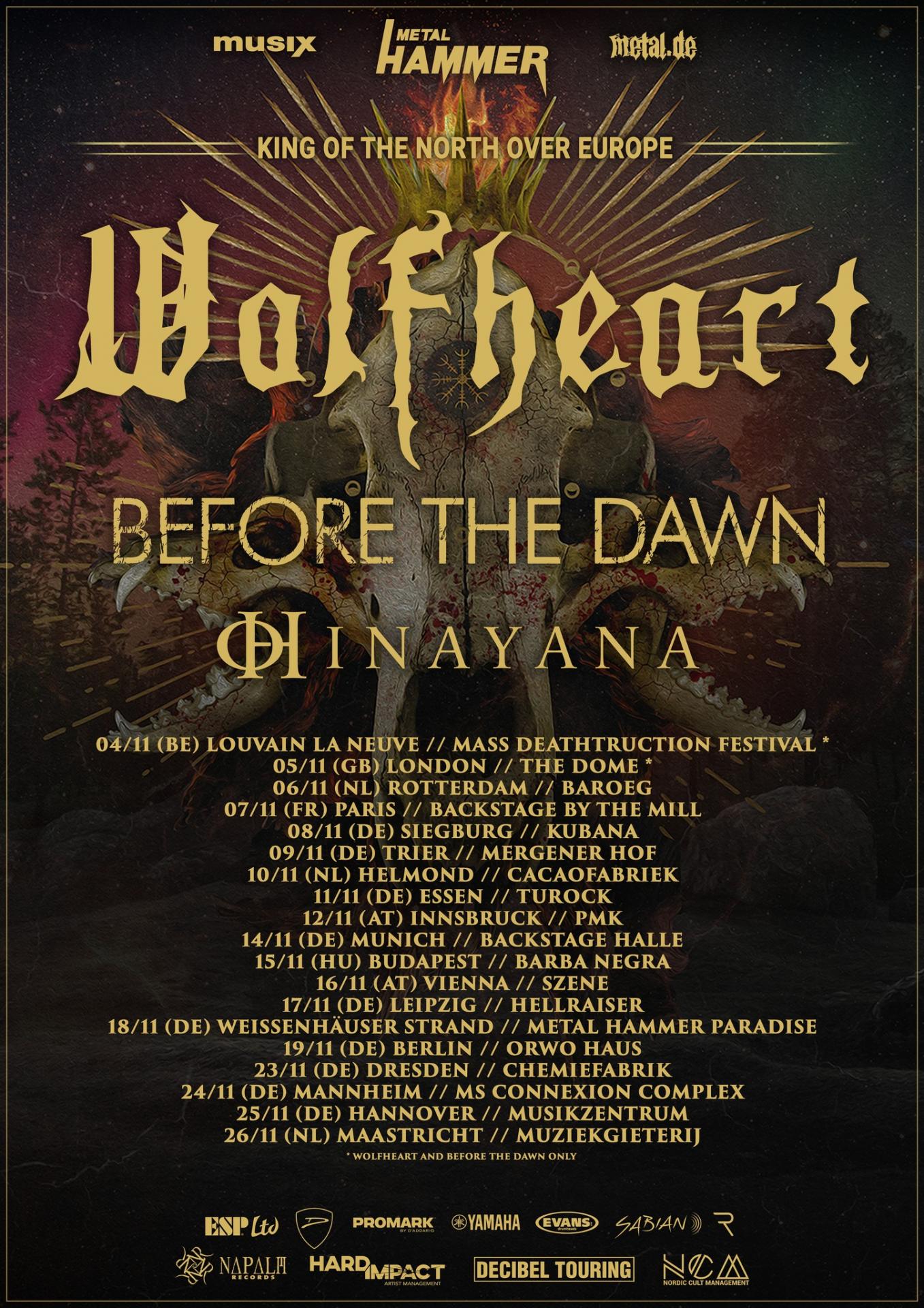 WOLFHEART : Un nouvelle tournée européenne avec BEFORE THE DAWN et HINAYANA